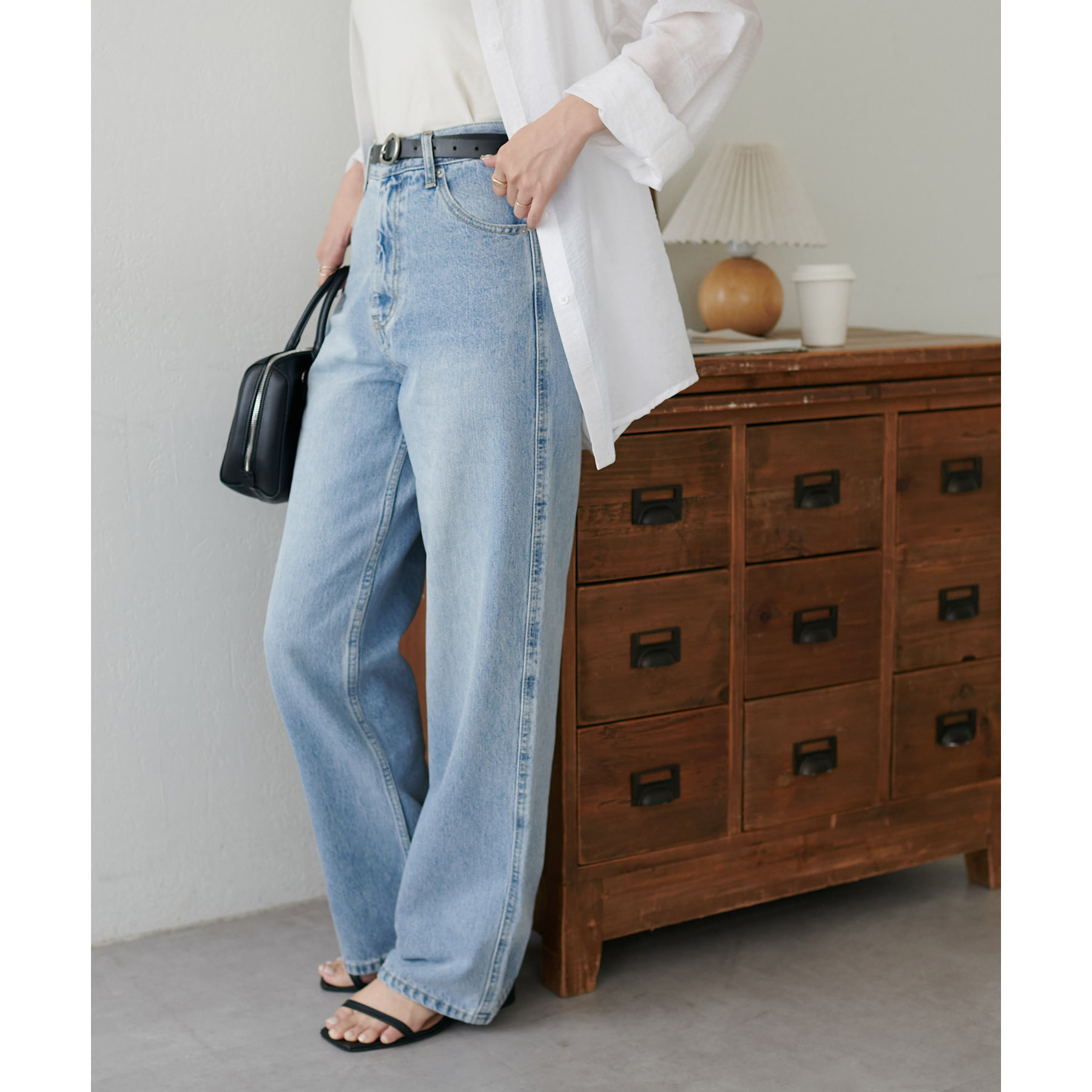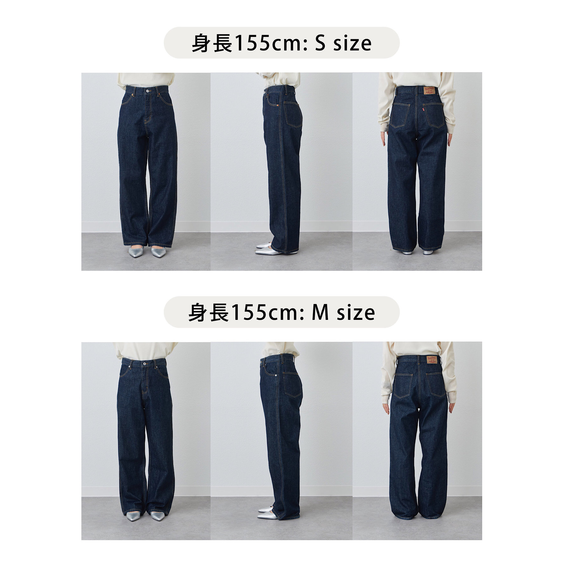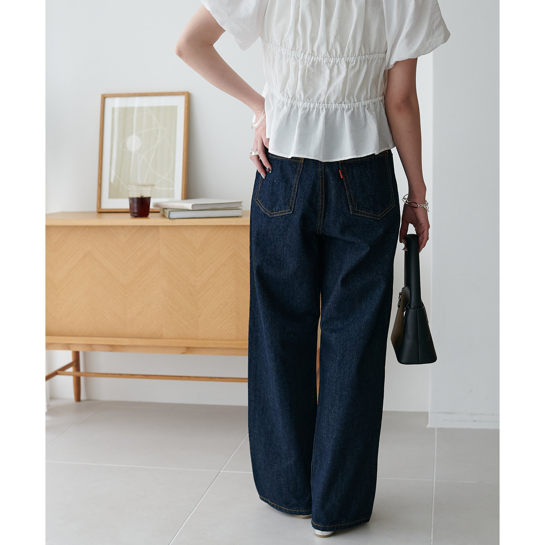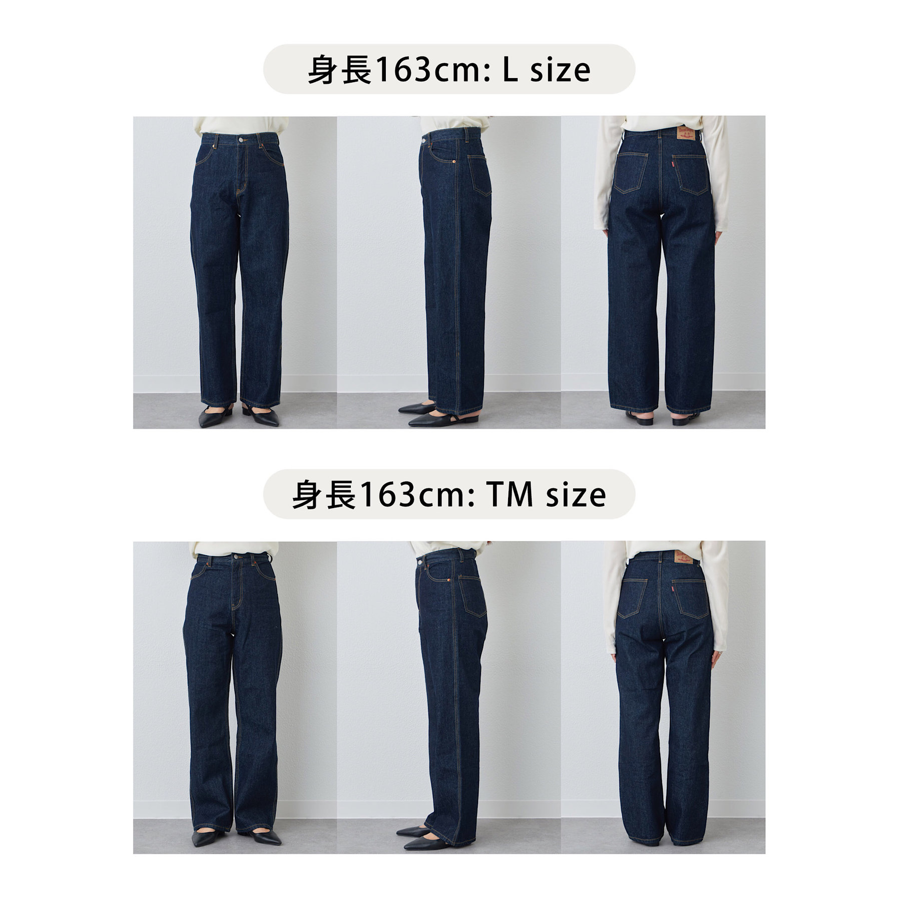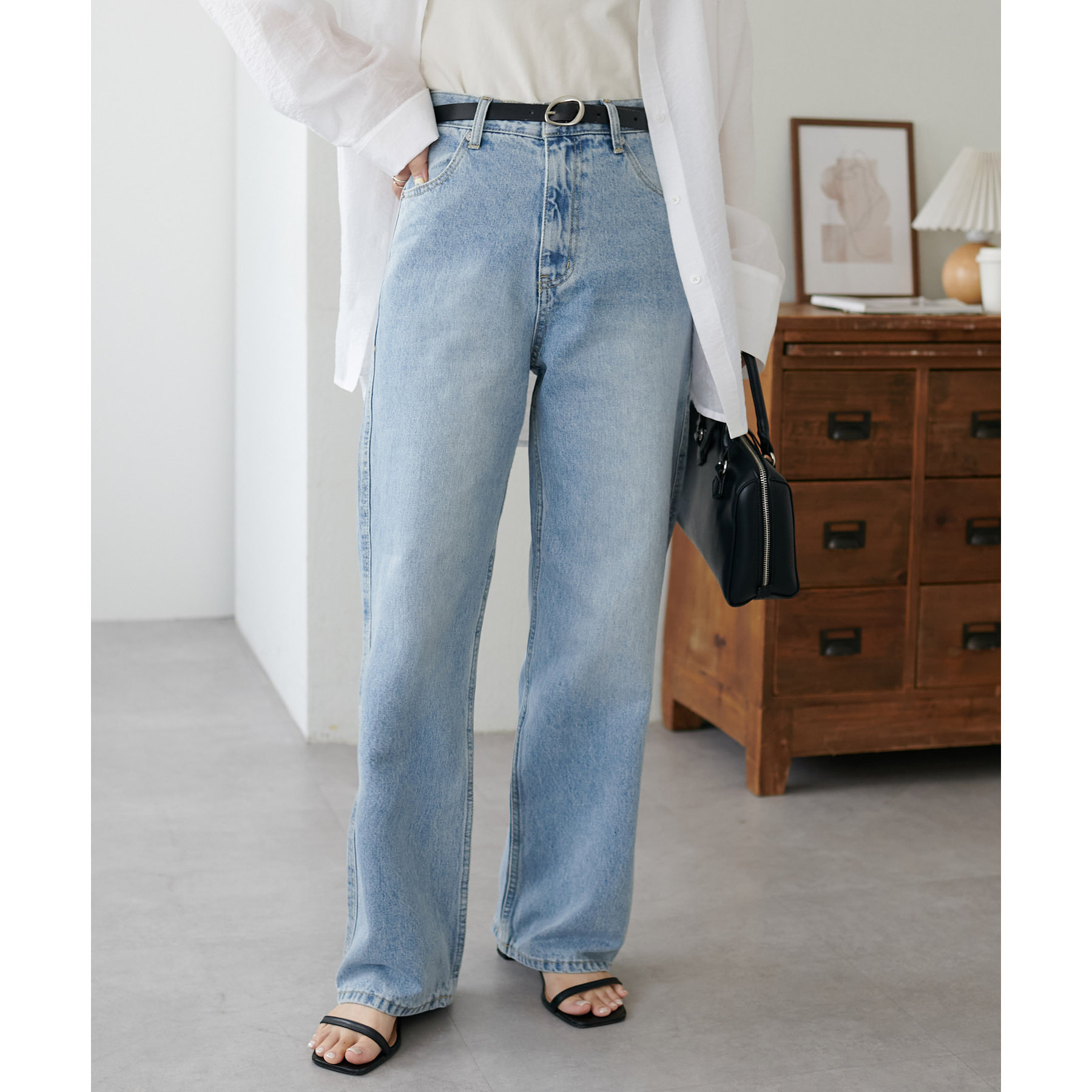 Tシャツやスウェットのカジュアルなトップスはもちろん、ブラウスやシアーシャツなどきれいめなアイテムとの相性も抜群で、合わせるアイテムを選ばない定番のデニムパンツです。