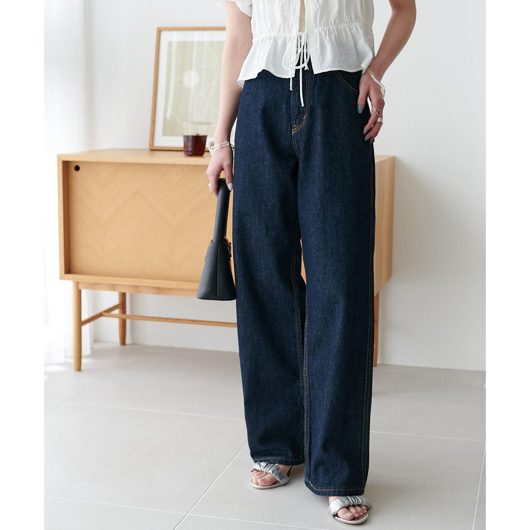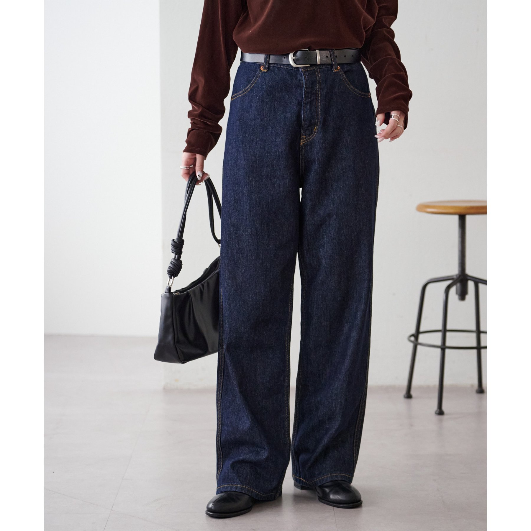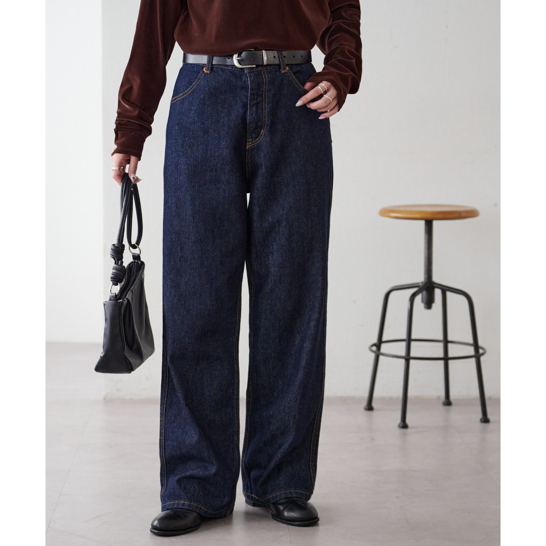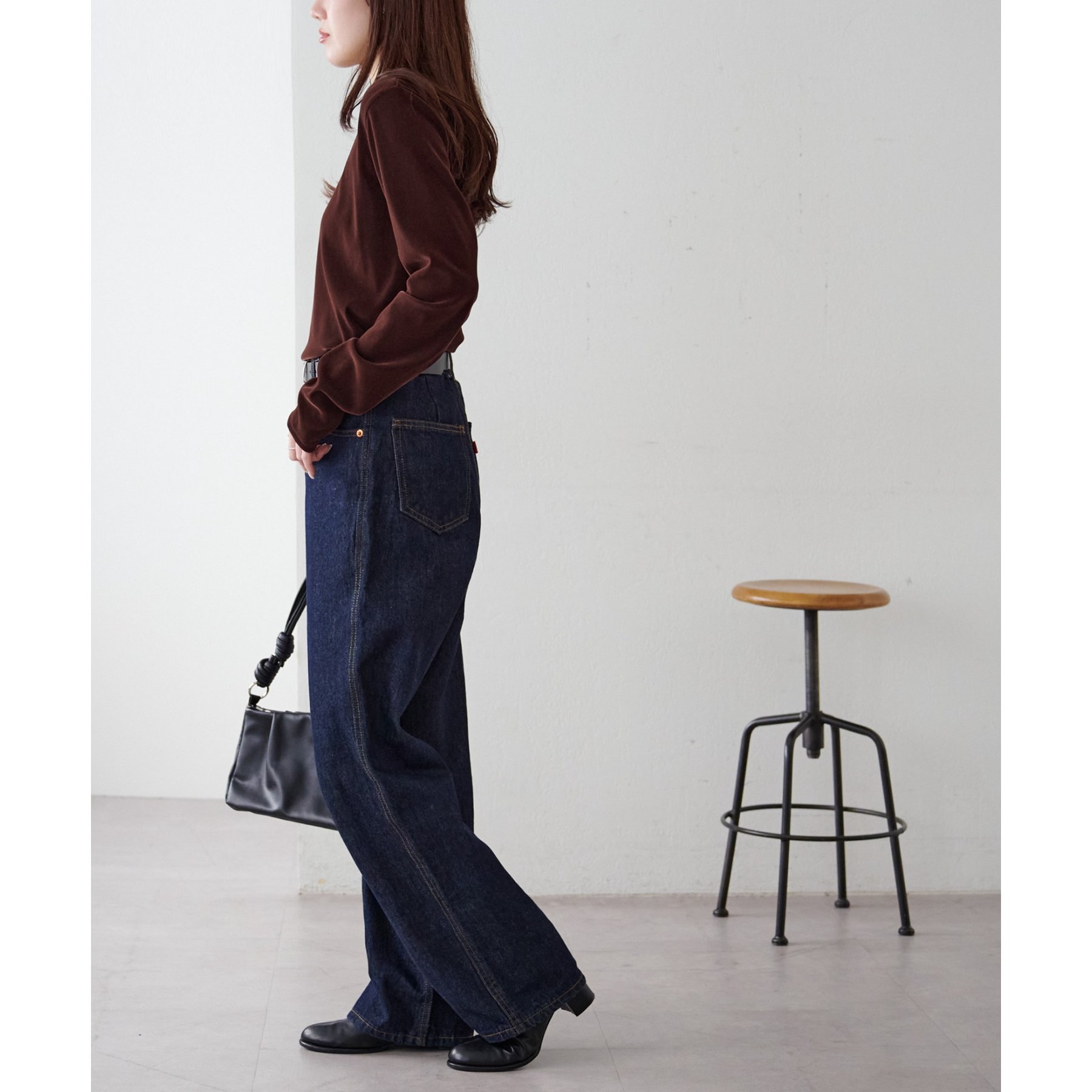 Tシャツやスウェットのカジュアルなトップスはもちろん、ブラウスやシアーシャツなどきれいめなアイテムとの相性も抜群で、合わせるアイテムを選ばない定番のデニムパンツです。