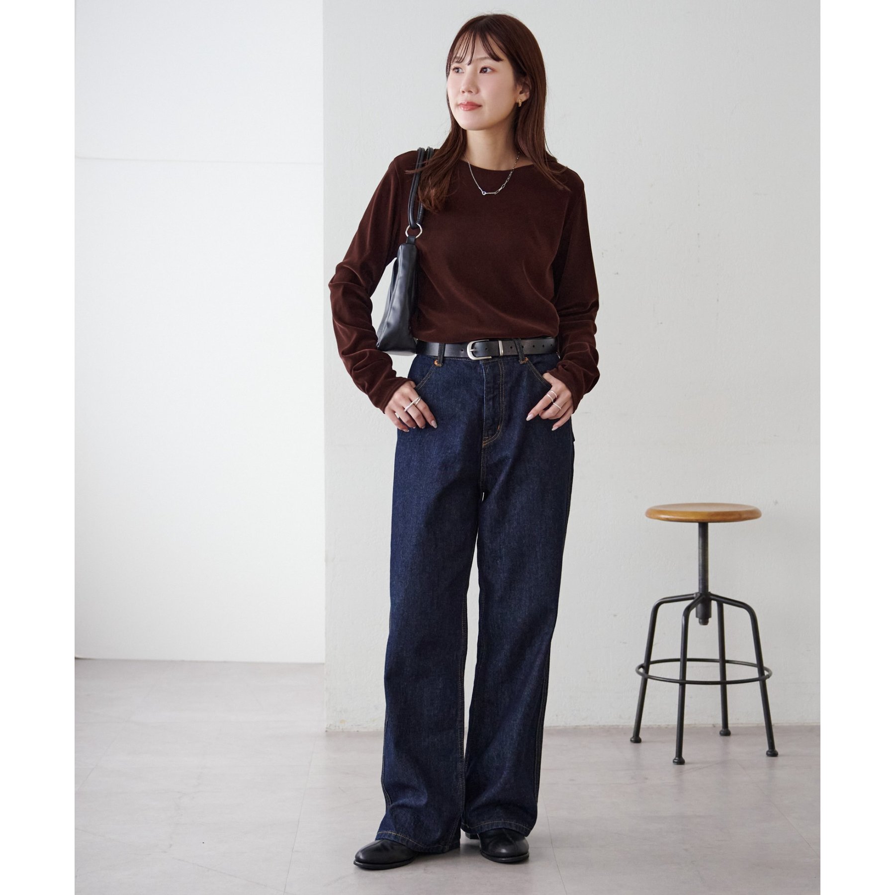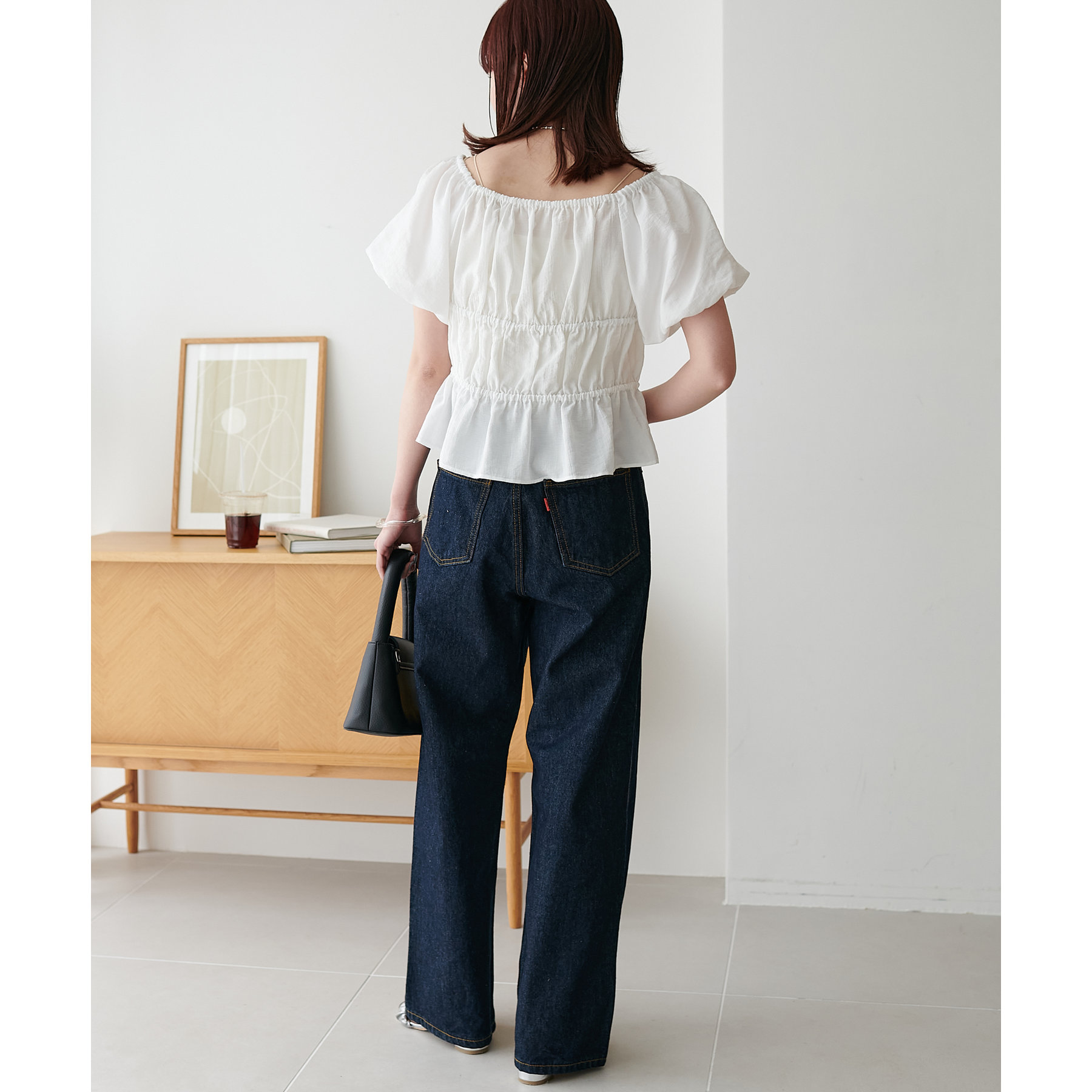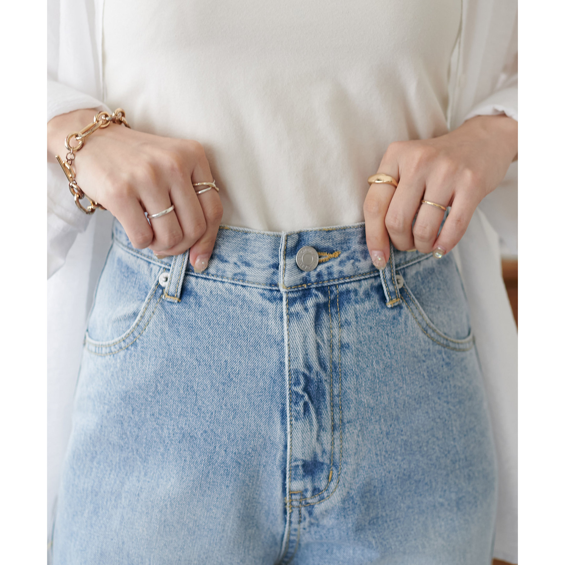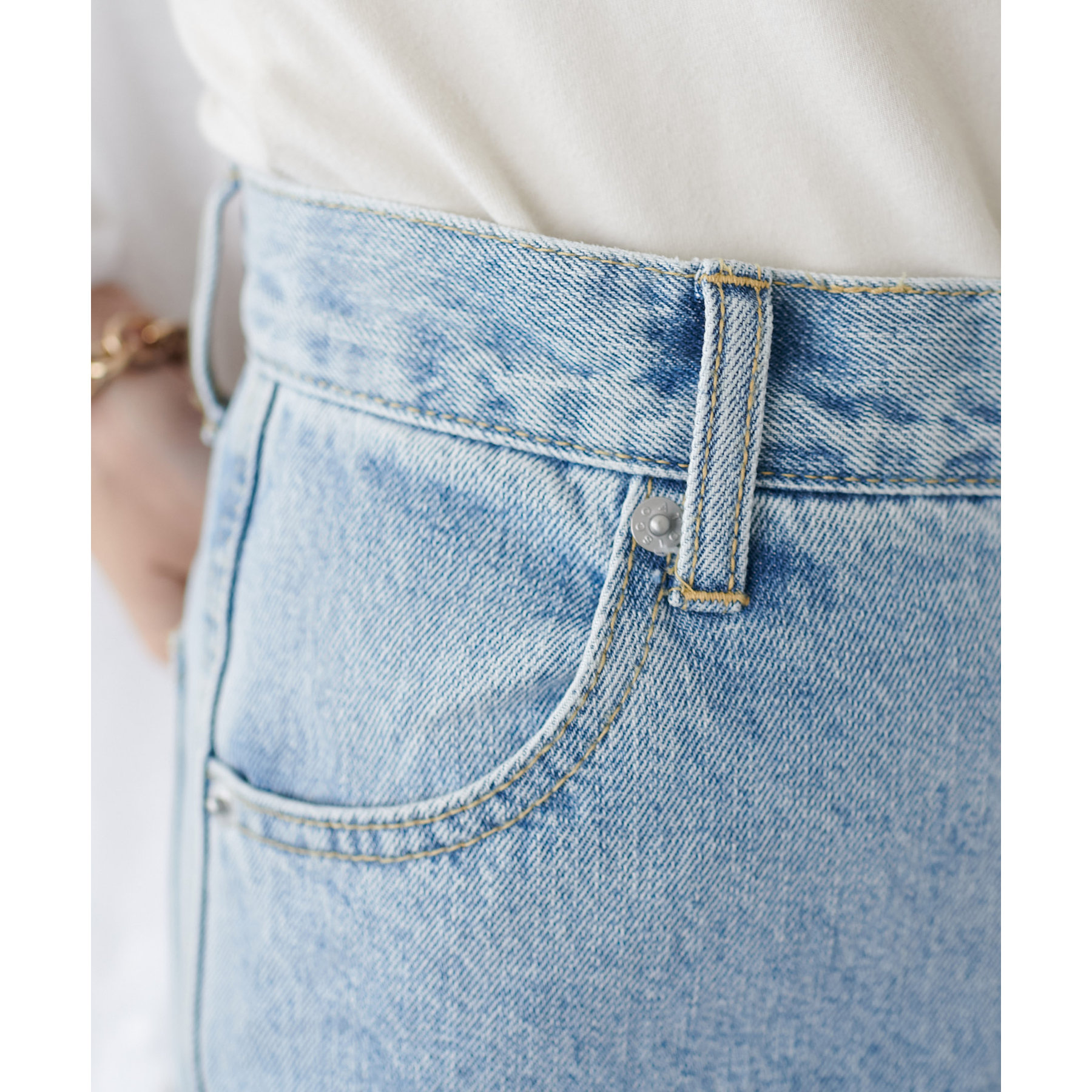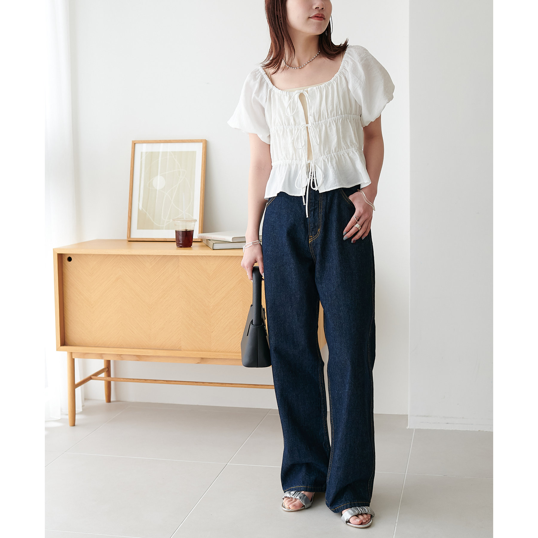 Tシャツやスウェットのカジュアルなトップスはもちろん、ブラウスやシアーシャツなどきれいめなアイテムとの相性も抜群で、合わせるアイテムを選ばない定番のデニムパンツです。