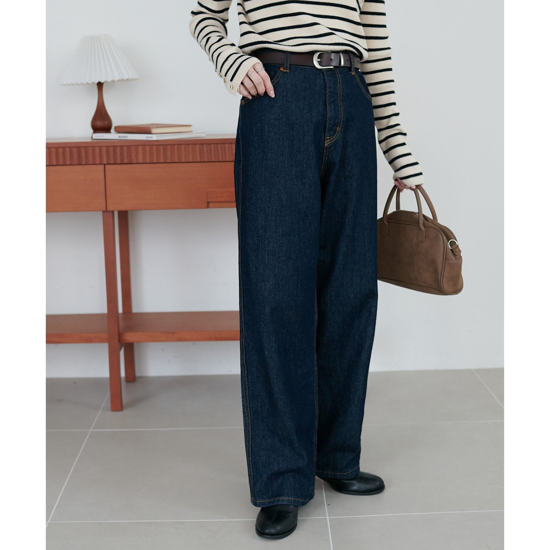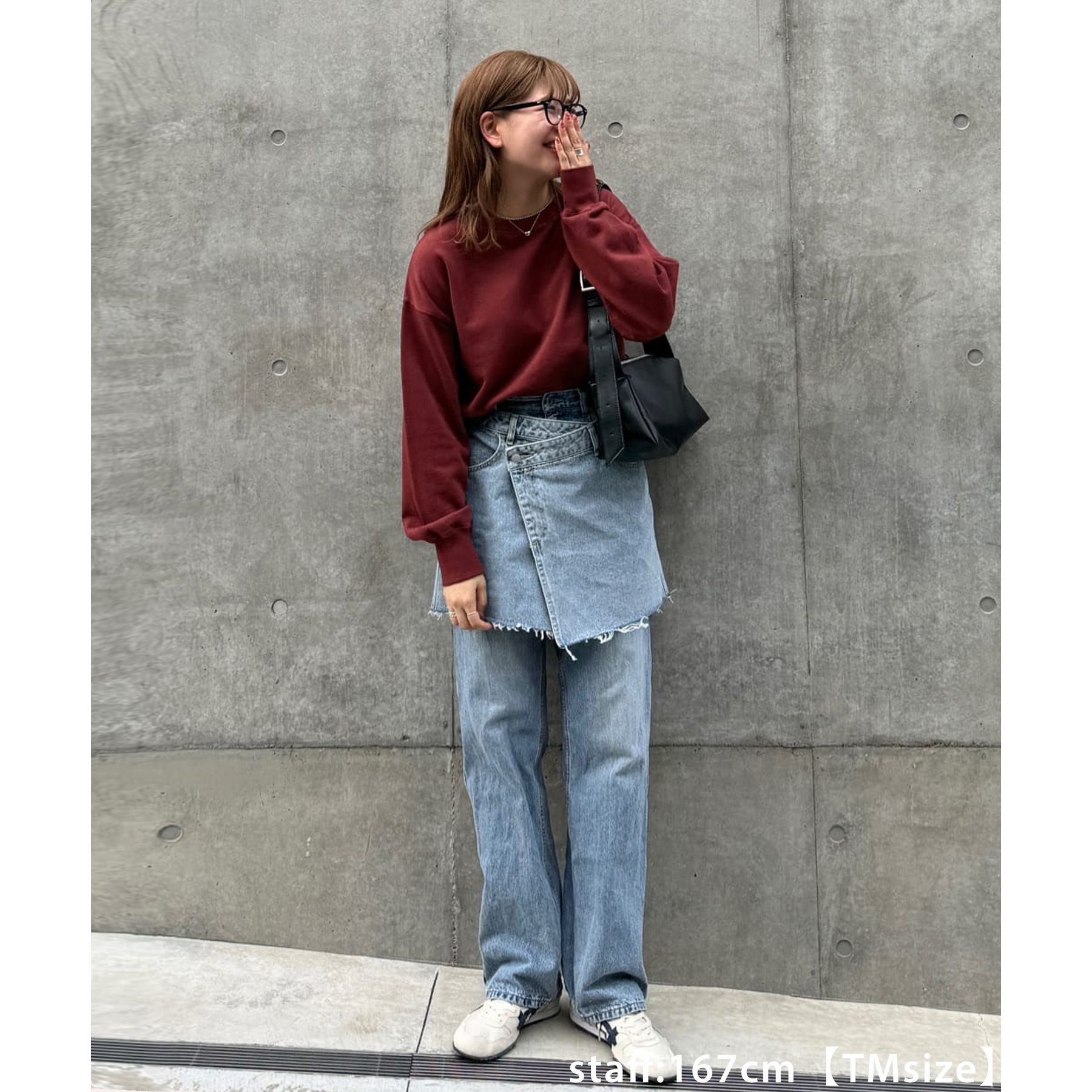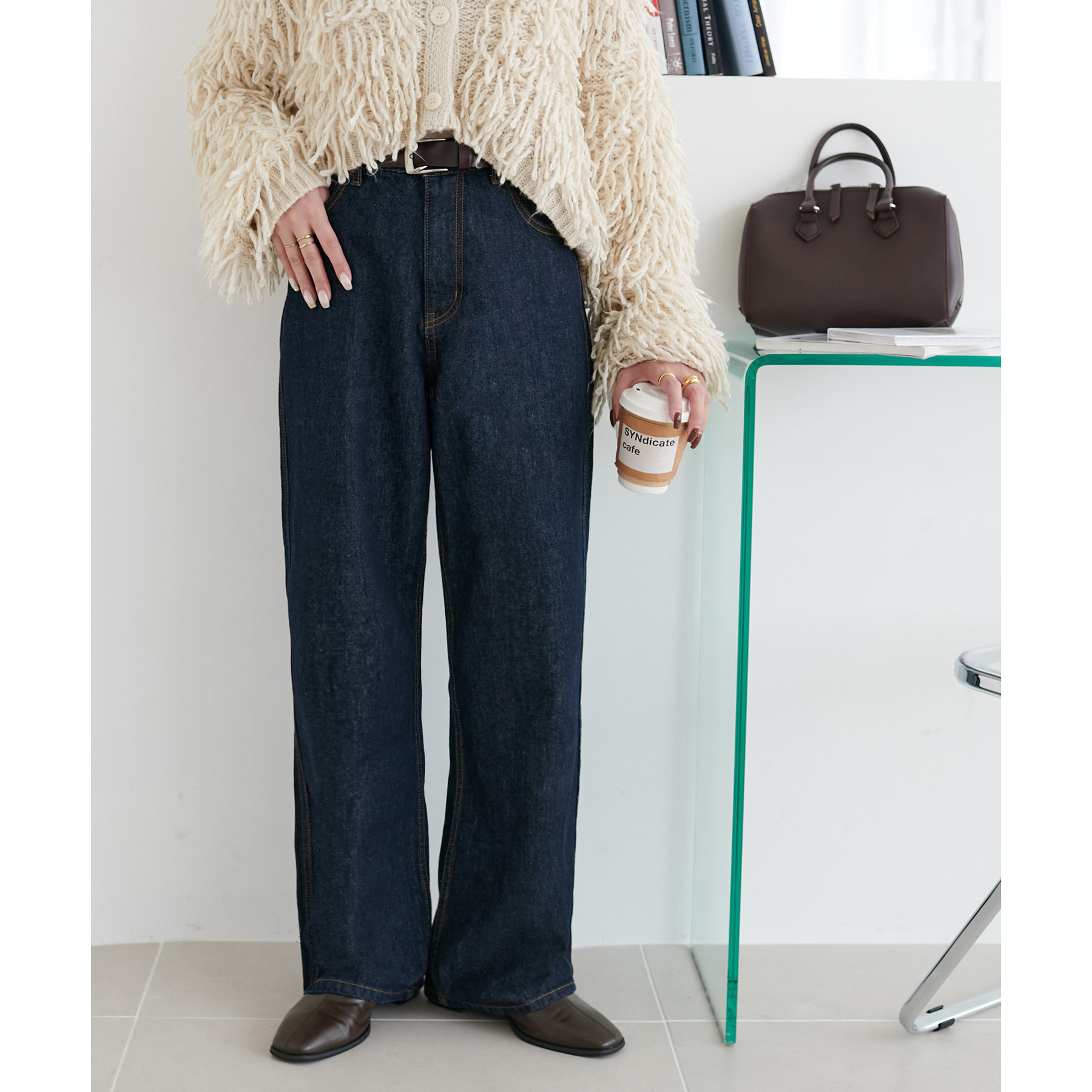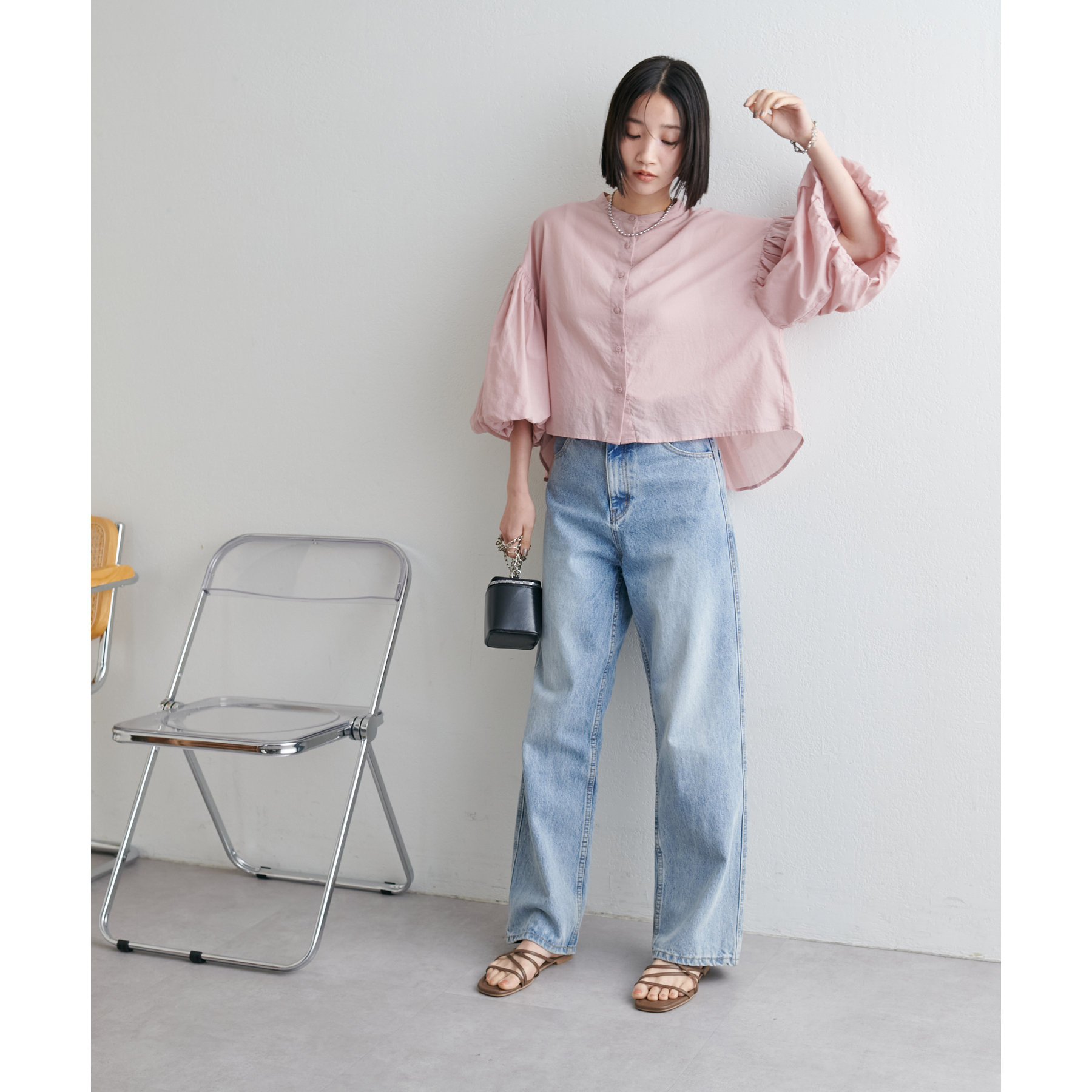 Tシャツやスウェットのカジュアルなトップスはもちろん、ブラウスやシアーシャツなどきれいめなアイテムとの相性も抜群で、合わせるアイテムを選ばない定番のデニムパンツです。