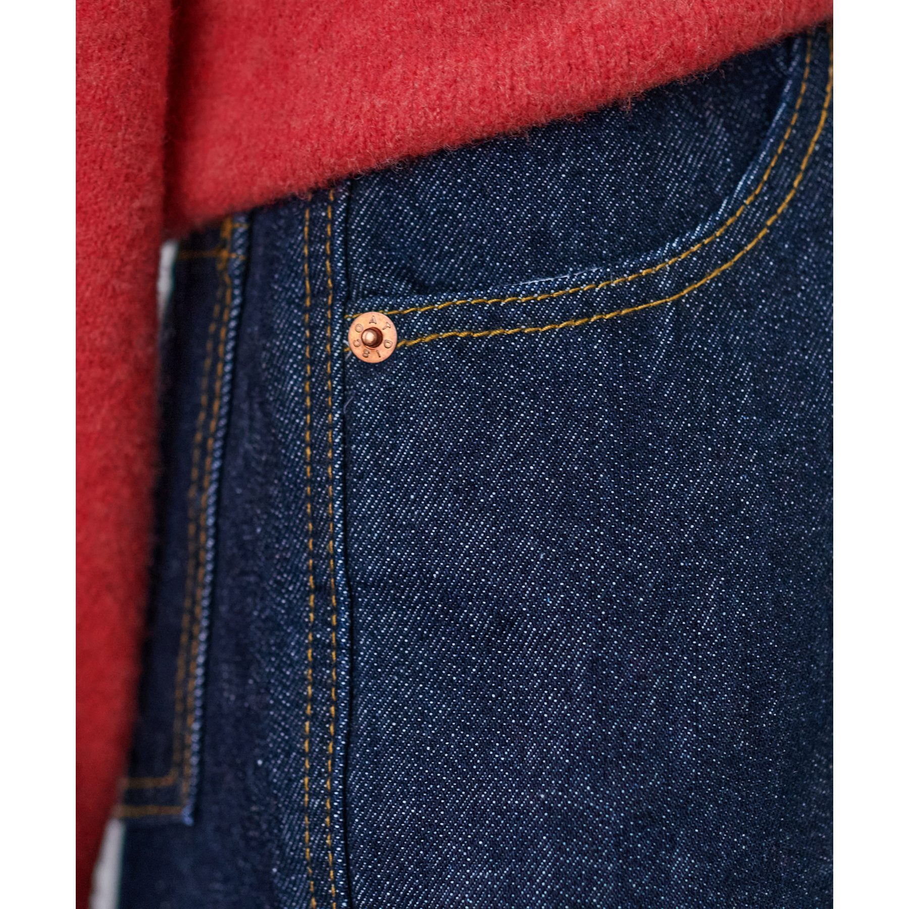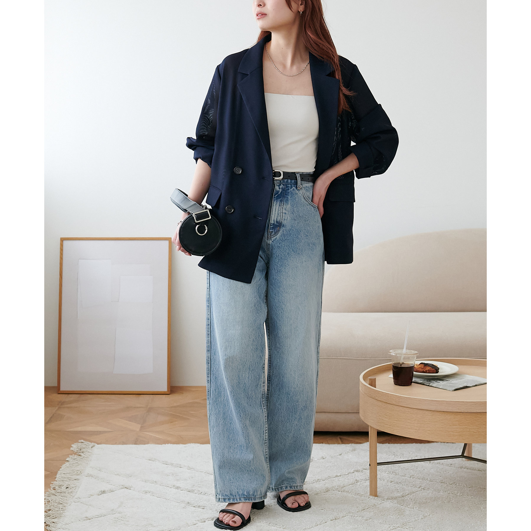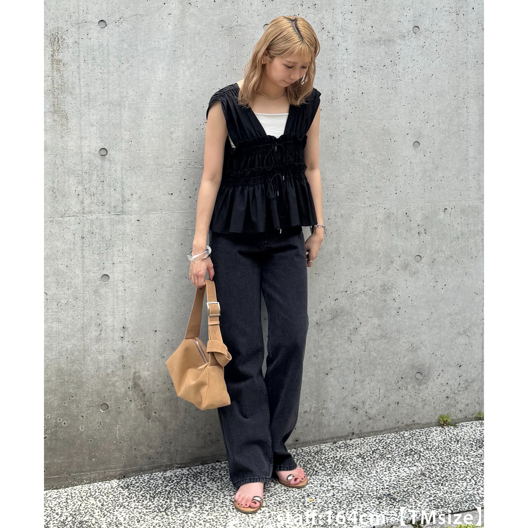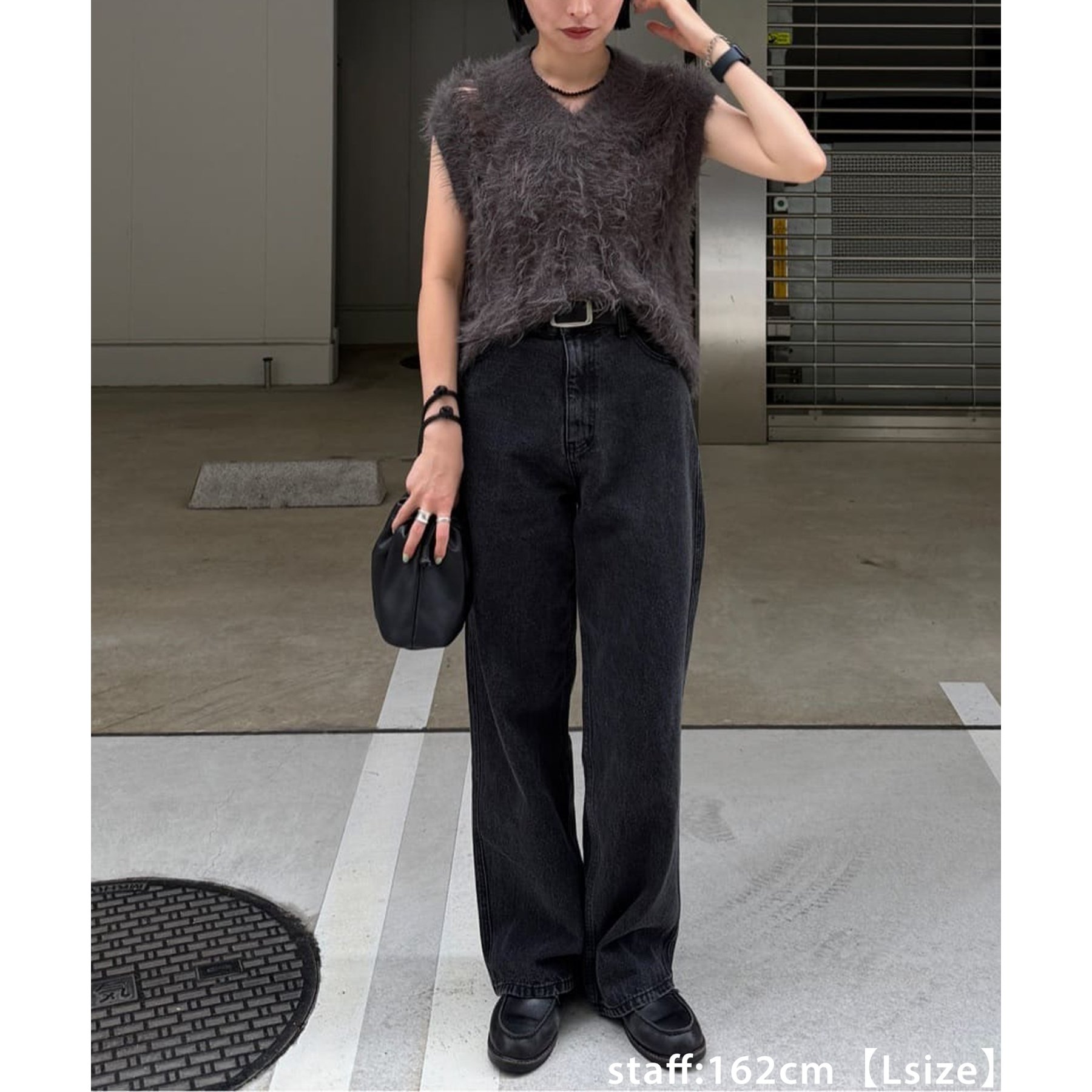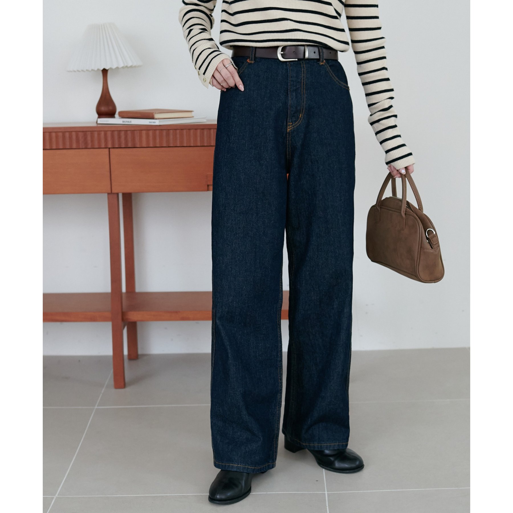 Tシャツやスウェットのカジュアルなトップスはもちろん、ブラウスやシアーシャツなどきれいめなアイテムとの相性も抜群で、合わせるアイテムを選ばない定番のデニムパンツです。