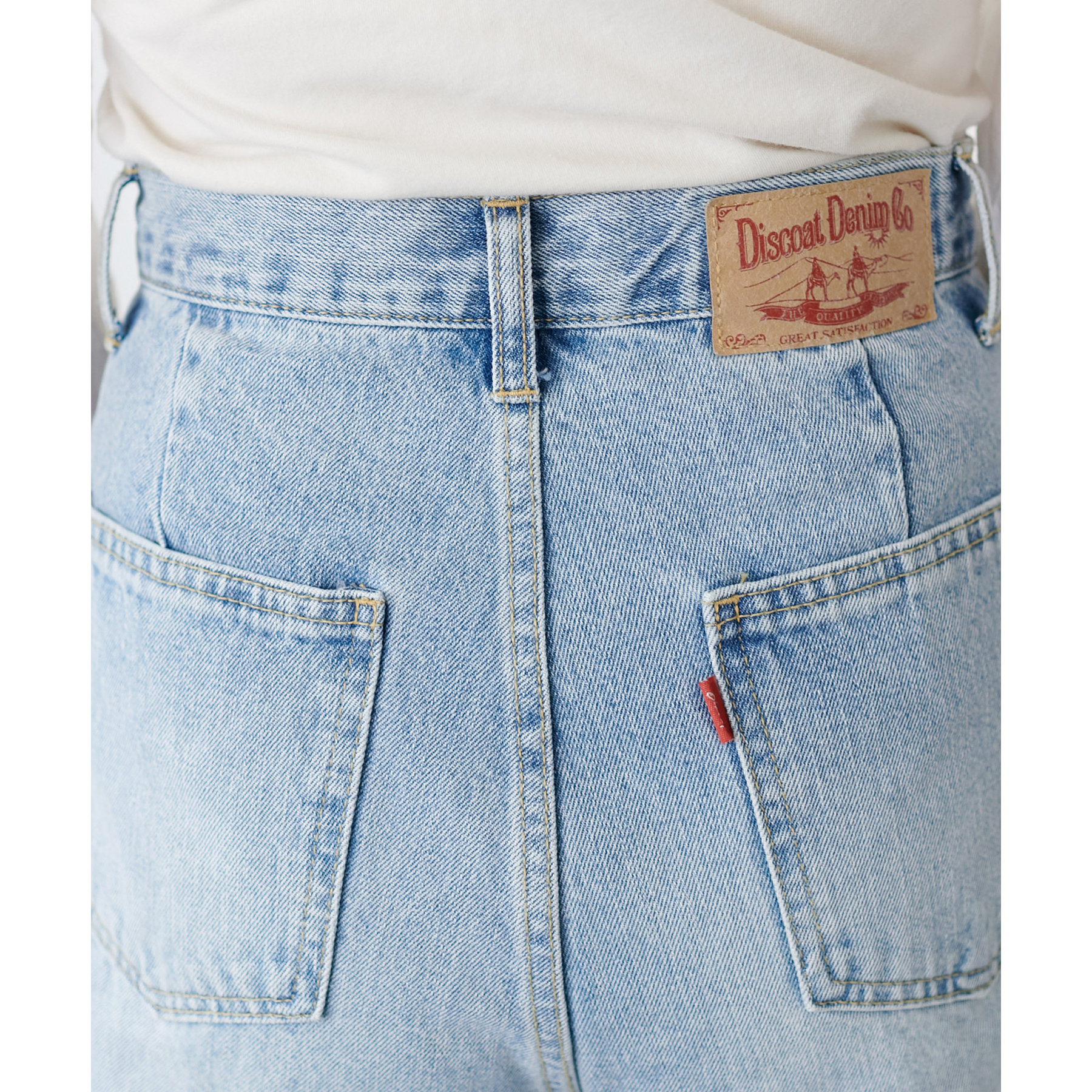 ・バックウエストにはDISCOATオリジナルの紙パッチが付けられ、洗うたびにシワやカスレが増し、ヴィンテージライクな雰囲気で着用していただけます。