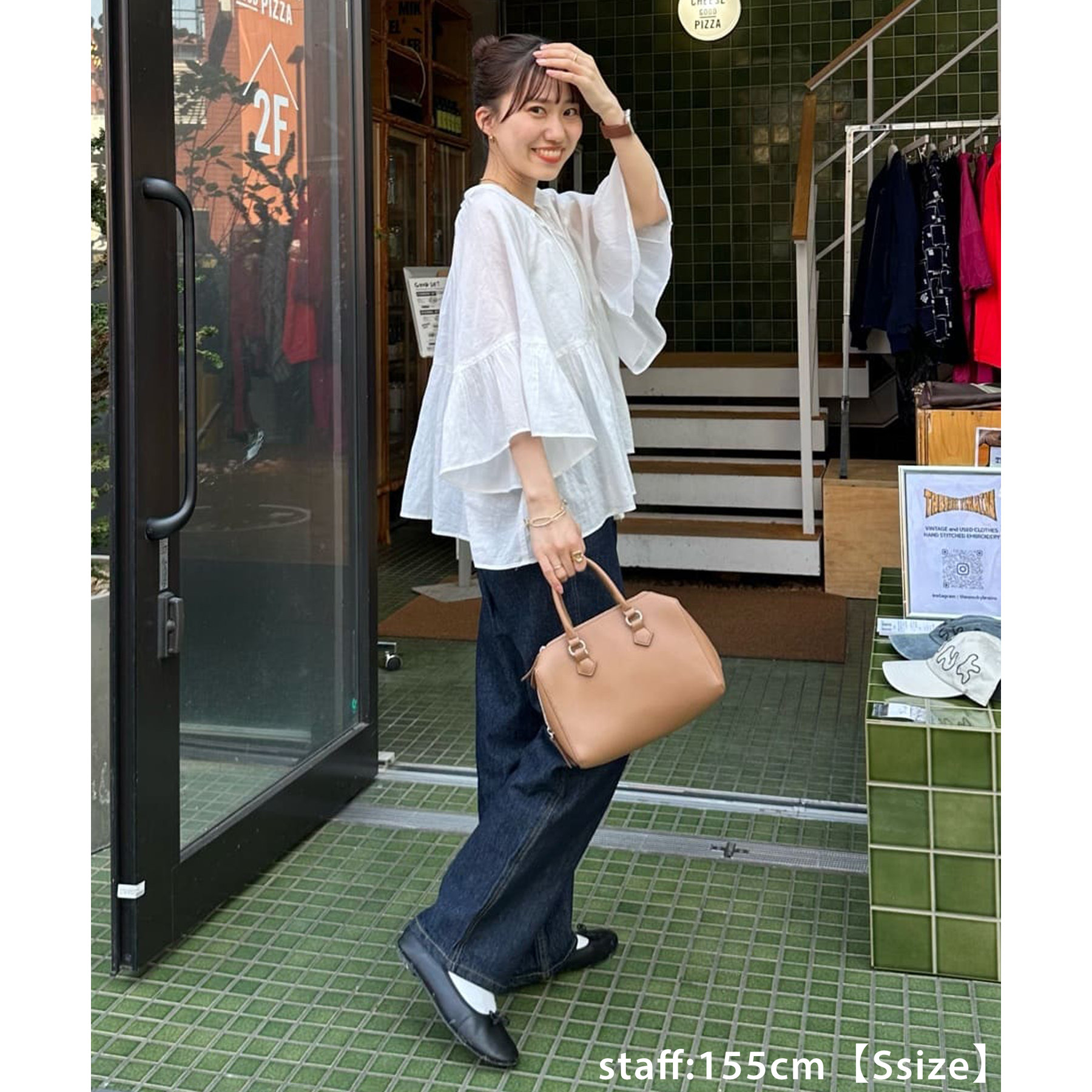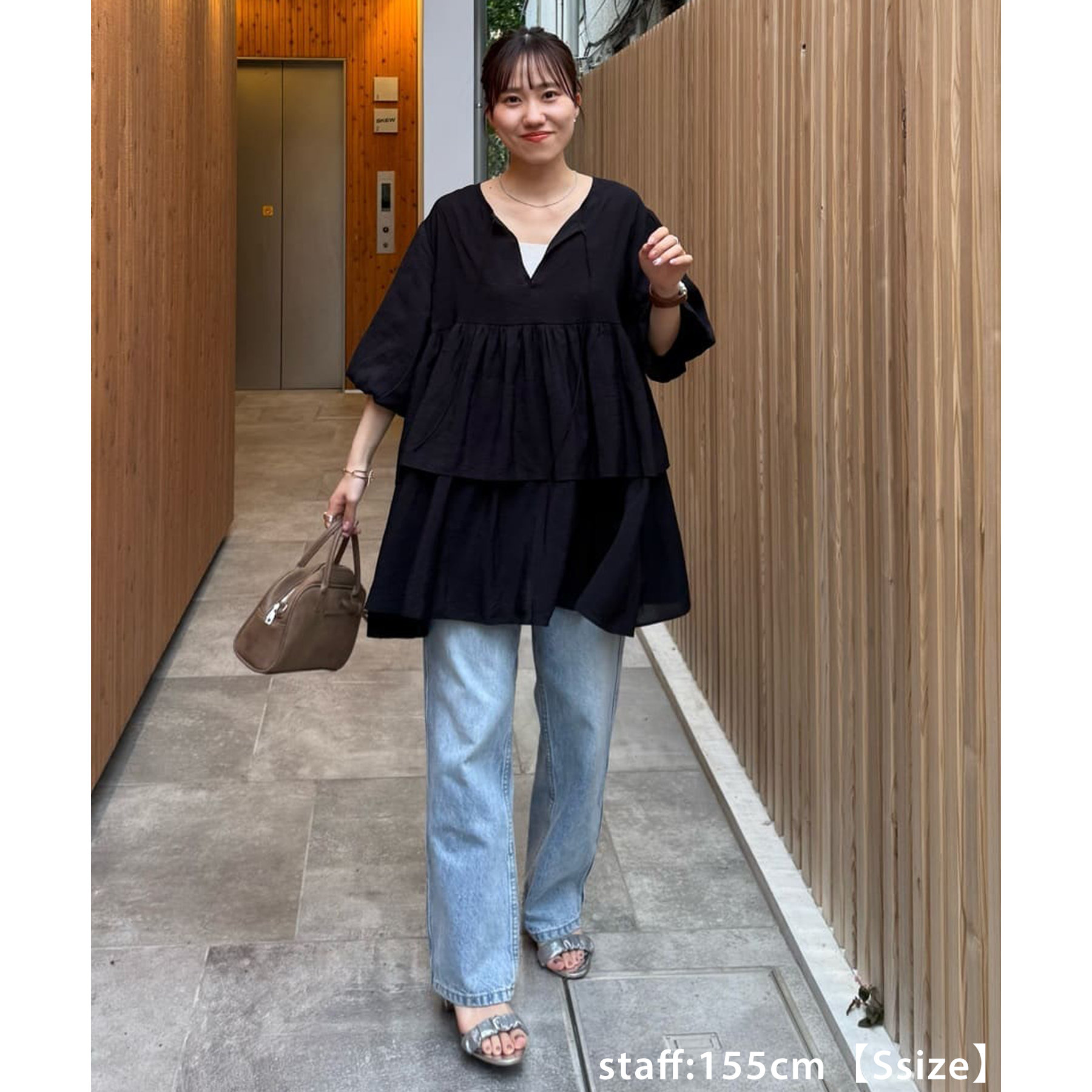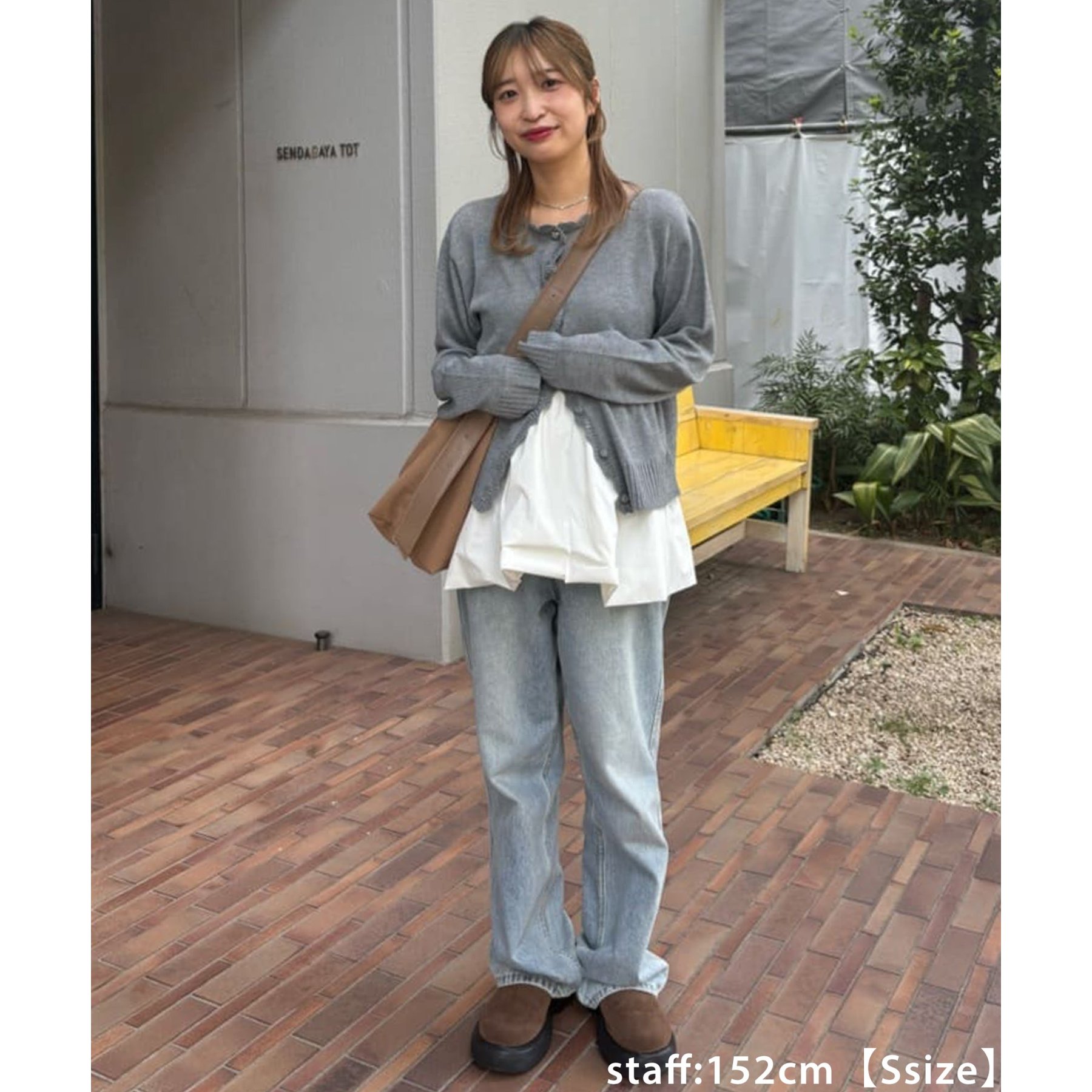 155cmスタッフ(Mサイズ着用):すっきりした丈感が好みの方にはSサイズ、ゆったりとした丈感が好みの方にはMサイズをおすすめします。