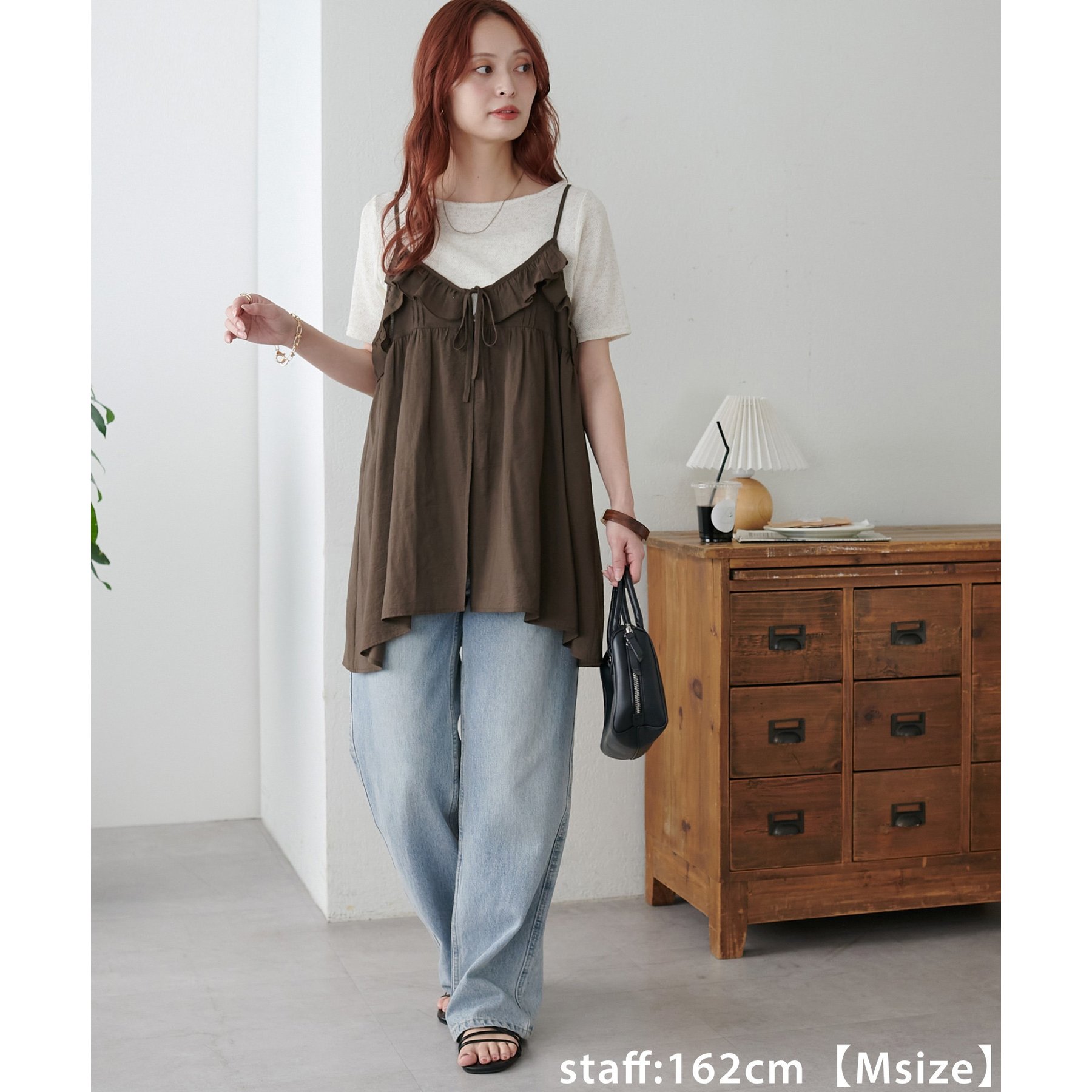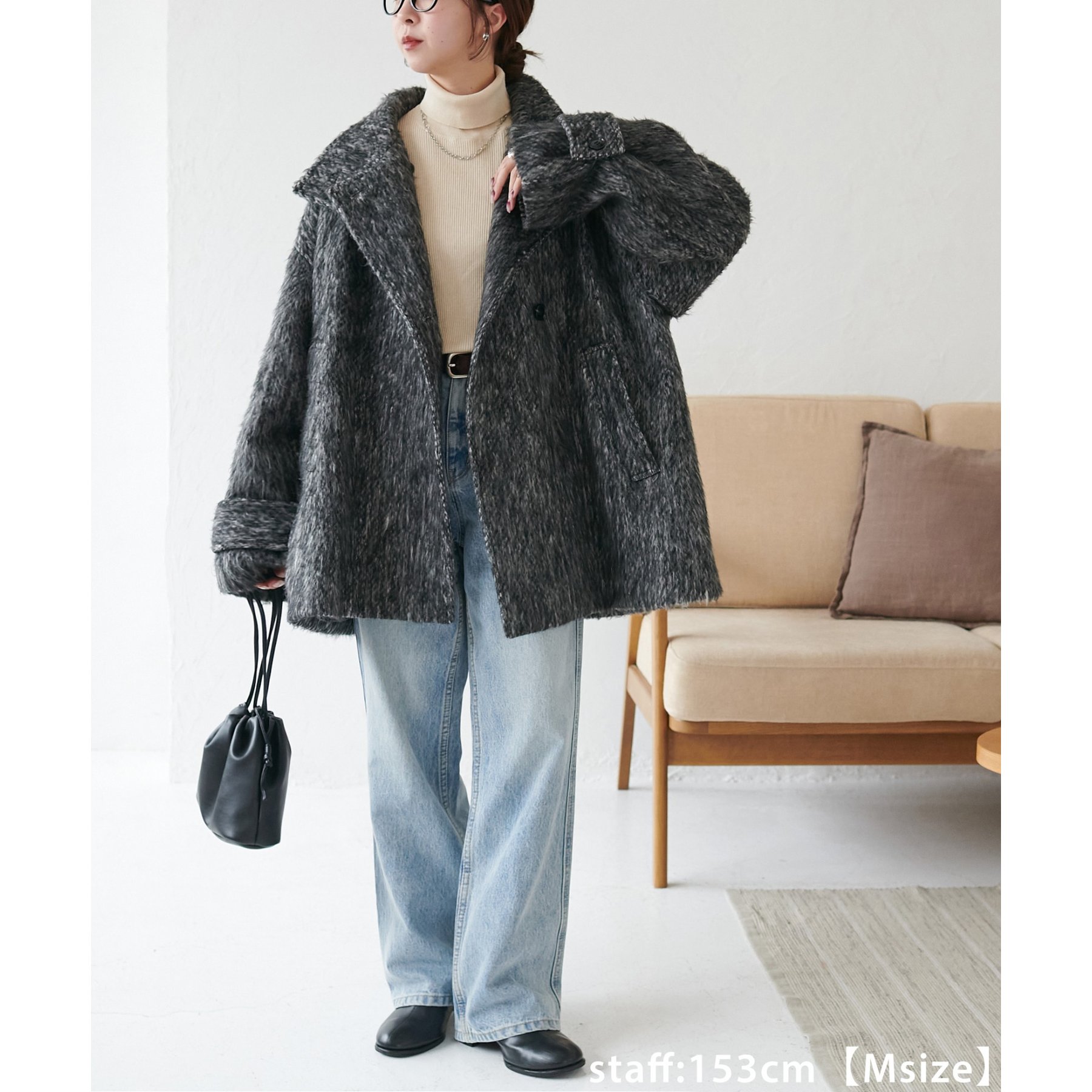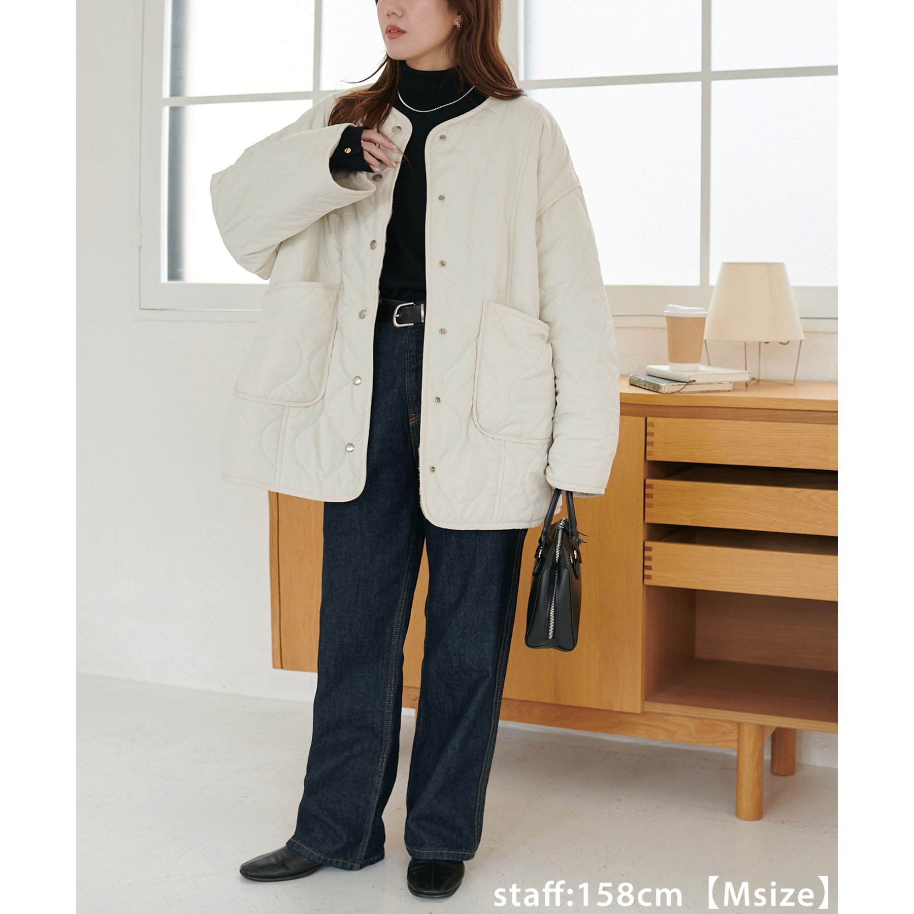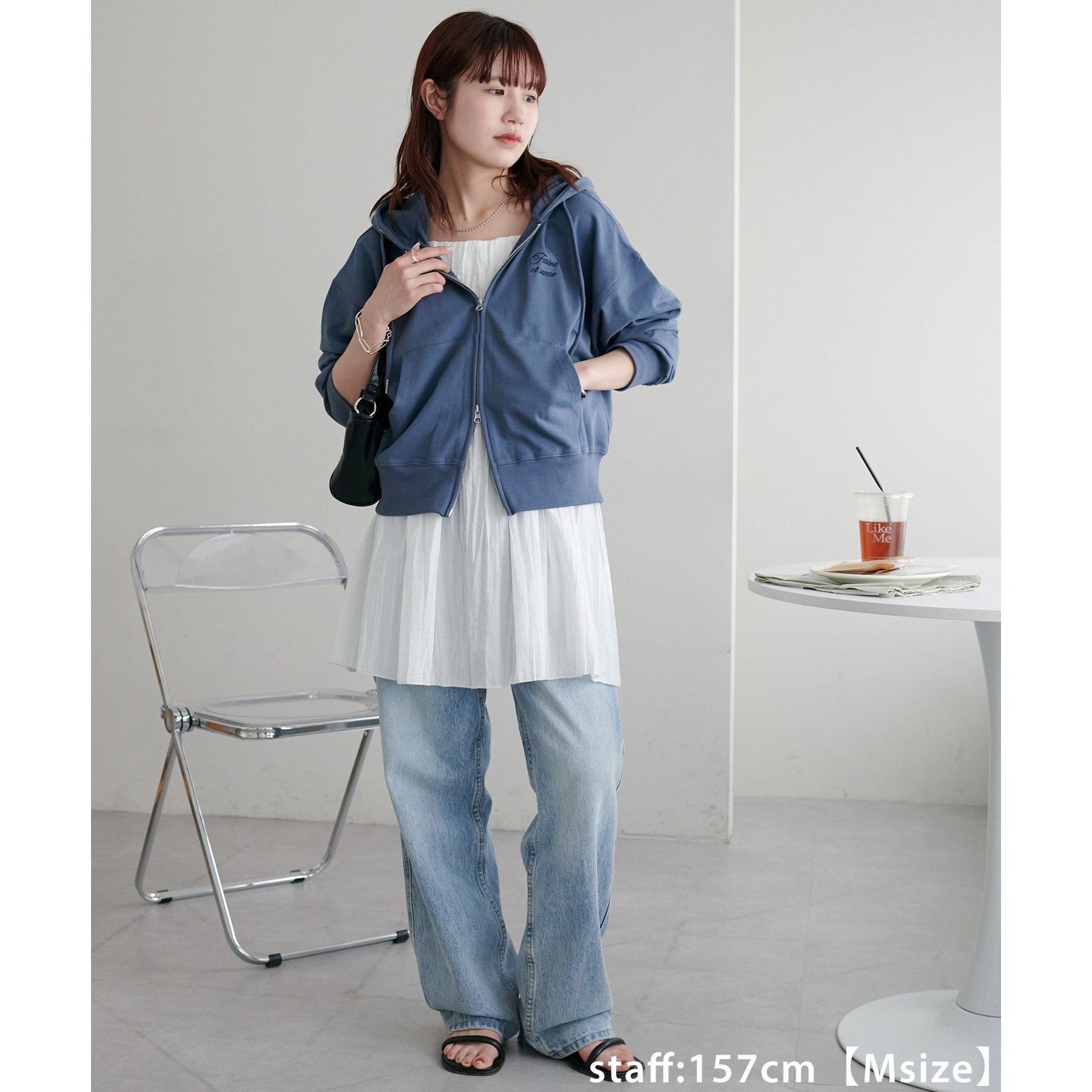 155cmスタッフ(Mサイズ着用):すっきりした丈感が好みの方にはSサイズ、ゆったりとした丈感が好みの方にはMサイズをおすすめします。