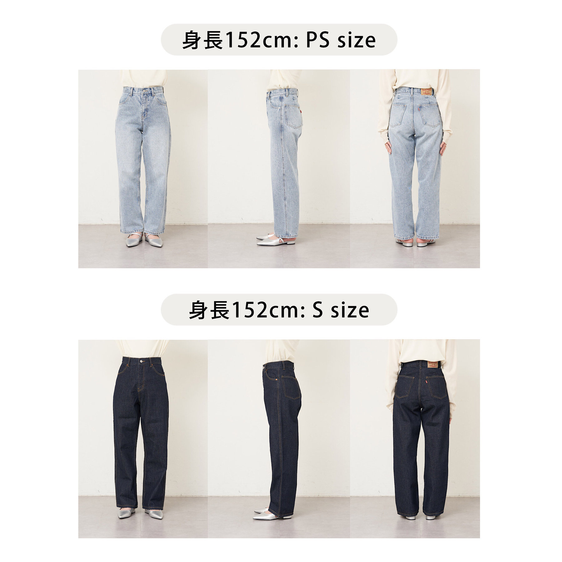 149cmスタッフ(PSサイズ着用): サイズ展開が豊富で嬉しいです。PSサイズは低身長でも、ぺたんこの靴で裾を引きずらずに履けました!