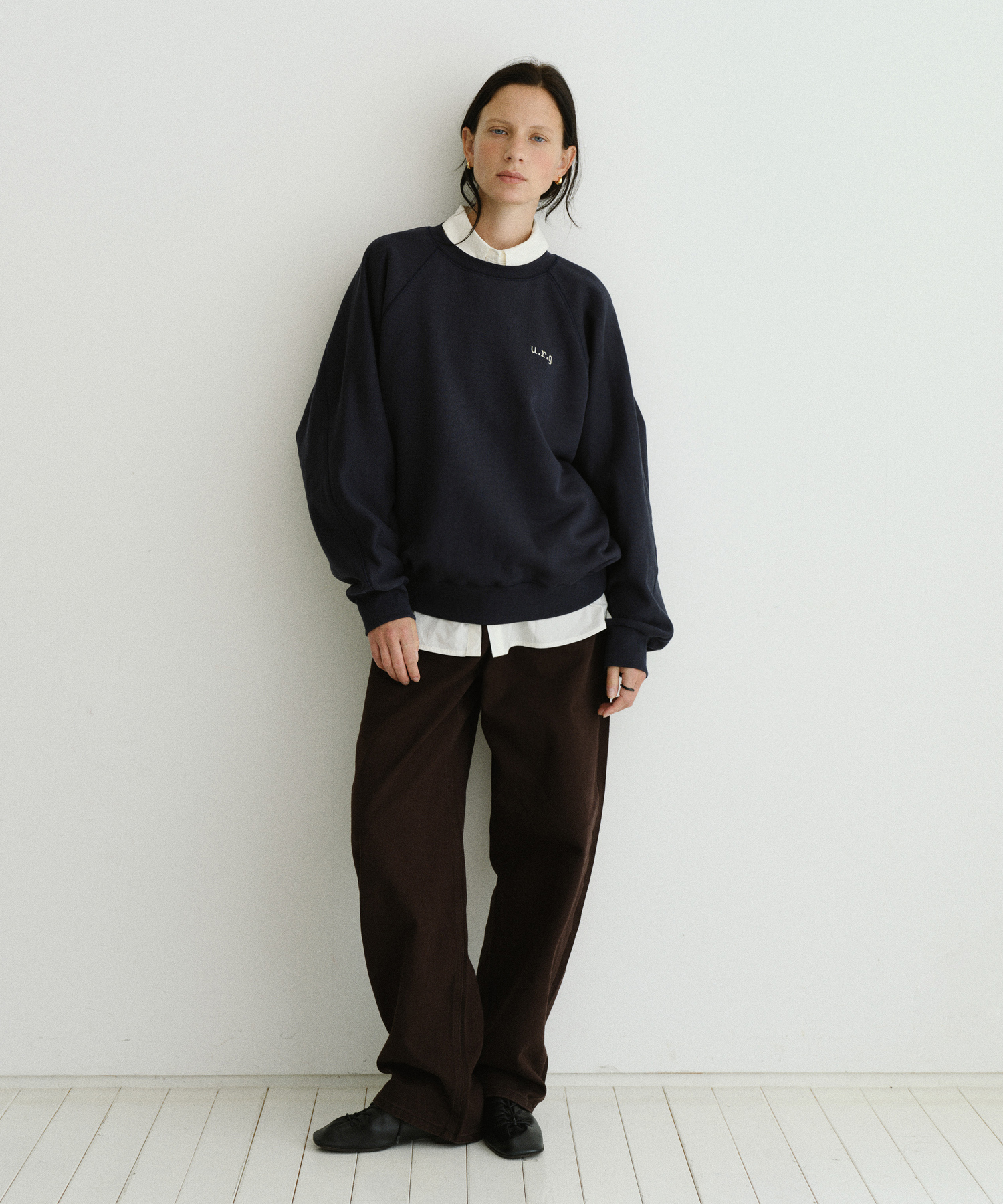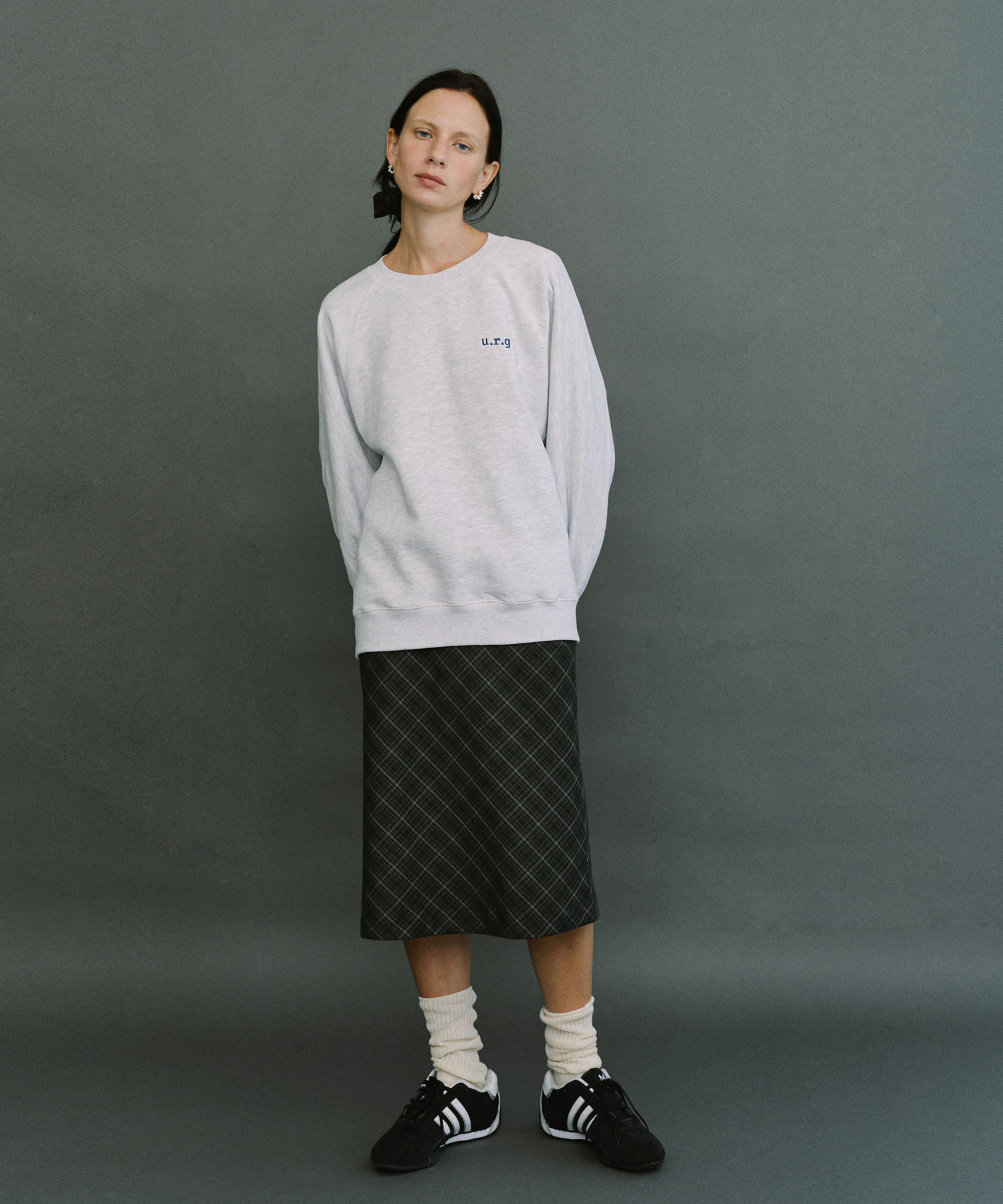 -左胸にはU.R.Gのロゴ刺繍を施し、さりげないアクセントに。ネック・袖口・裾はリブで仕上げ、形崩れしにくく安定感を高めています。