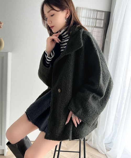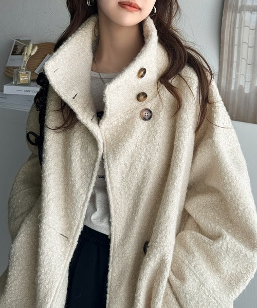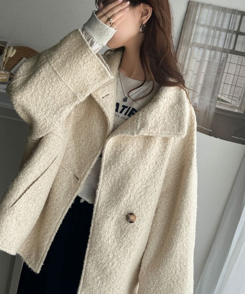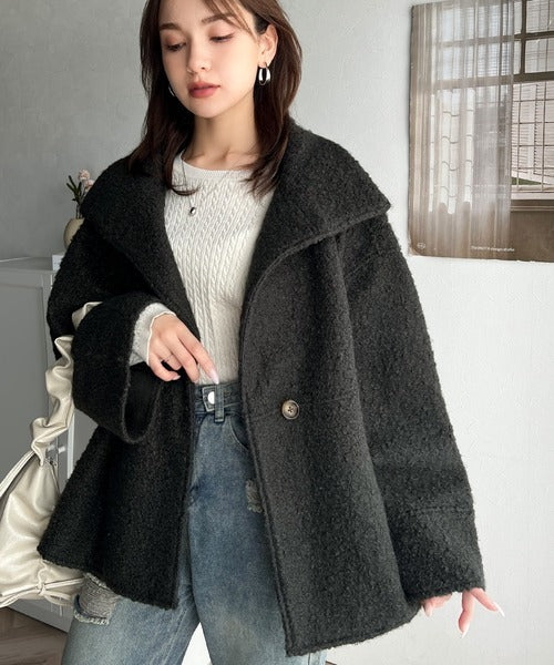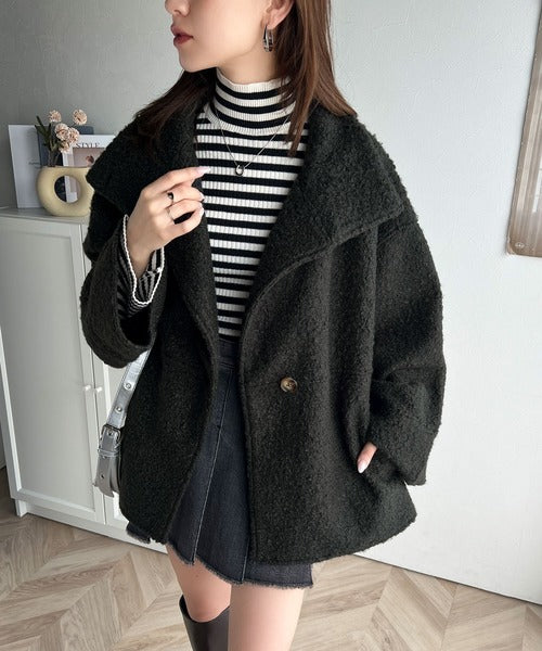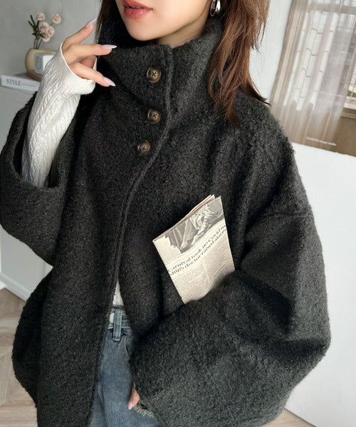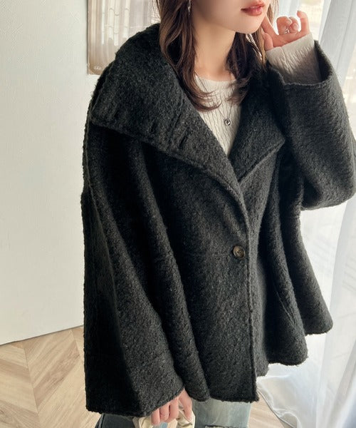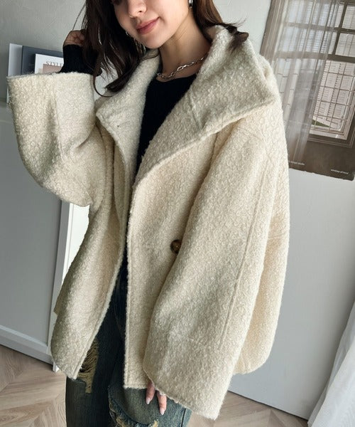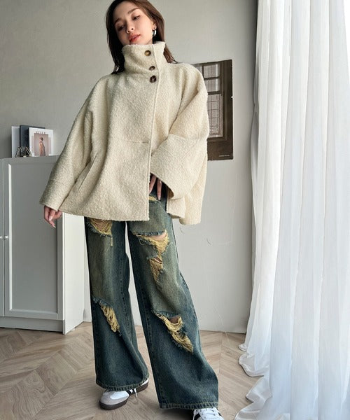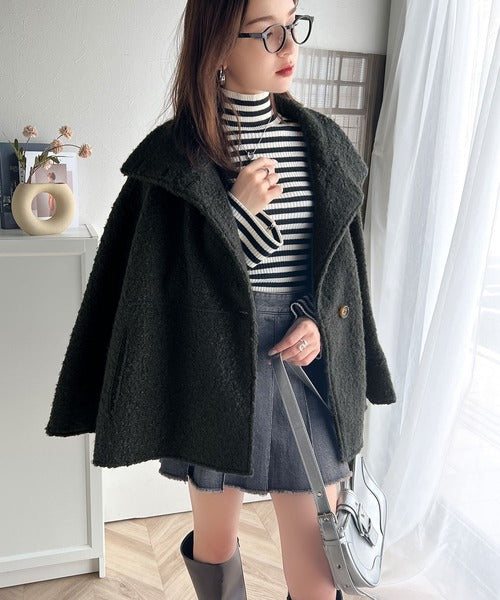 スタンドカラーボアポンチョショート丈ジャケットコート登場。