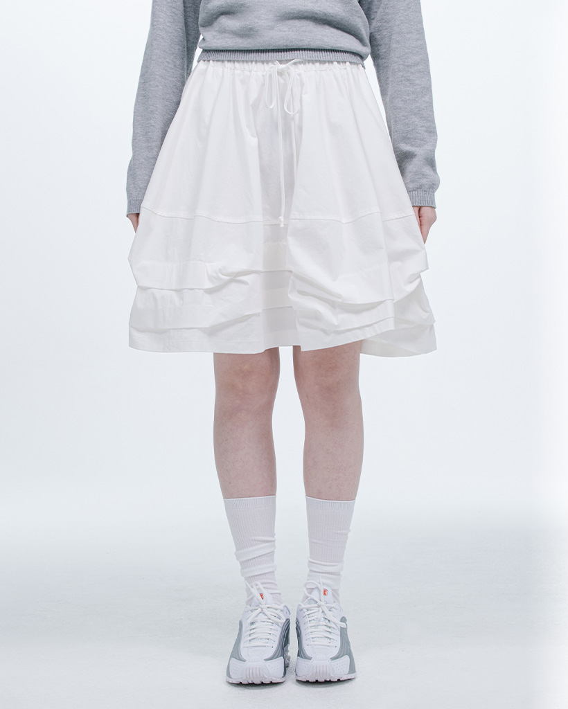 BALLOON LAYERED BANDING SKIRT, IVORY