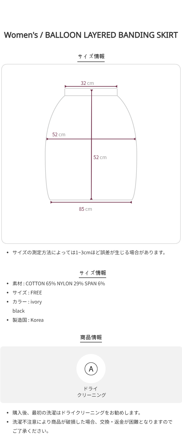 LENGTH 52 WAIST 32 HIP 52 HEM 85