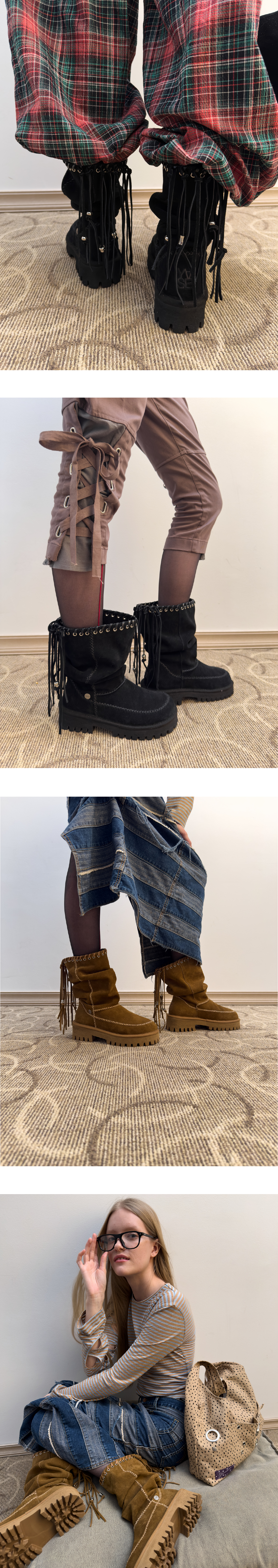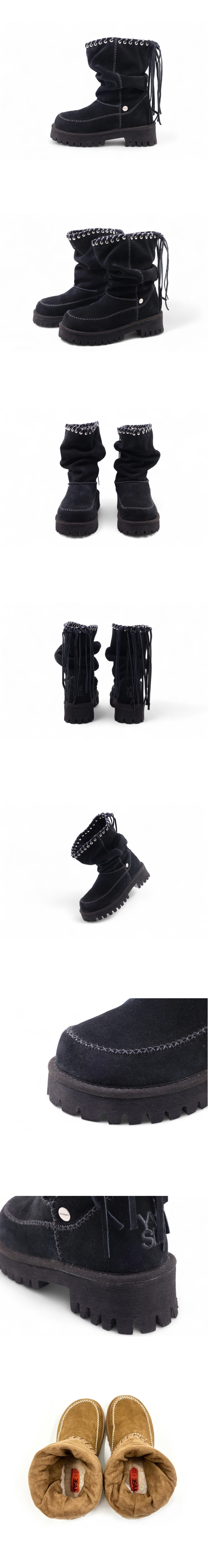 [X YASE] K-POPアイドル着用 pigtail boots (suede black)