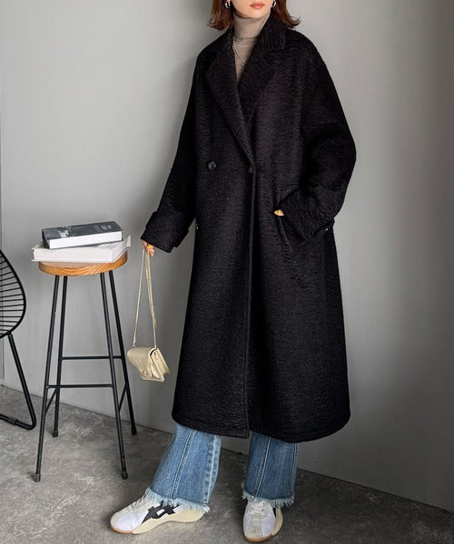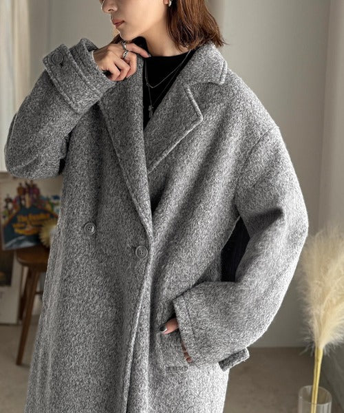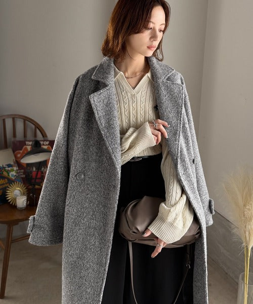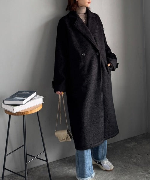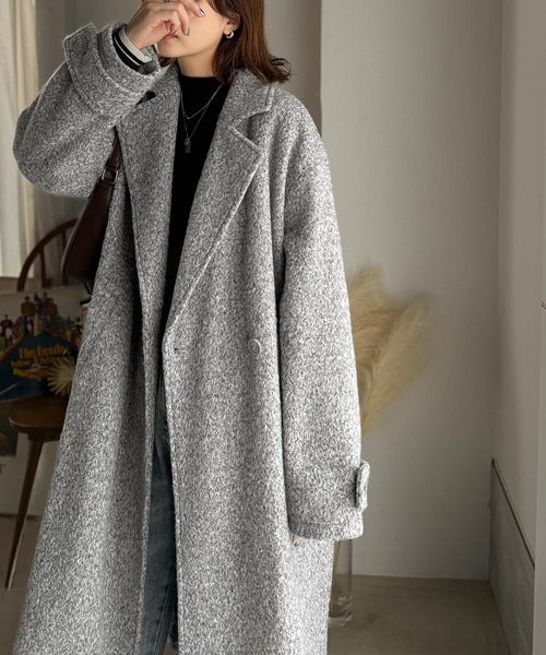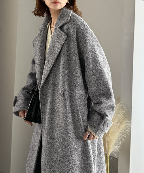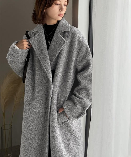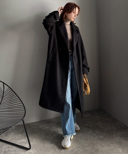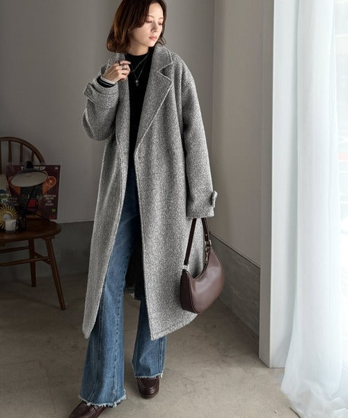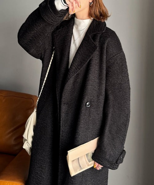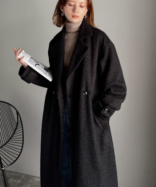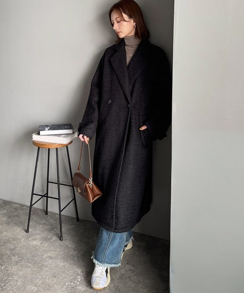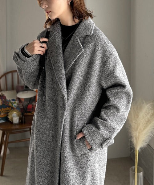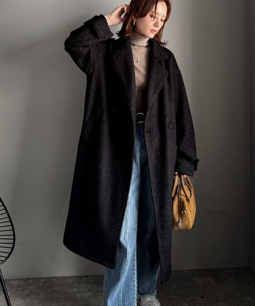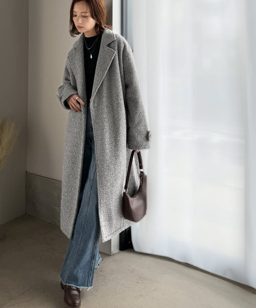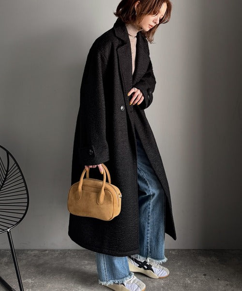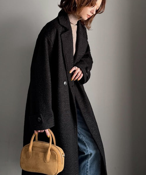 上品な風合いと立体感のあるウールライク素材を使ったロングコートです。