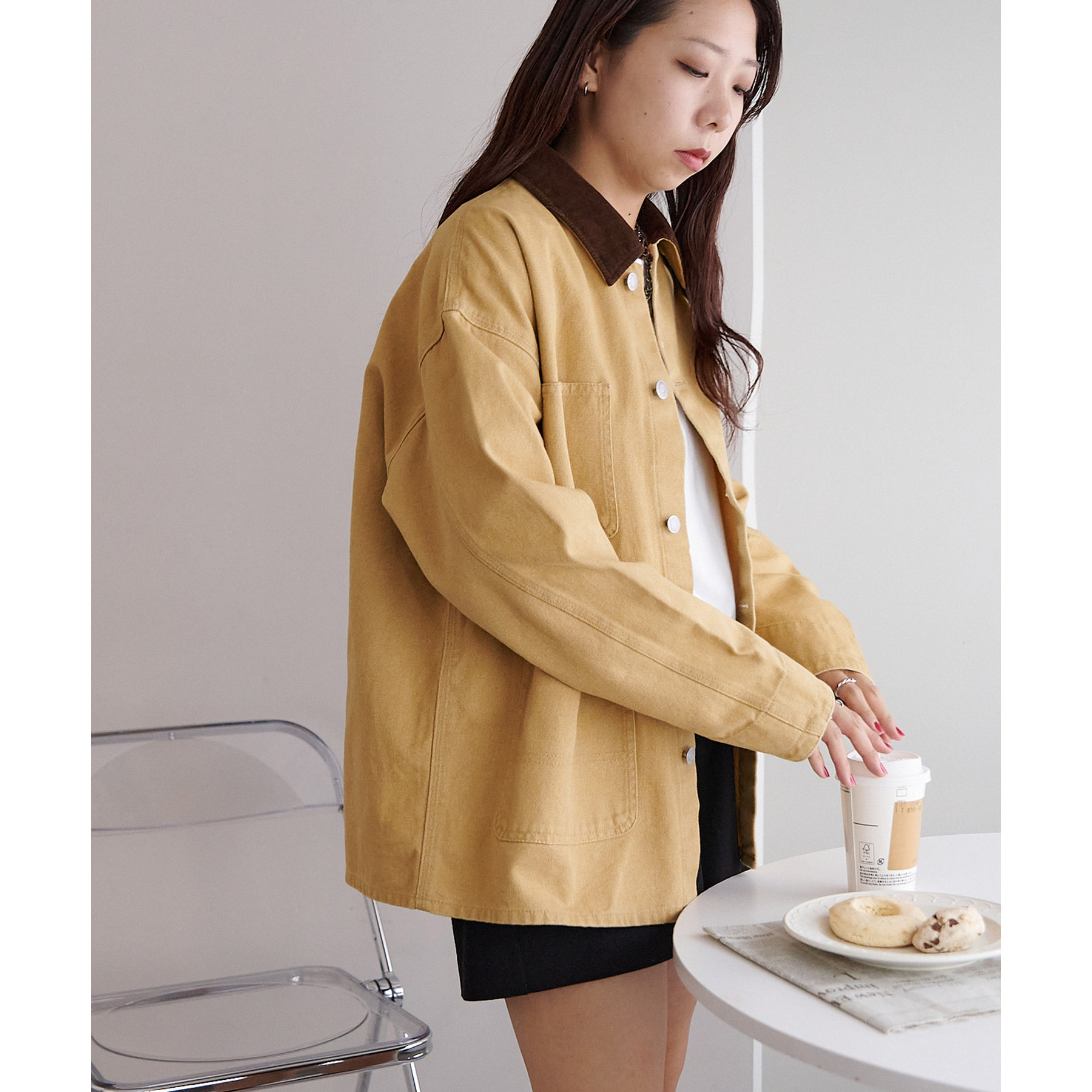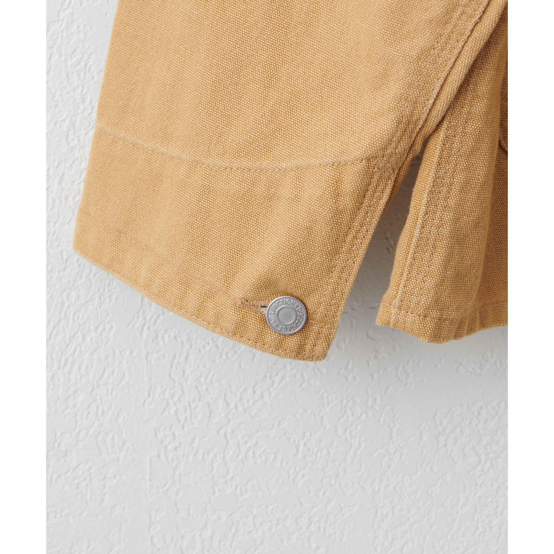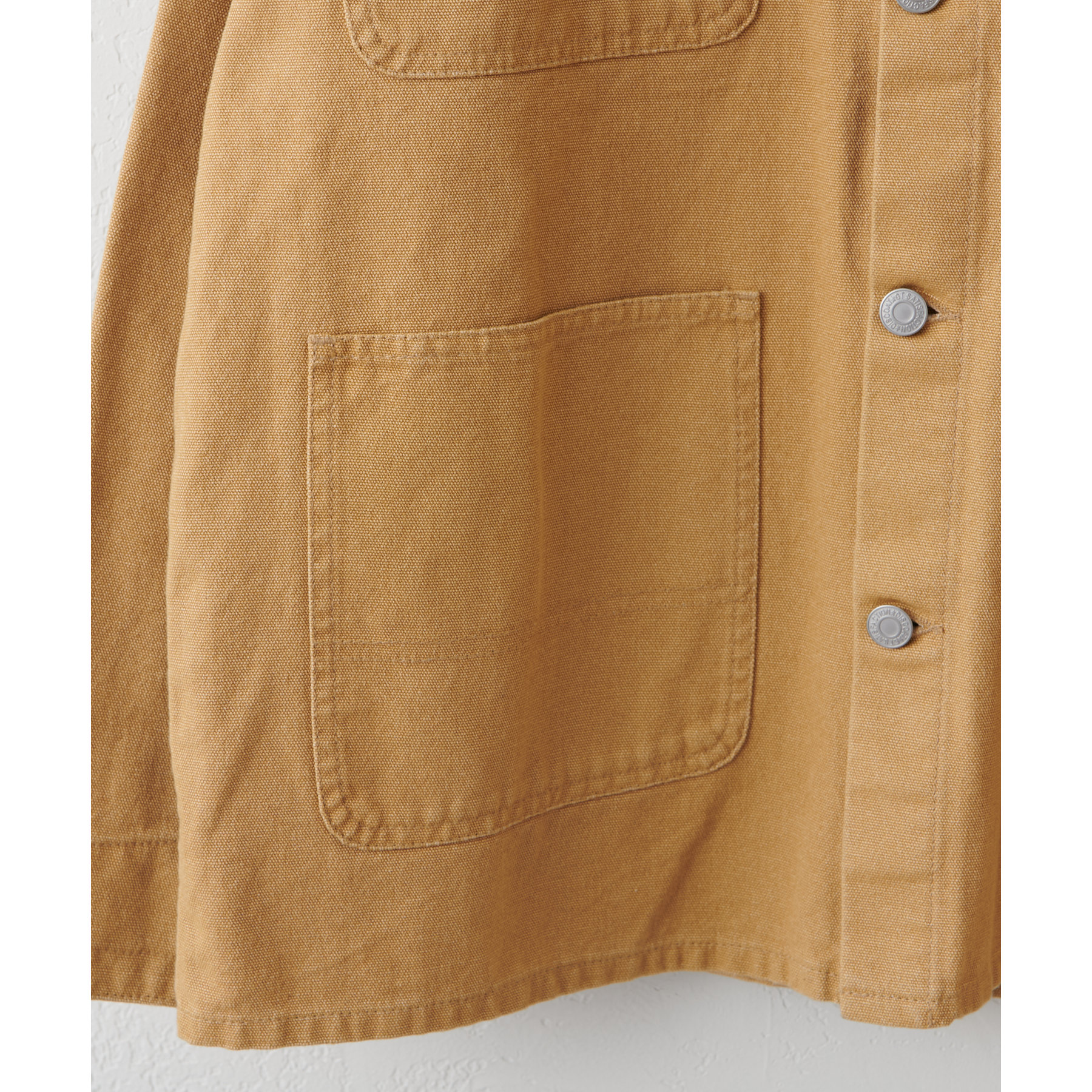 程よい肉厚感とハリのあるコットン生地を使用したシャツジャケット型のカバーオールジャケット。ロングシーズンで着用できます。ヴィンテージ感にこだわった加工もポイント。あえてワンピースやスカートなど、ガーリーなアイテムと合わせて着用するのもおすすめ。レディース・メンズ問わず着用可能な、ゆったりとしたオーバーサイズになっています。