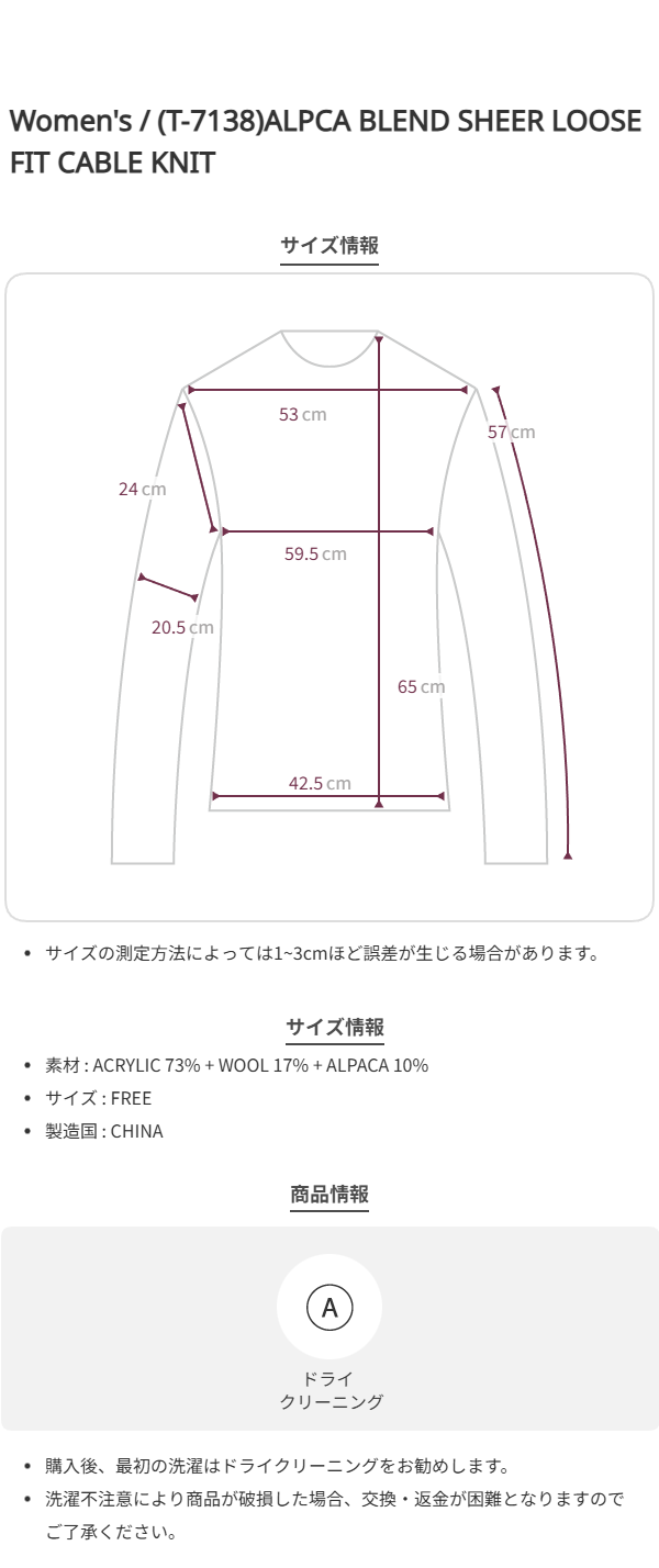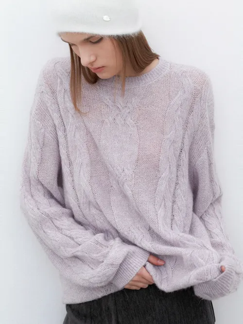[yang x Atelier Nain] (T-7138)ALPCA BLEND SHEER LOOSE FIT CABLE KNIT