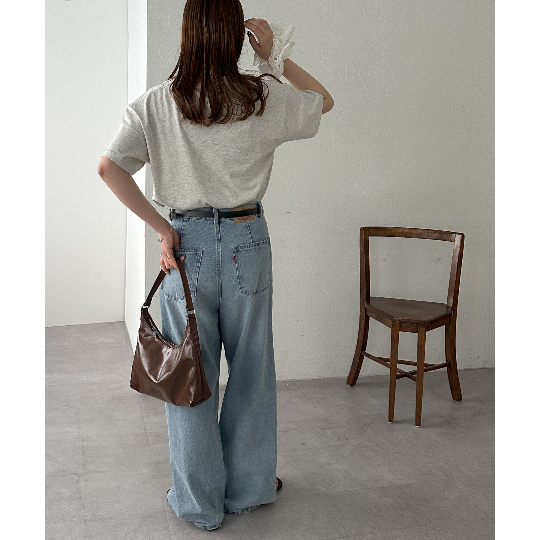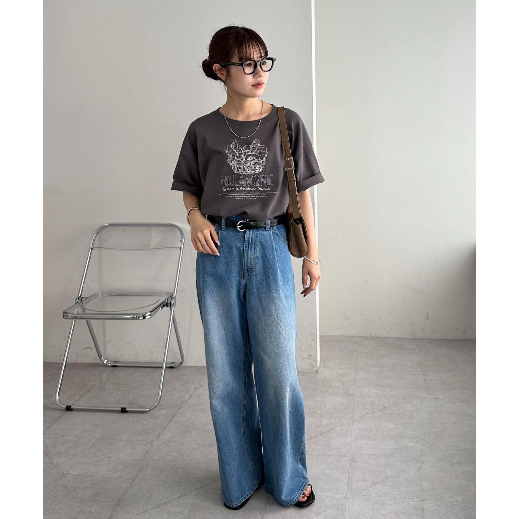 【ユニセックス】デニムタックワイドパンツ