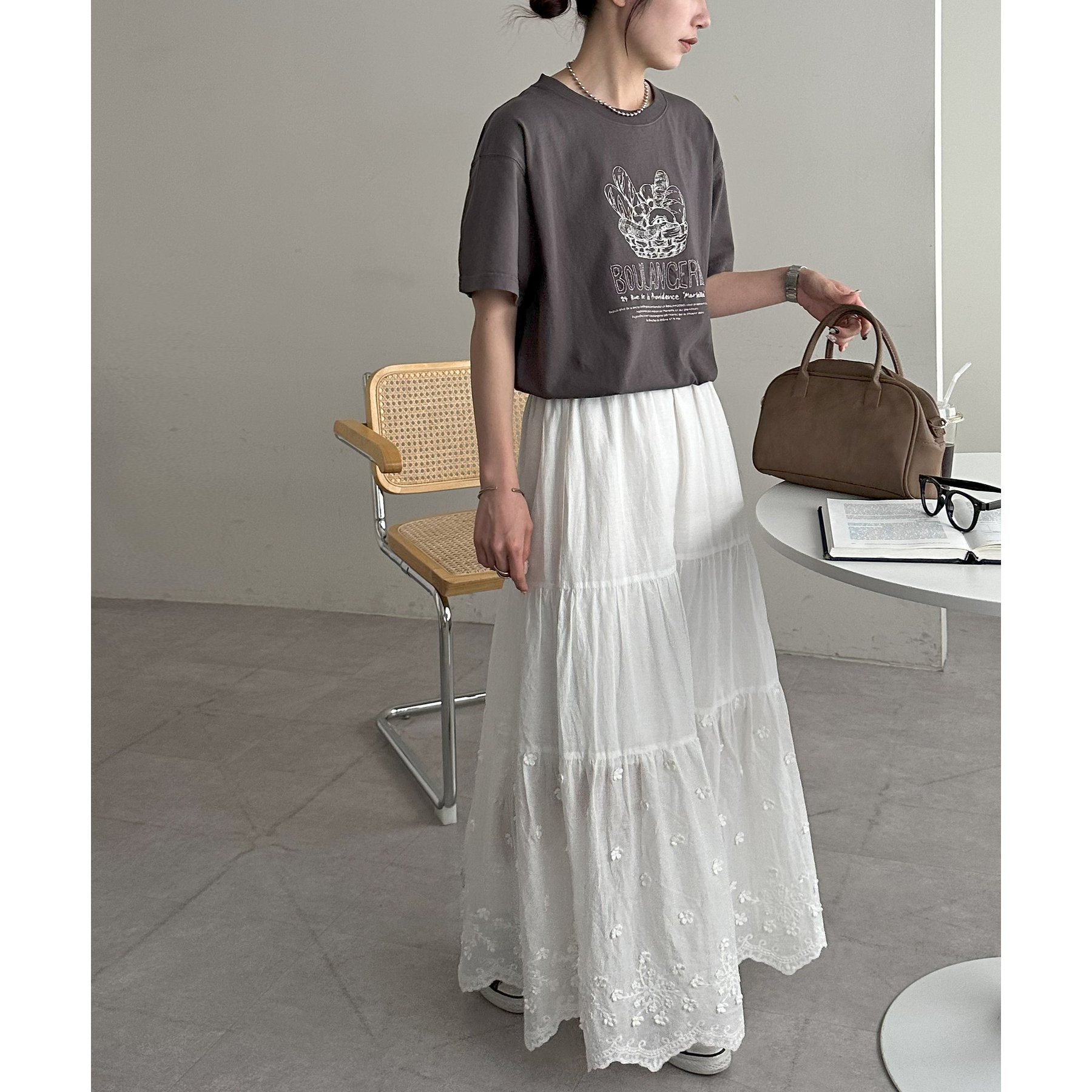 立体花柄ティアードスカート
