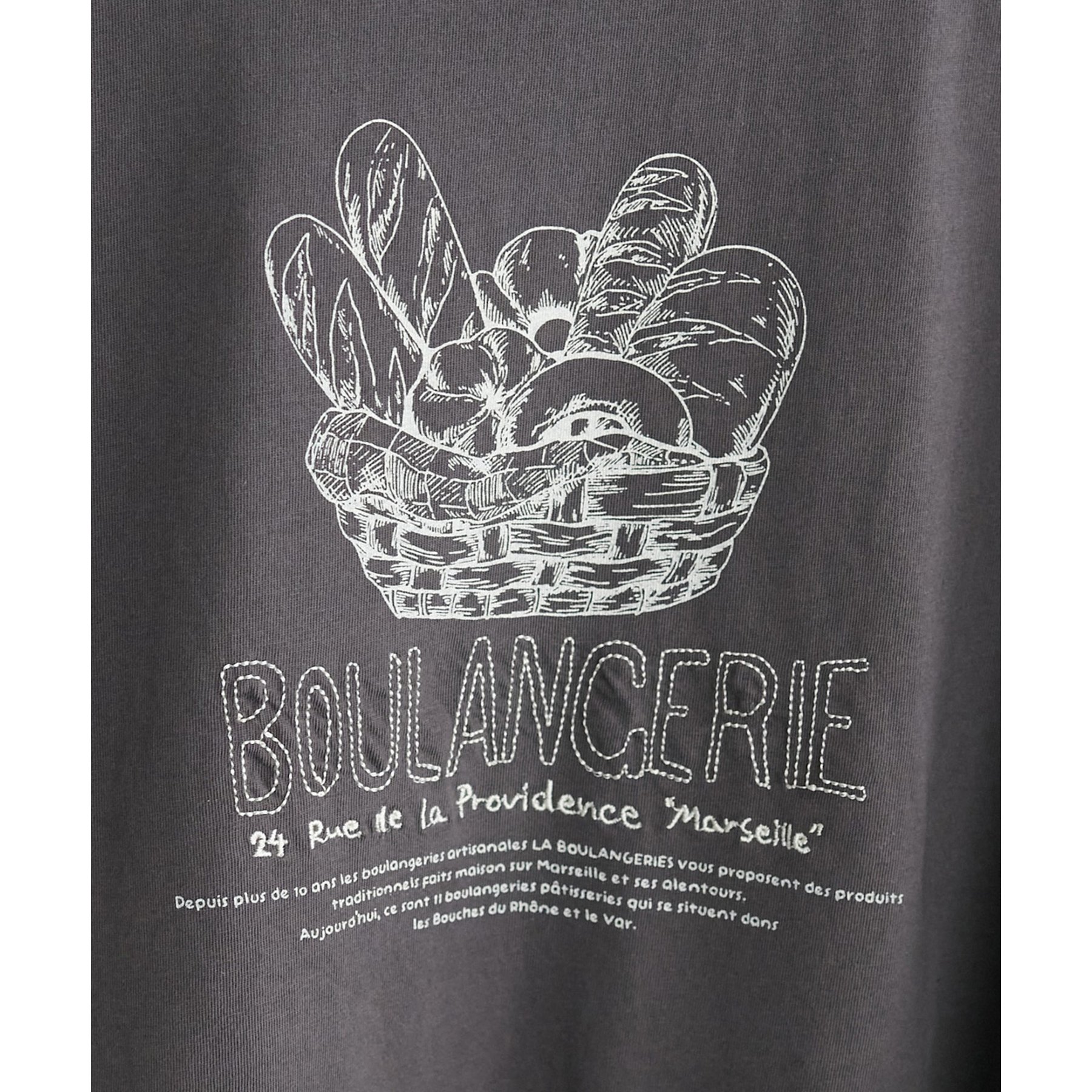それぞれのイラストに添えられたフランス語のロゴ部分は、立体感のある刺繍仕上げ、さりげない立体感が上品さをプラスしてくれます。