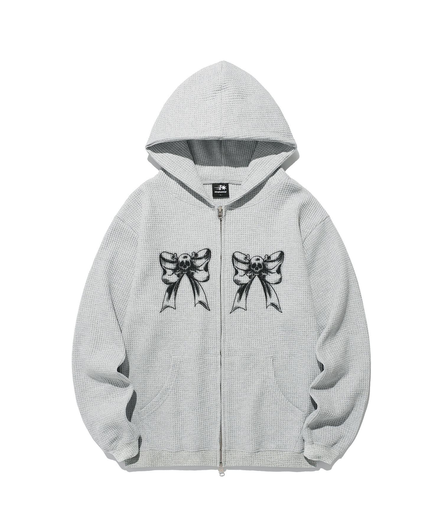 SKULL RIBBON WAFFLE HOODIE ZIP UP_GREY(NG2EFUM482A)