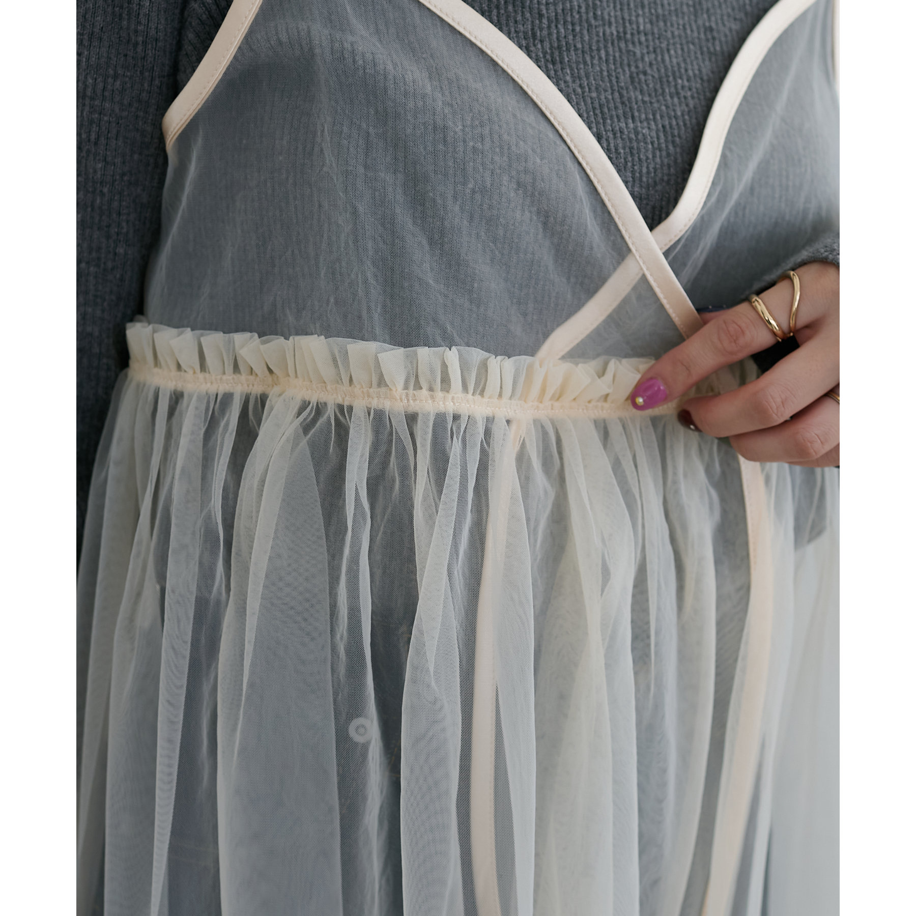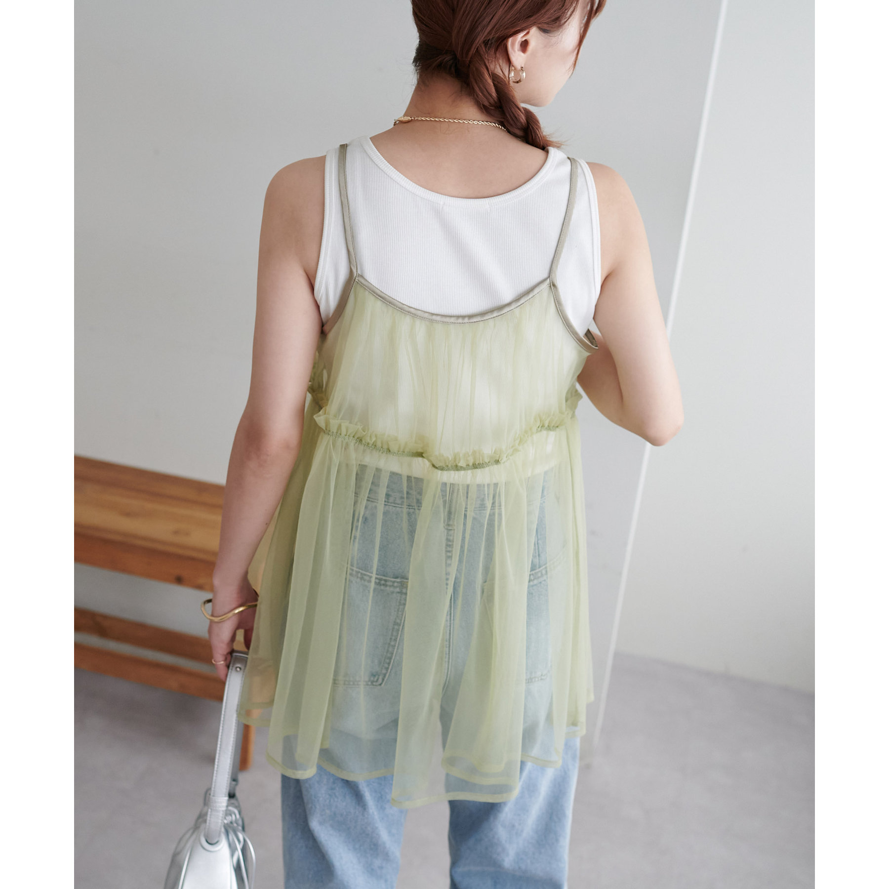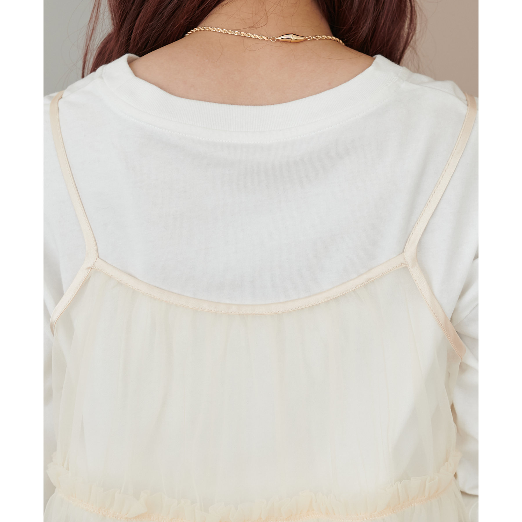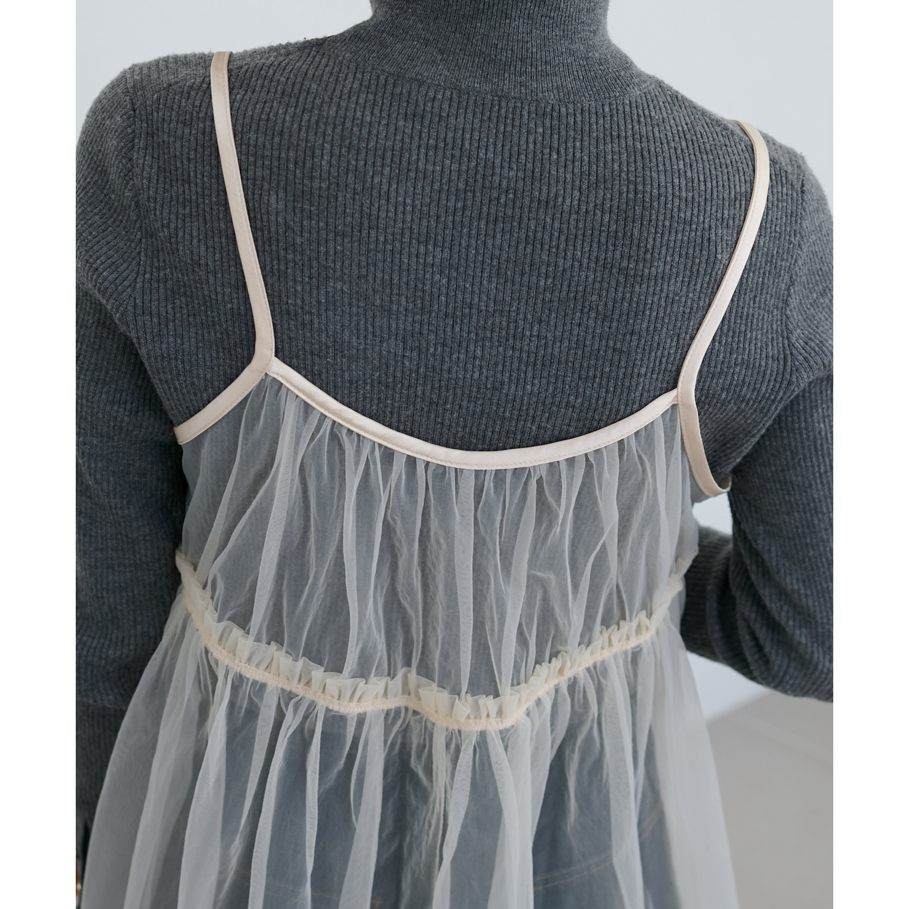 前後2WAY仕様で雰囲気を変えられるチュールキャミビスチェ