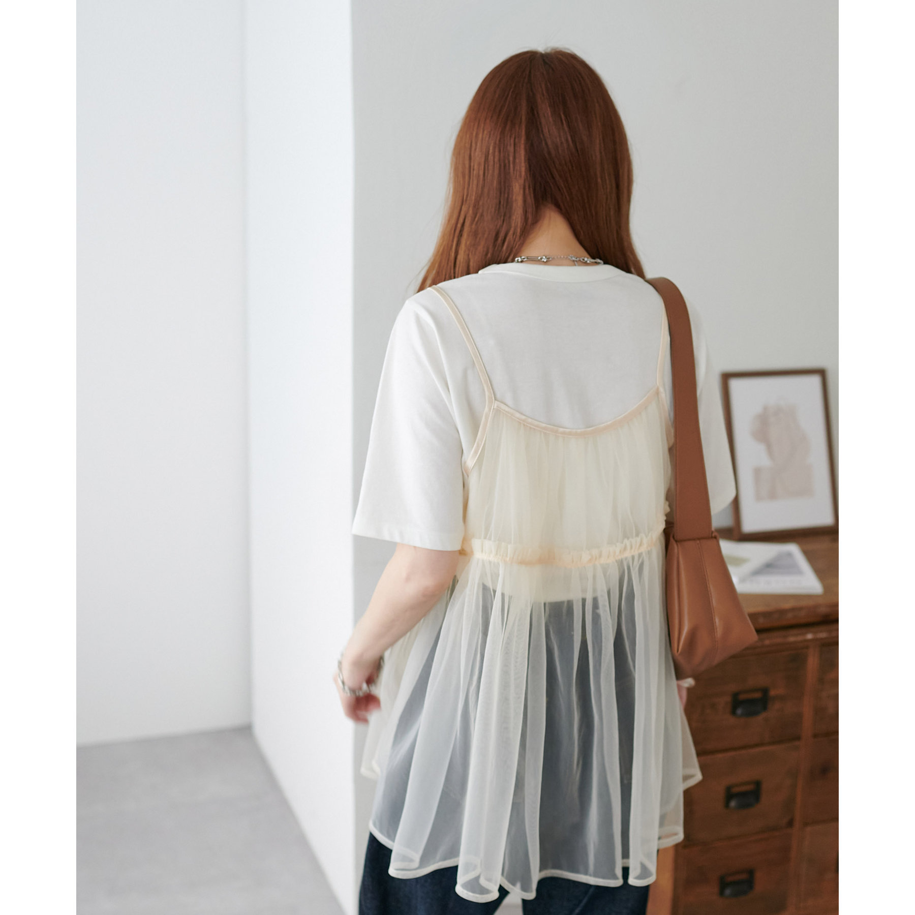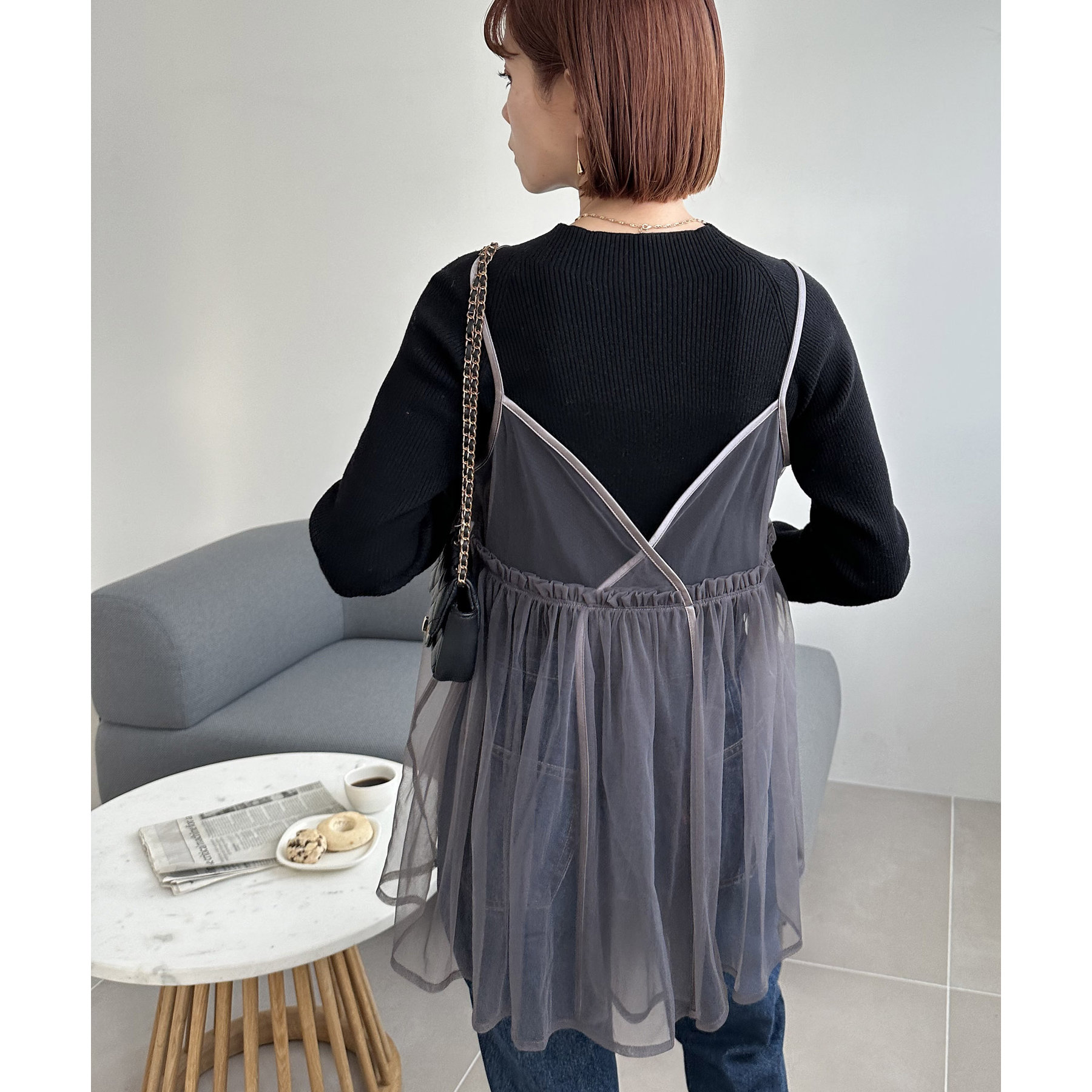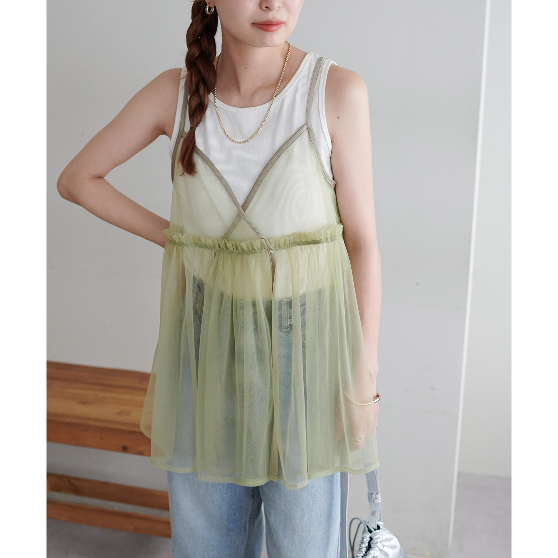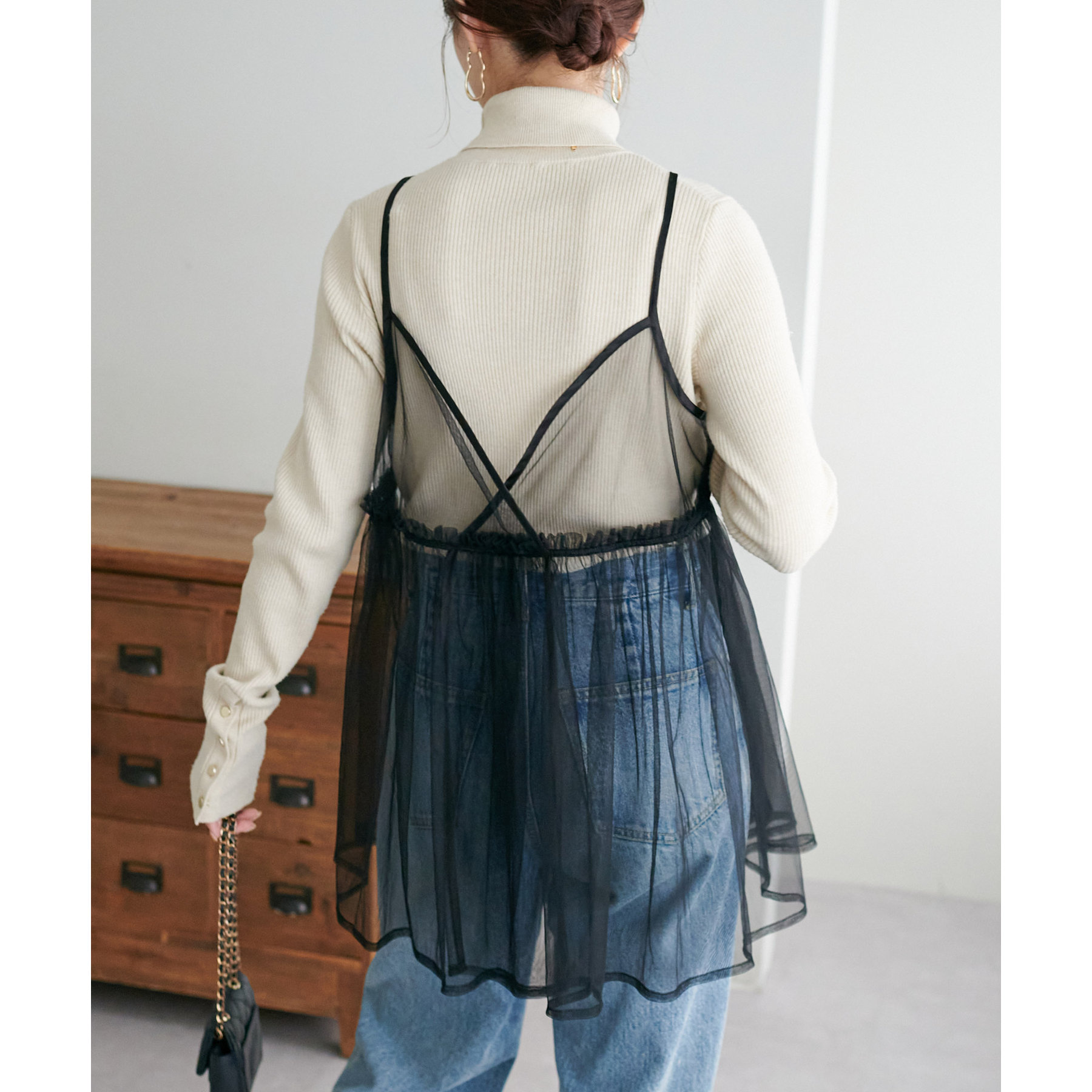 前後2WAY仕様で雰囲気を変えられるチュールキャミビスチェ