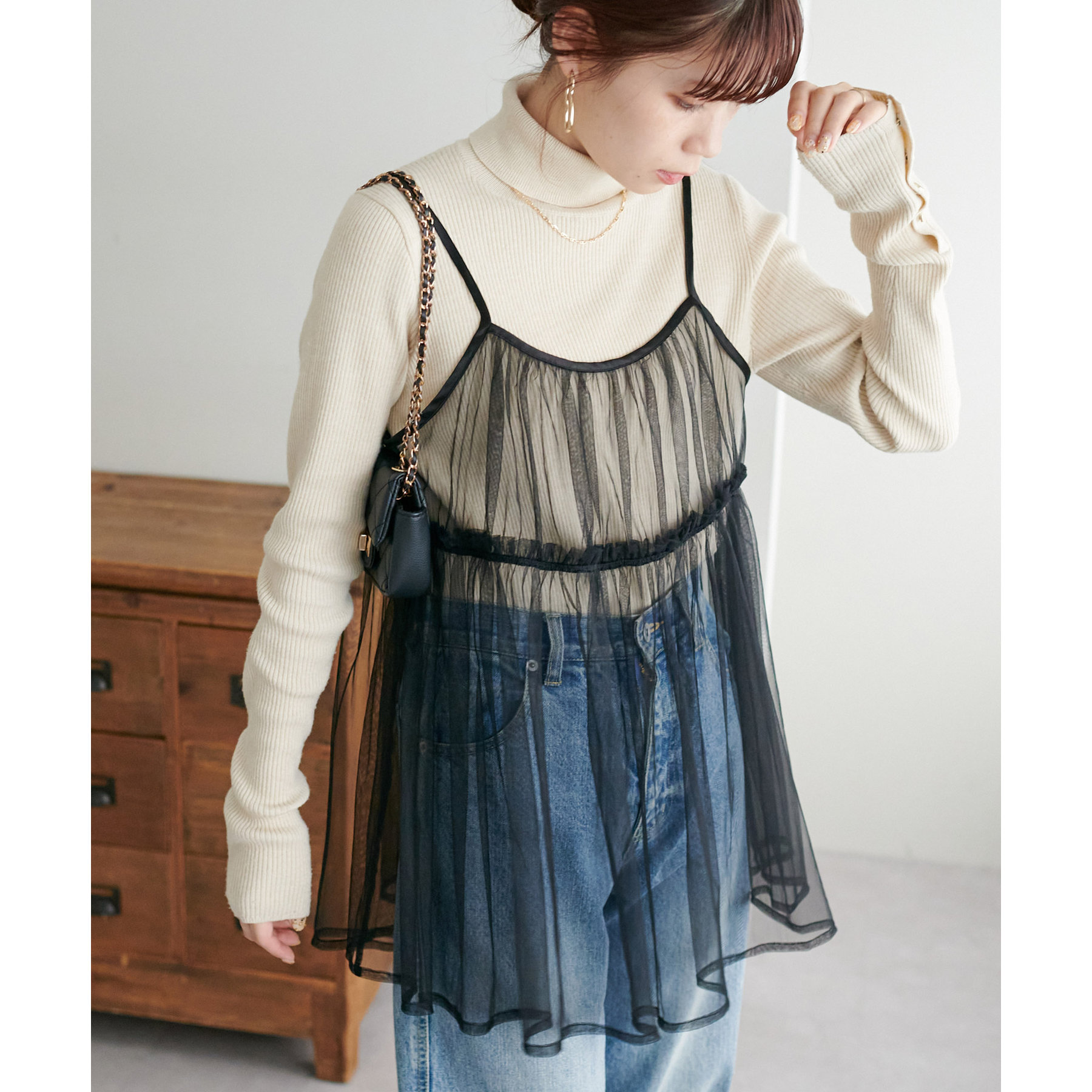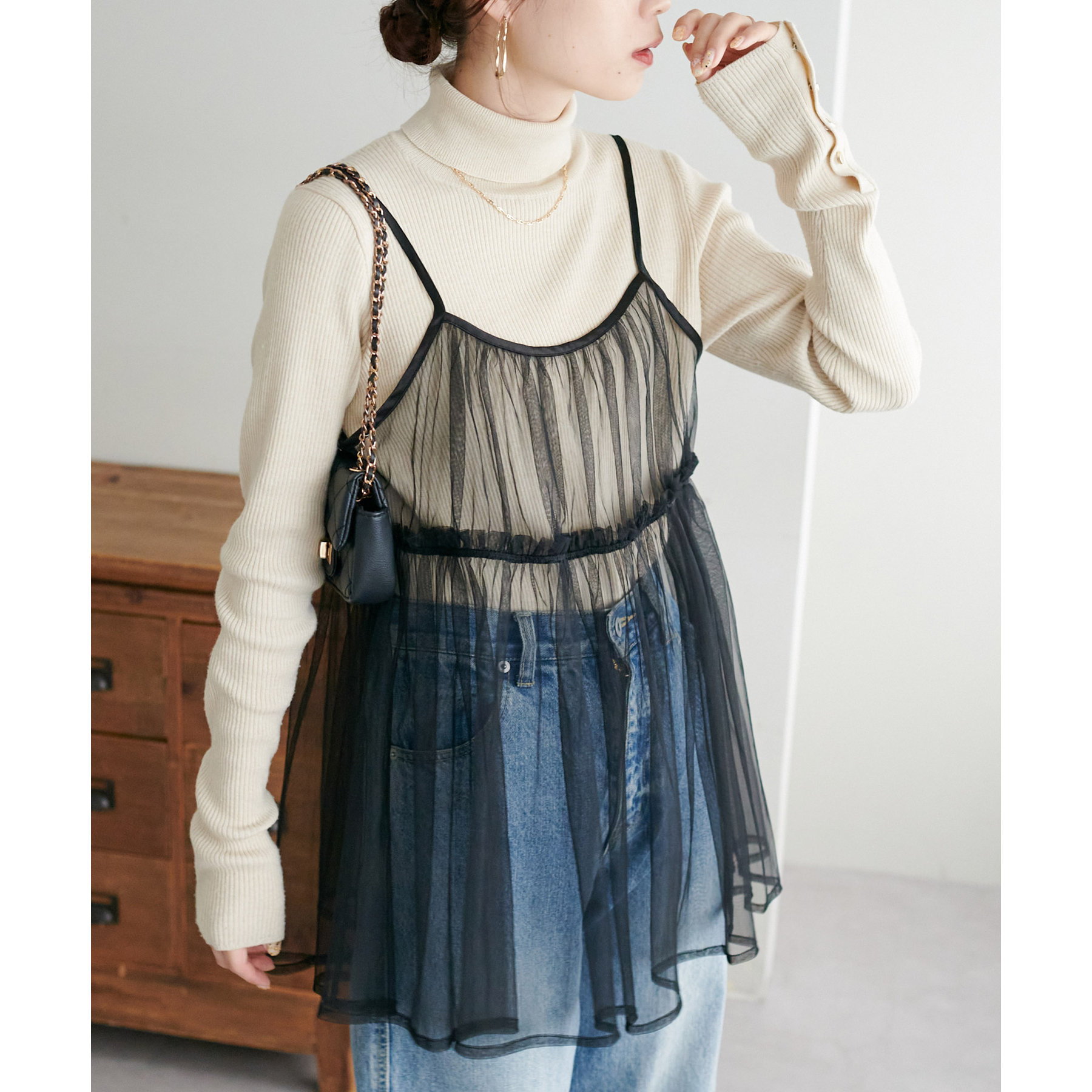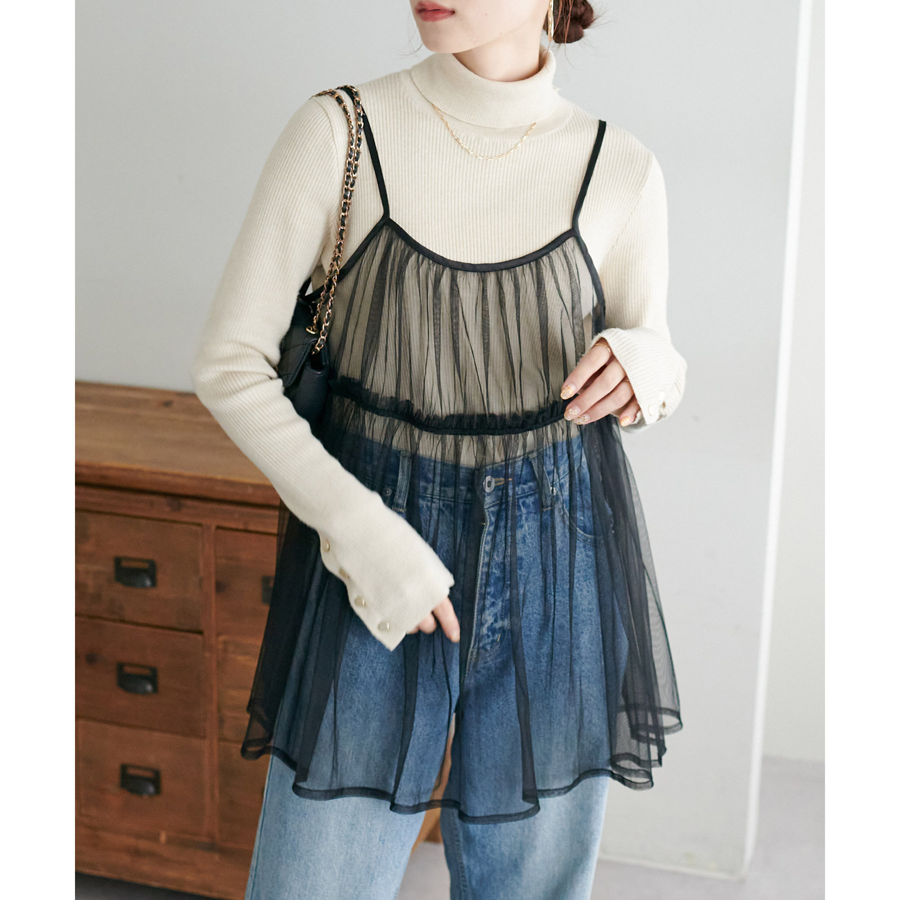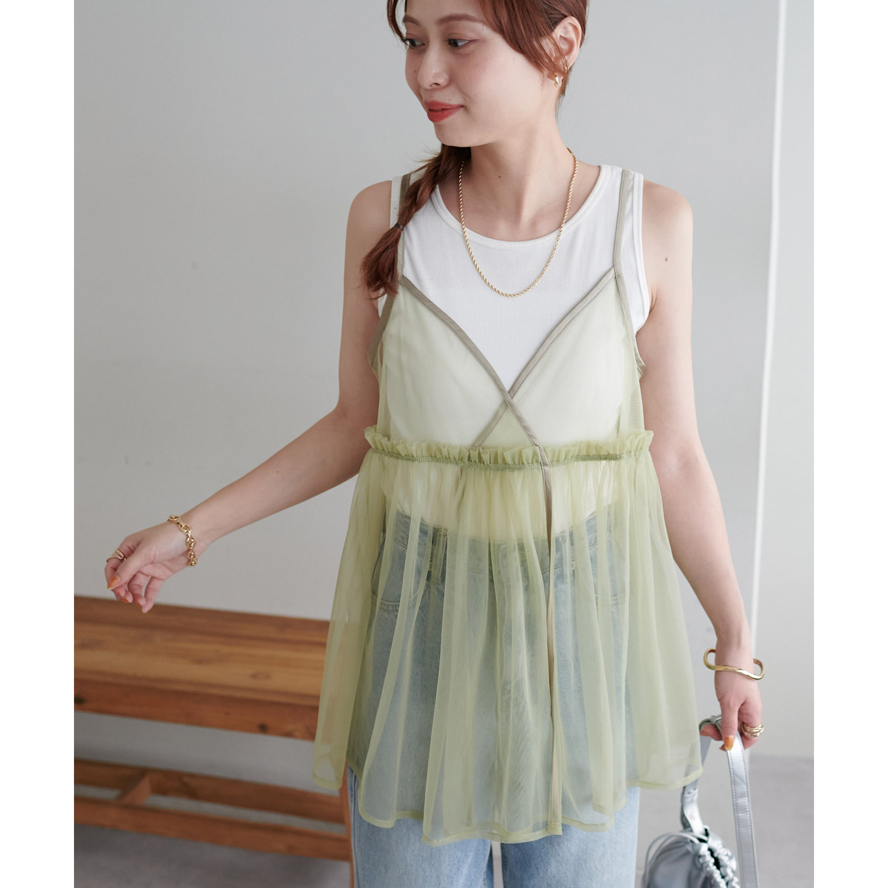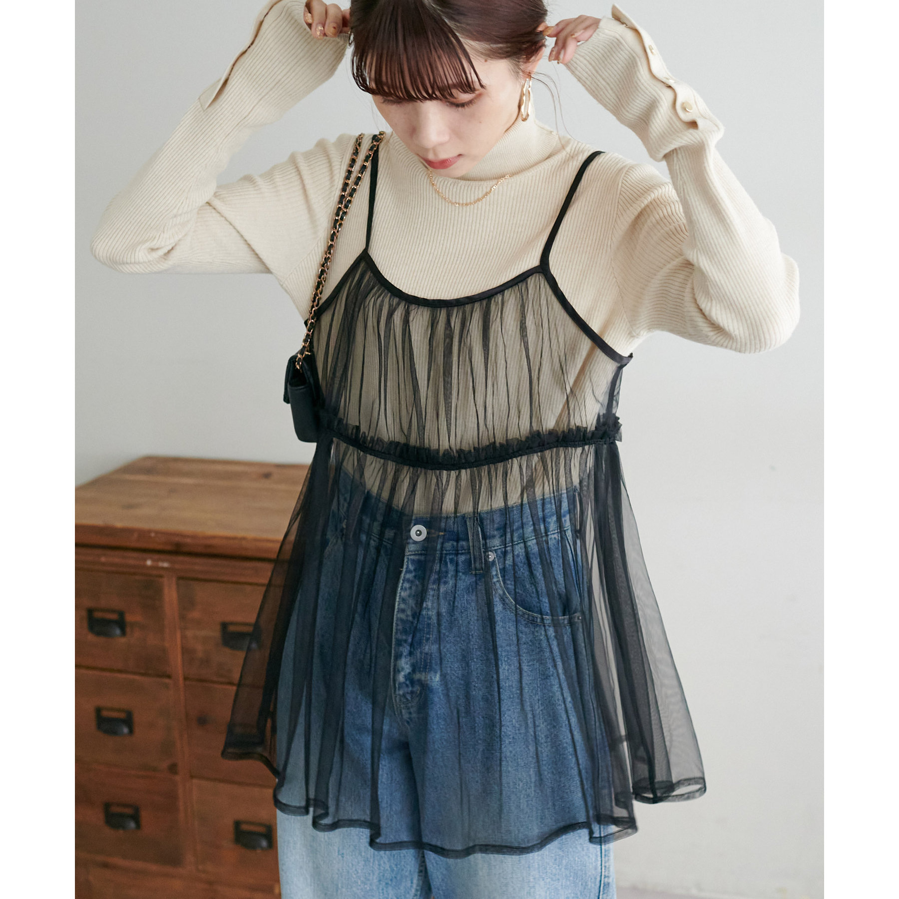 前後2WAY仕様で雰囲気を変えられるチュールキャミビスチェ