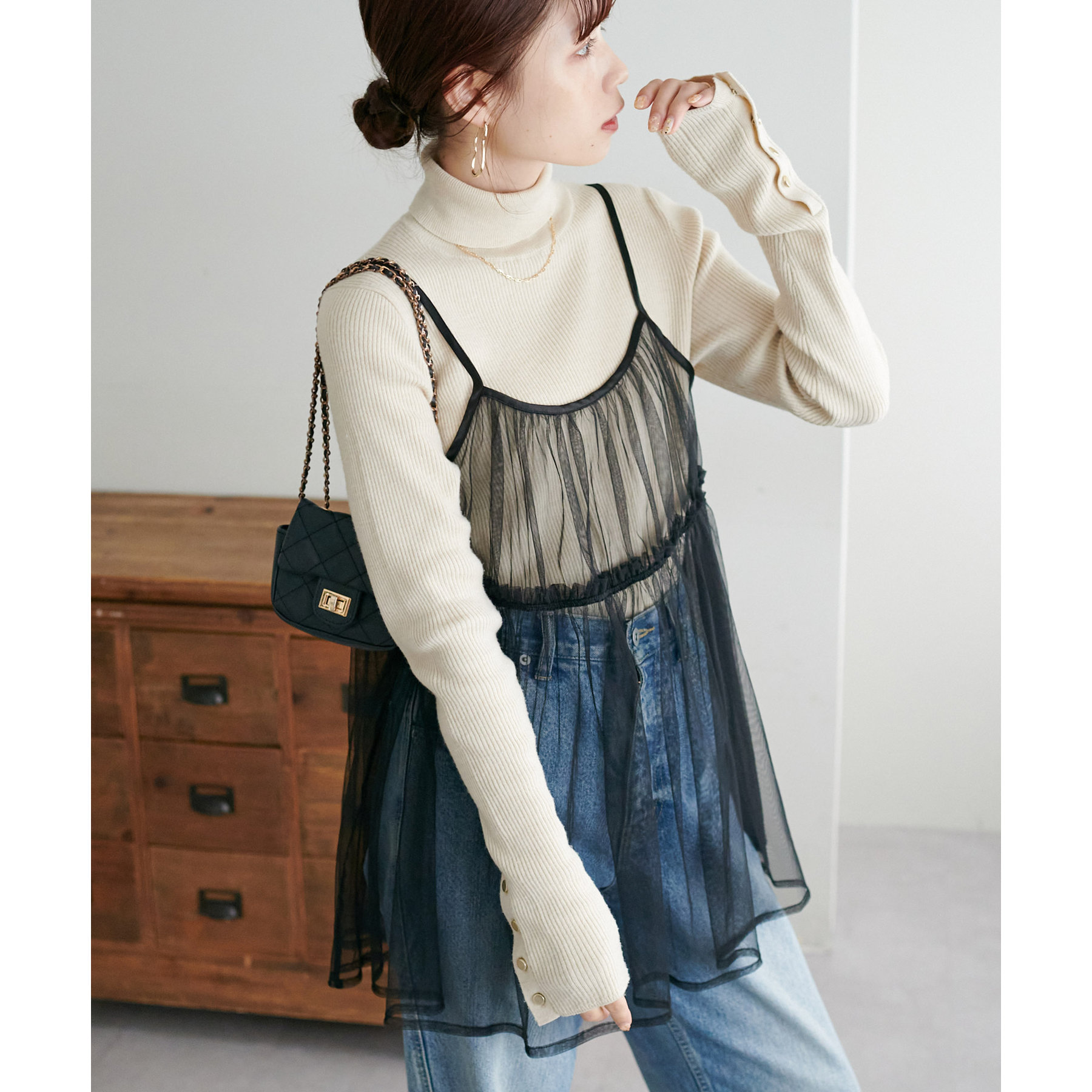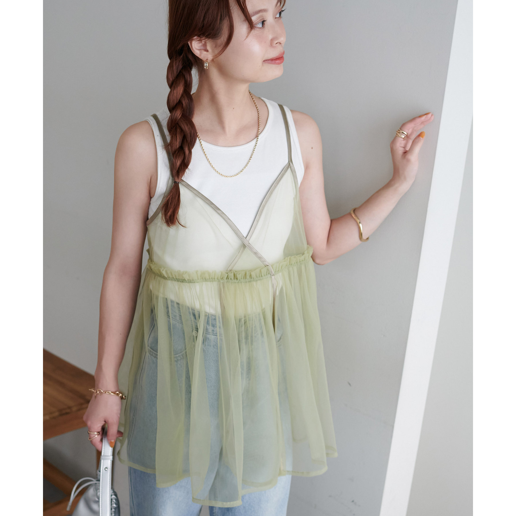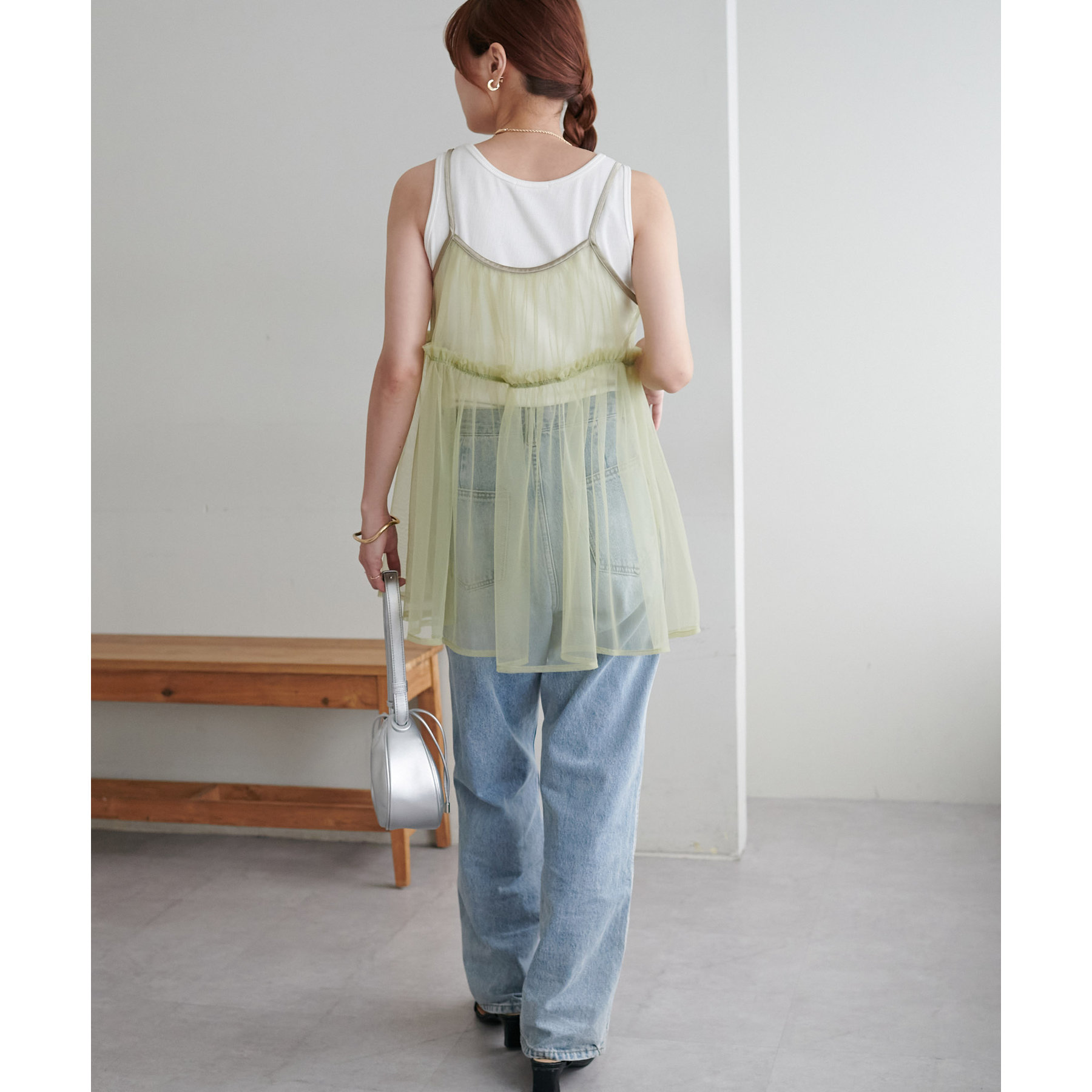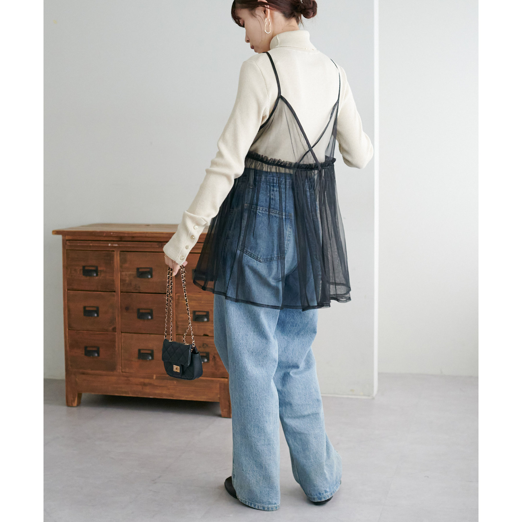 前後2WAY仕様で雰囲気を変えられるチュールキャミビスチェ