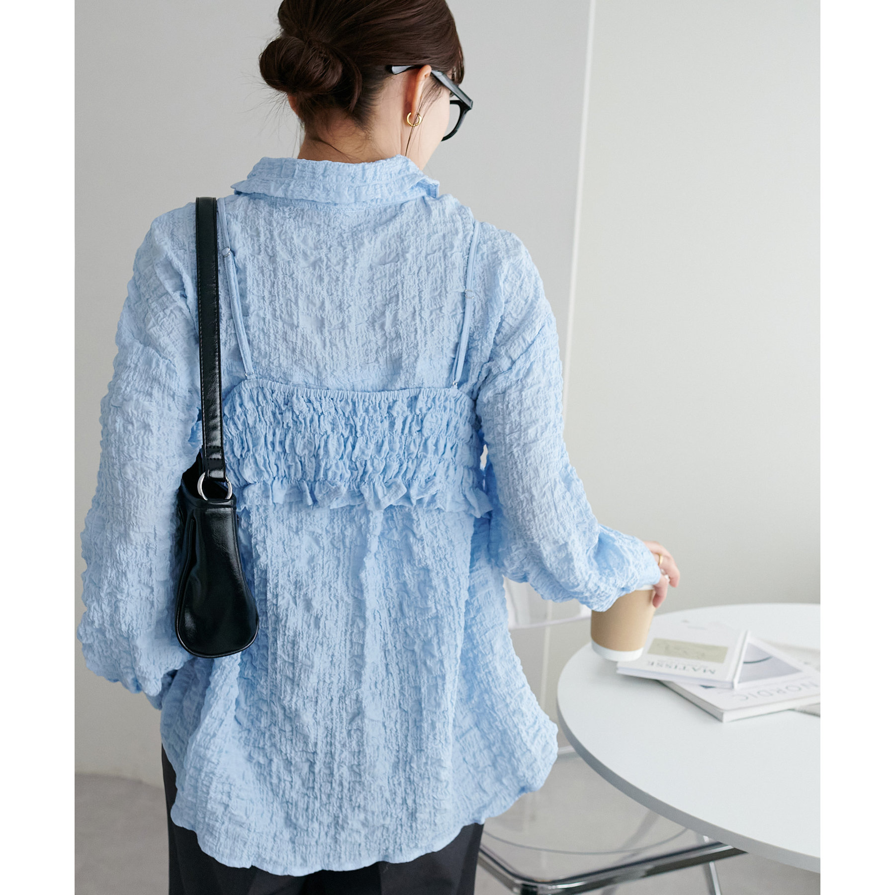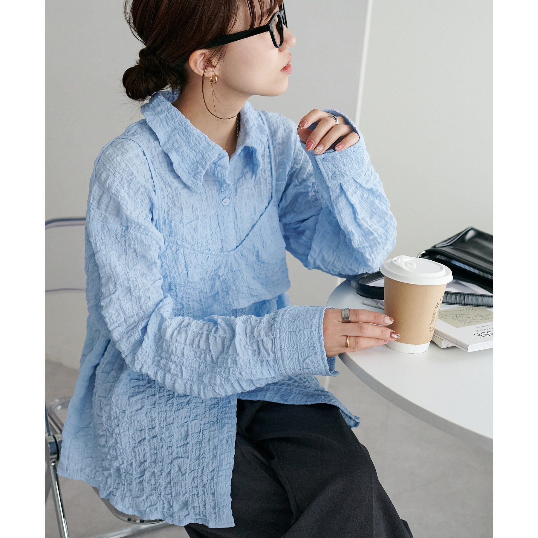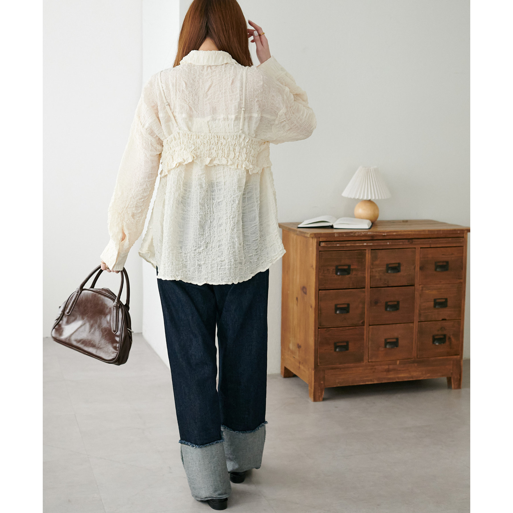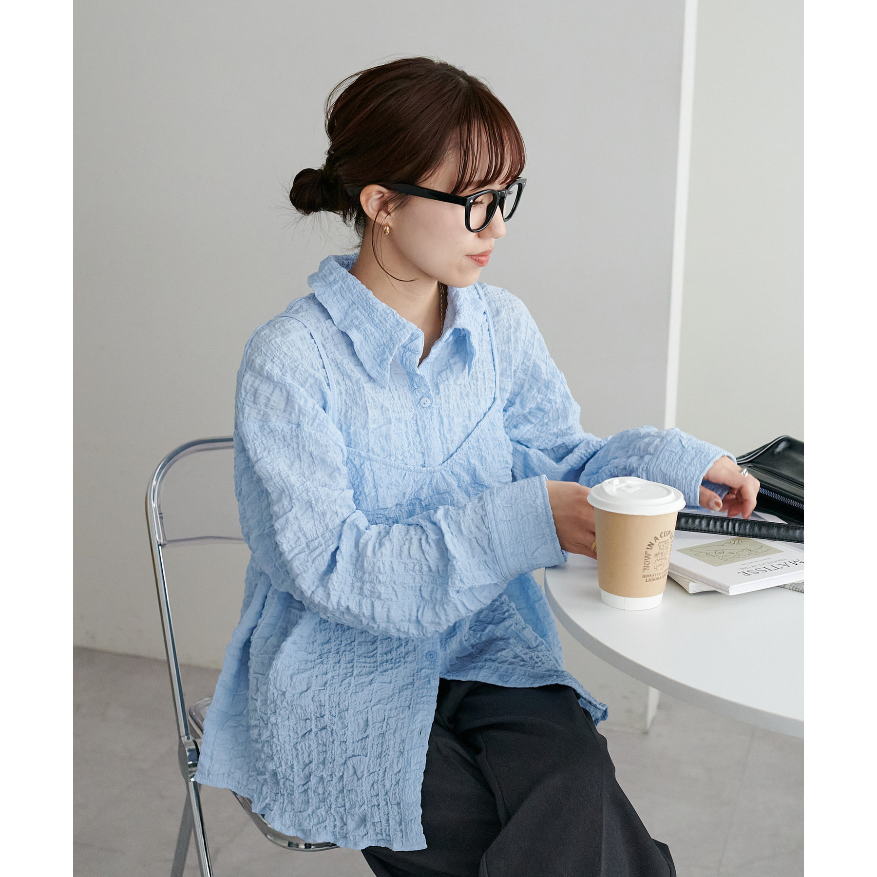 【WEB限定】シャーリング使いビスチェ付シャツ