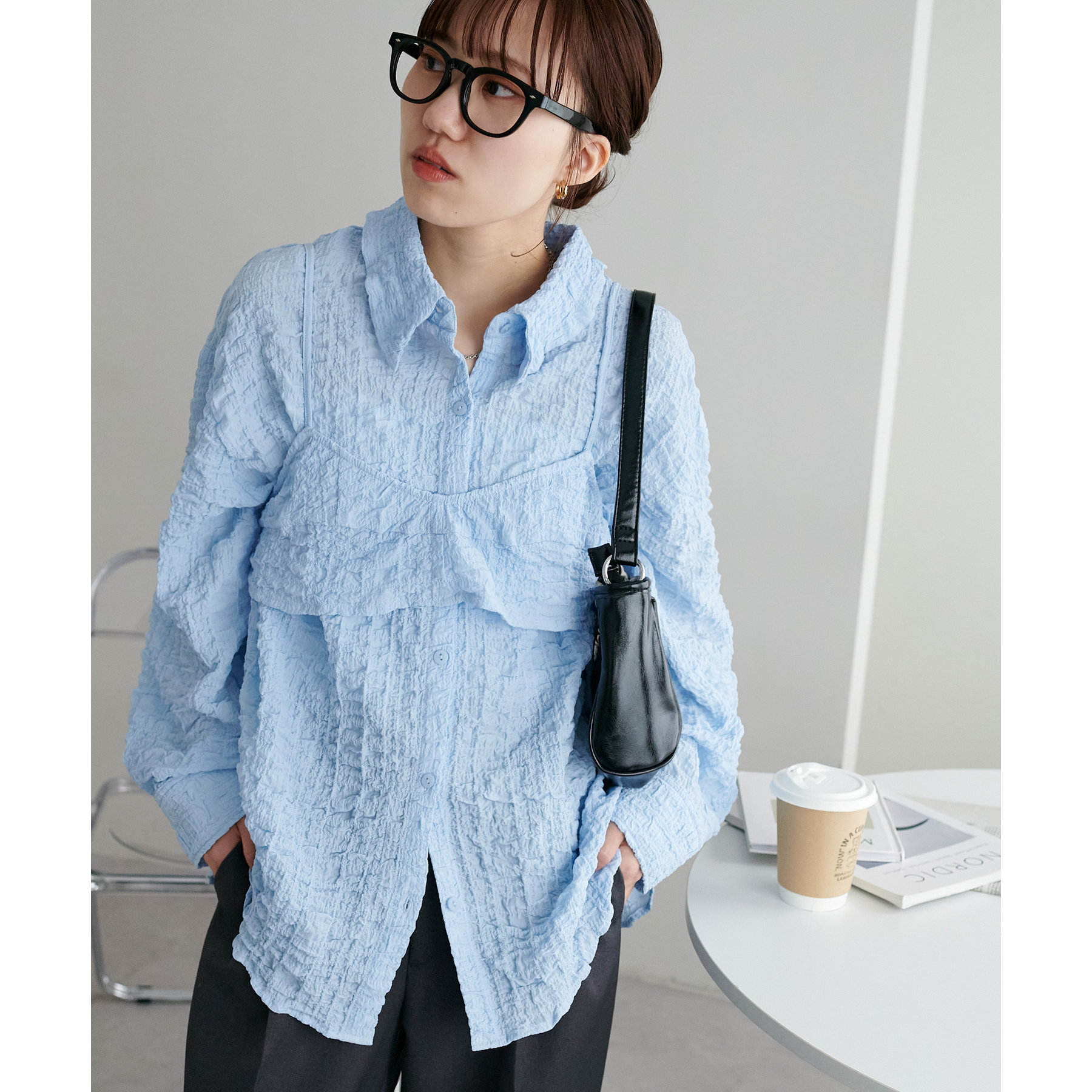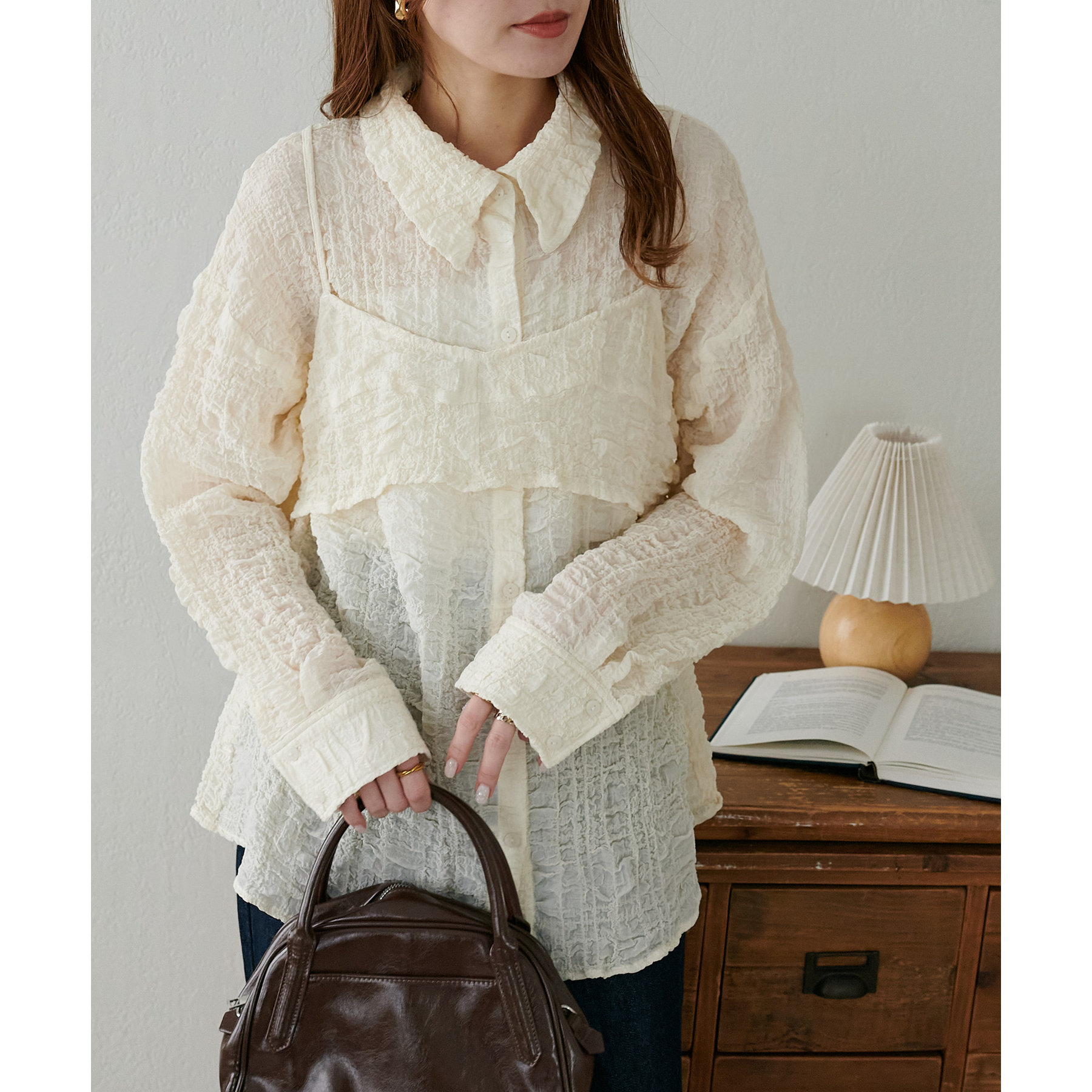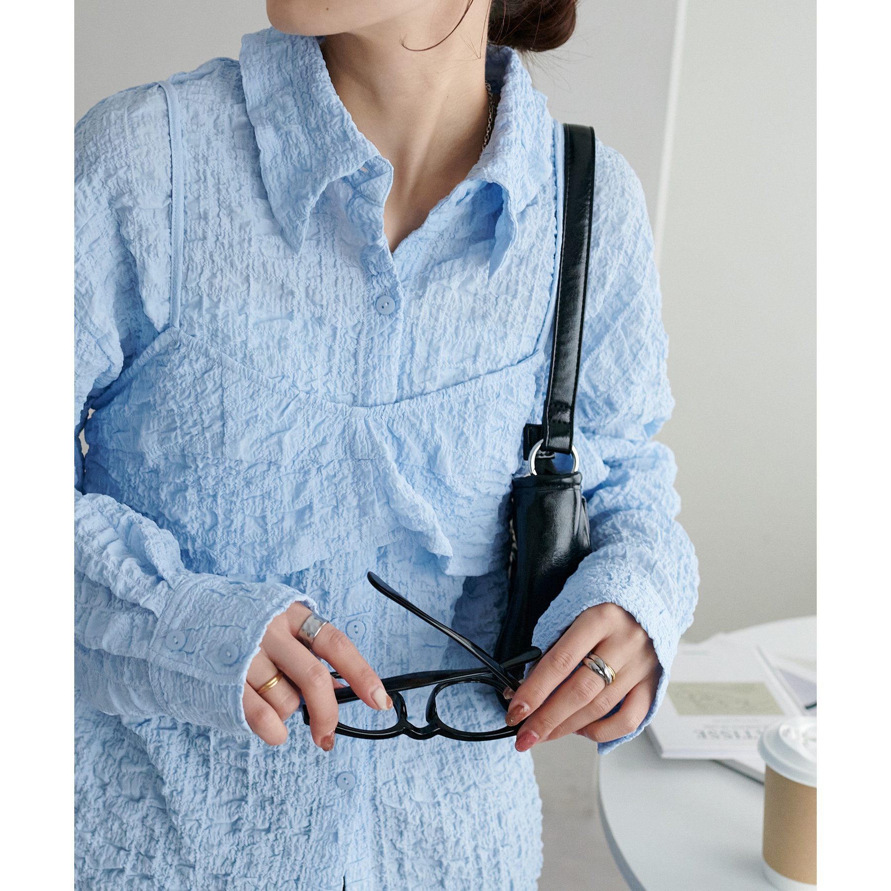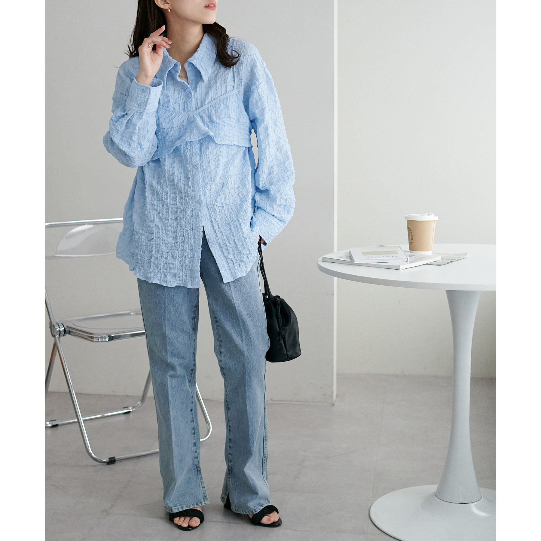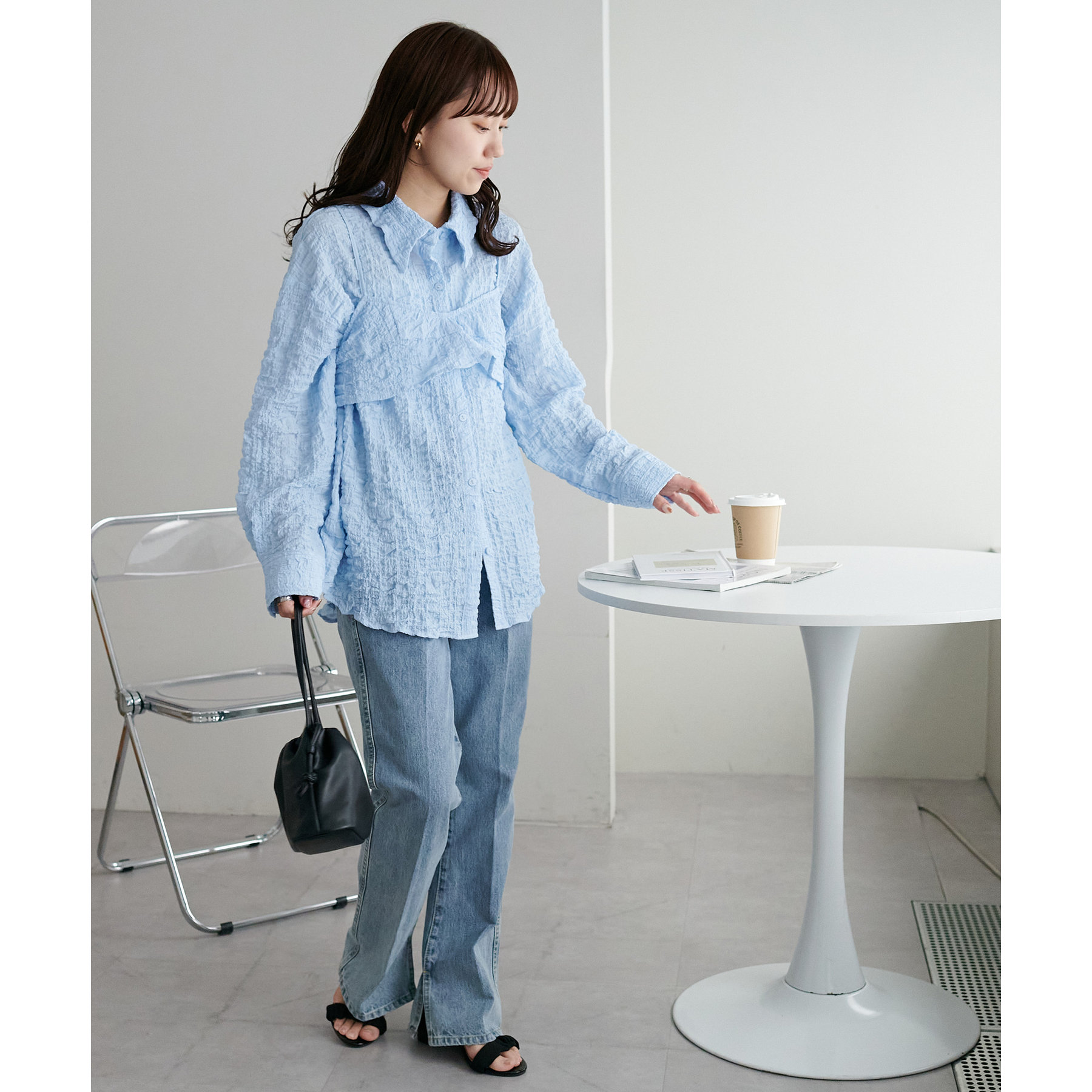 【WEB限定】シャーリング使いビスチェ付シャツ