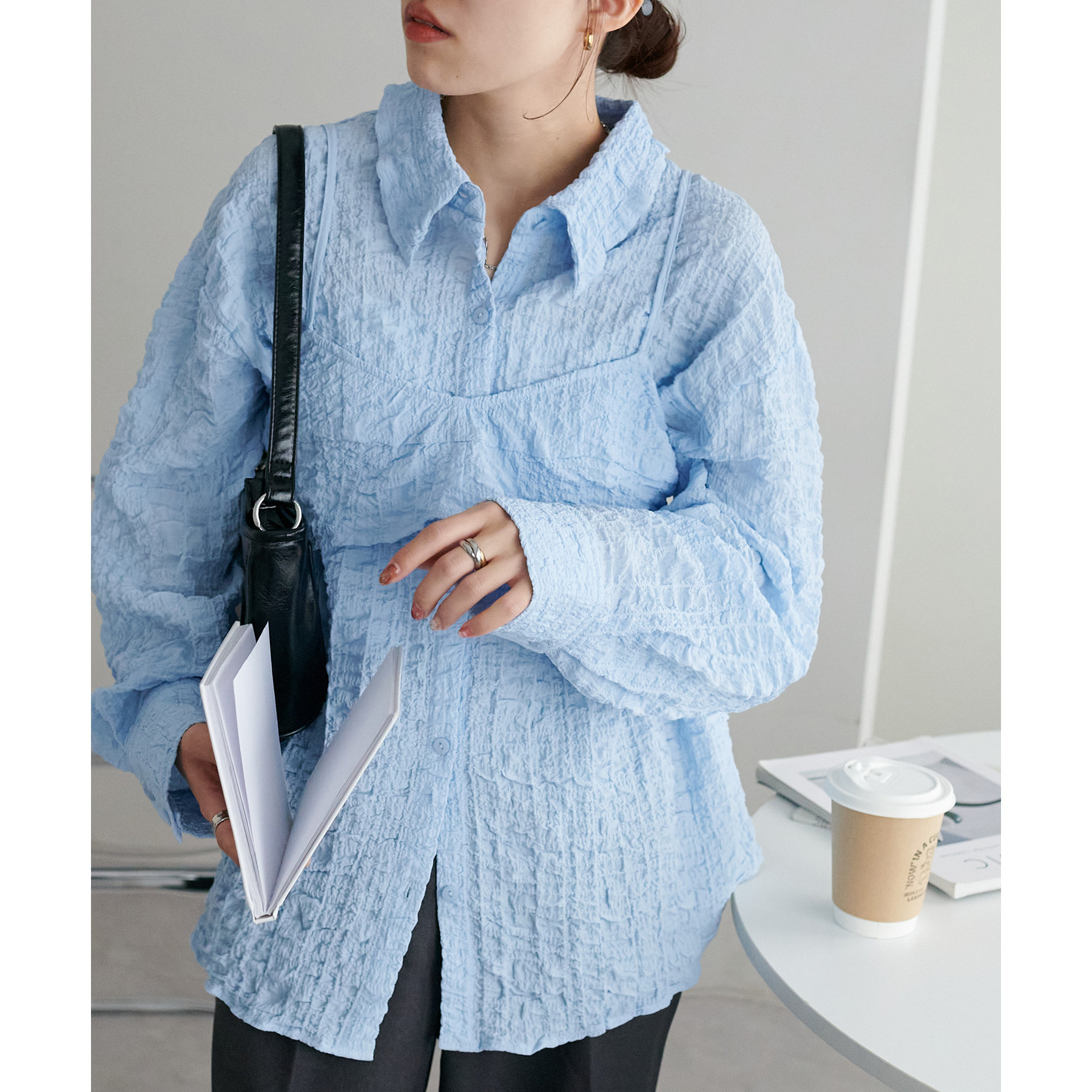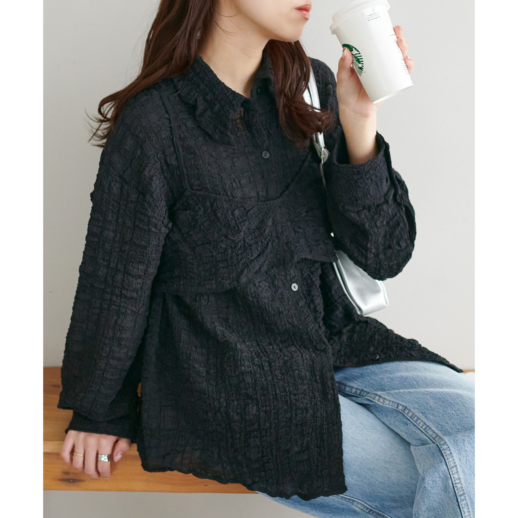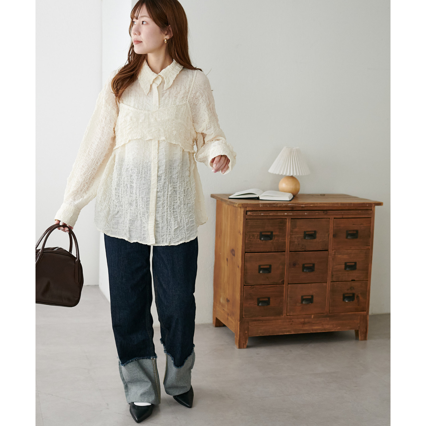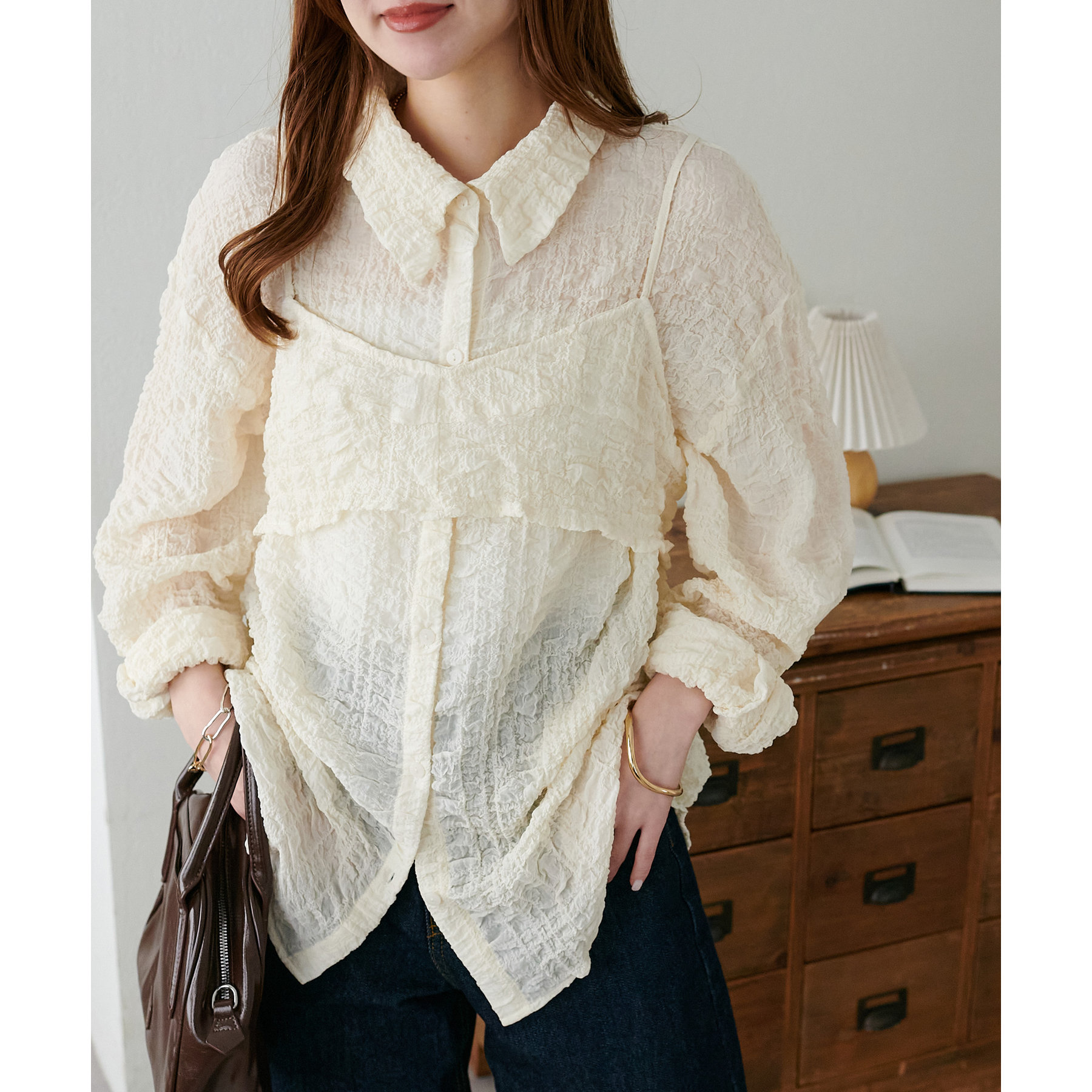 【WEB限定】シャーリング使いビスチェ付シャツ