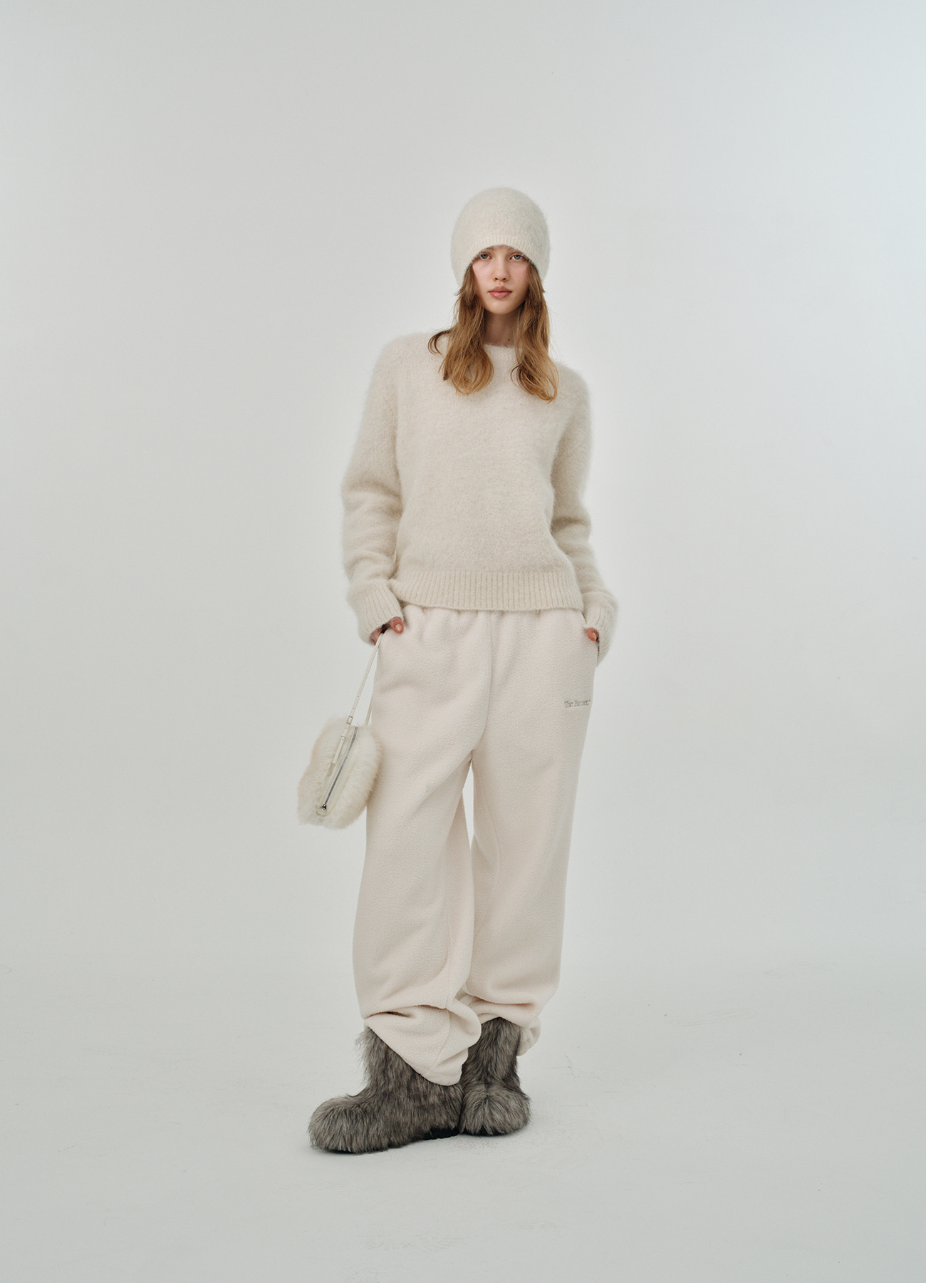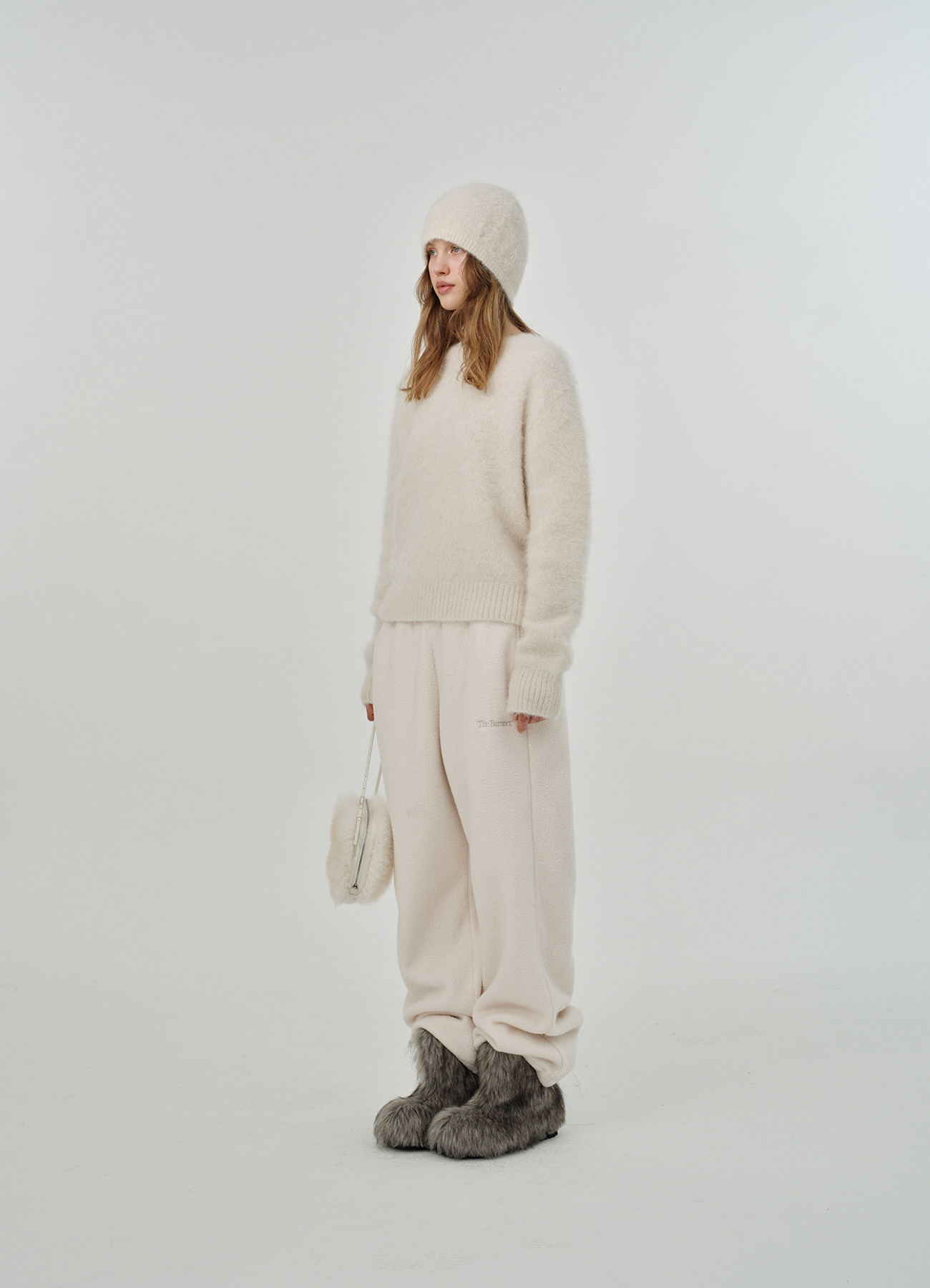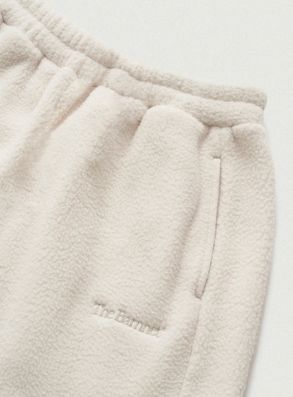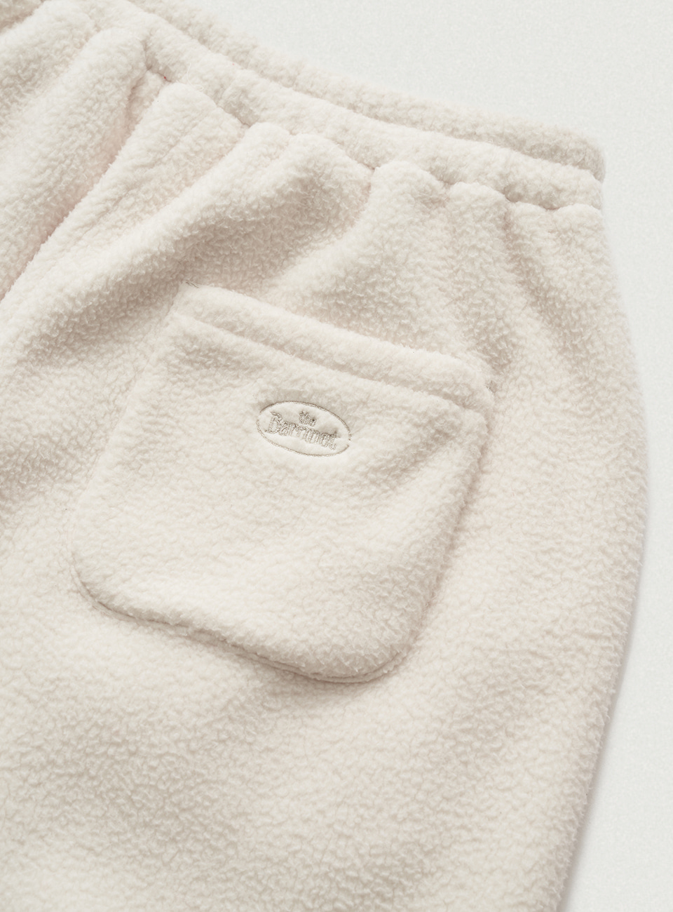 アイボリーカラーの、柔らかなテクスチャーが特徴のポリエステルフリースファブリックを使用。