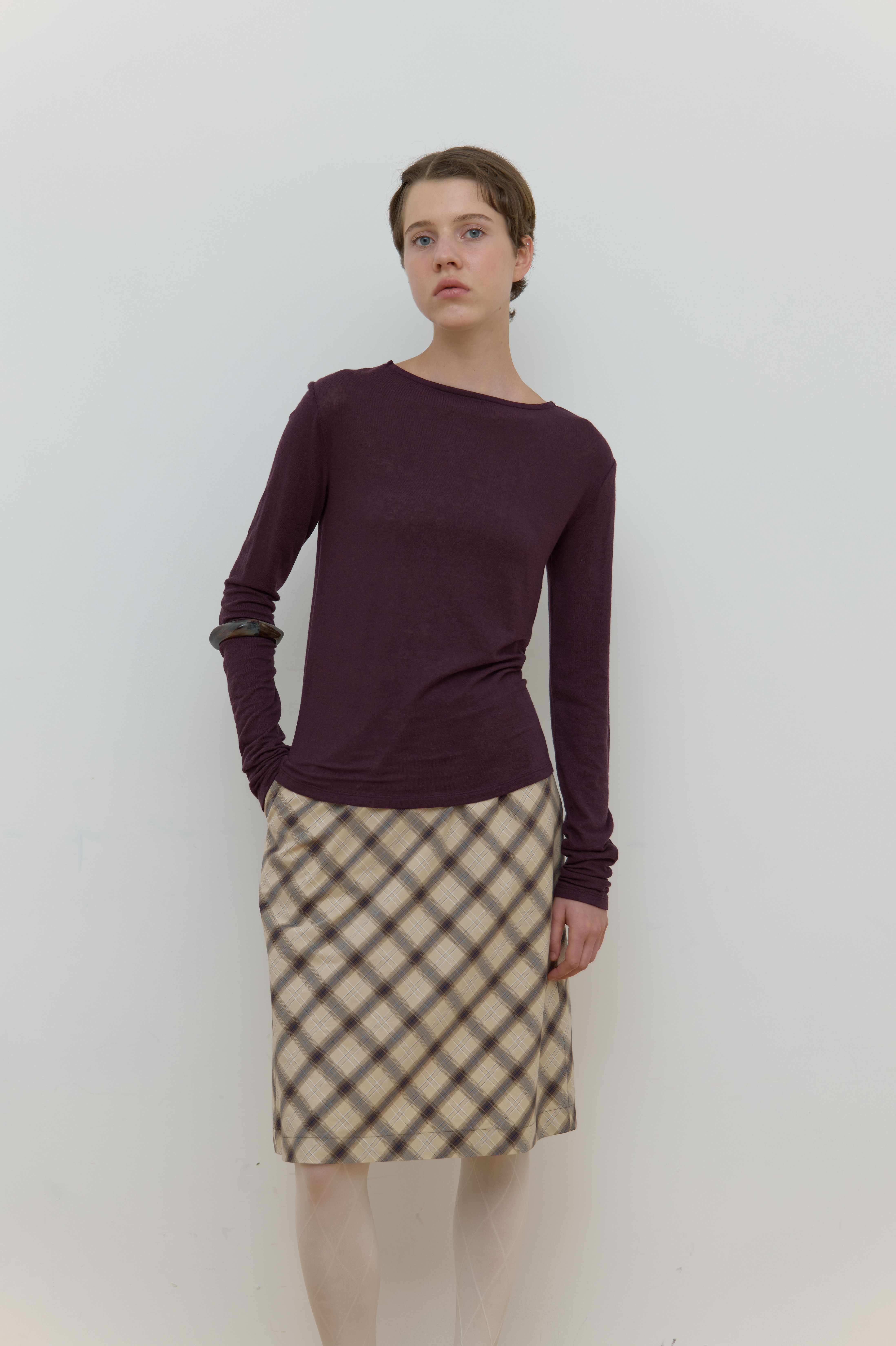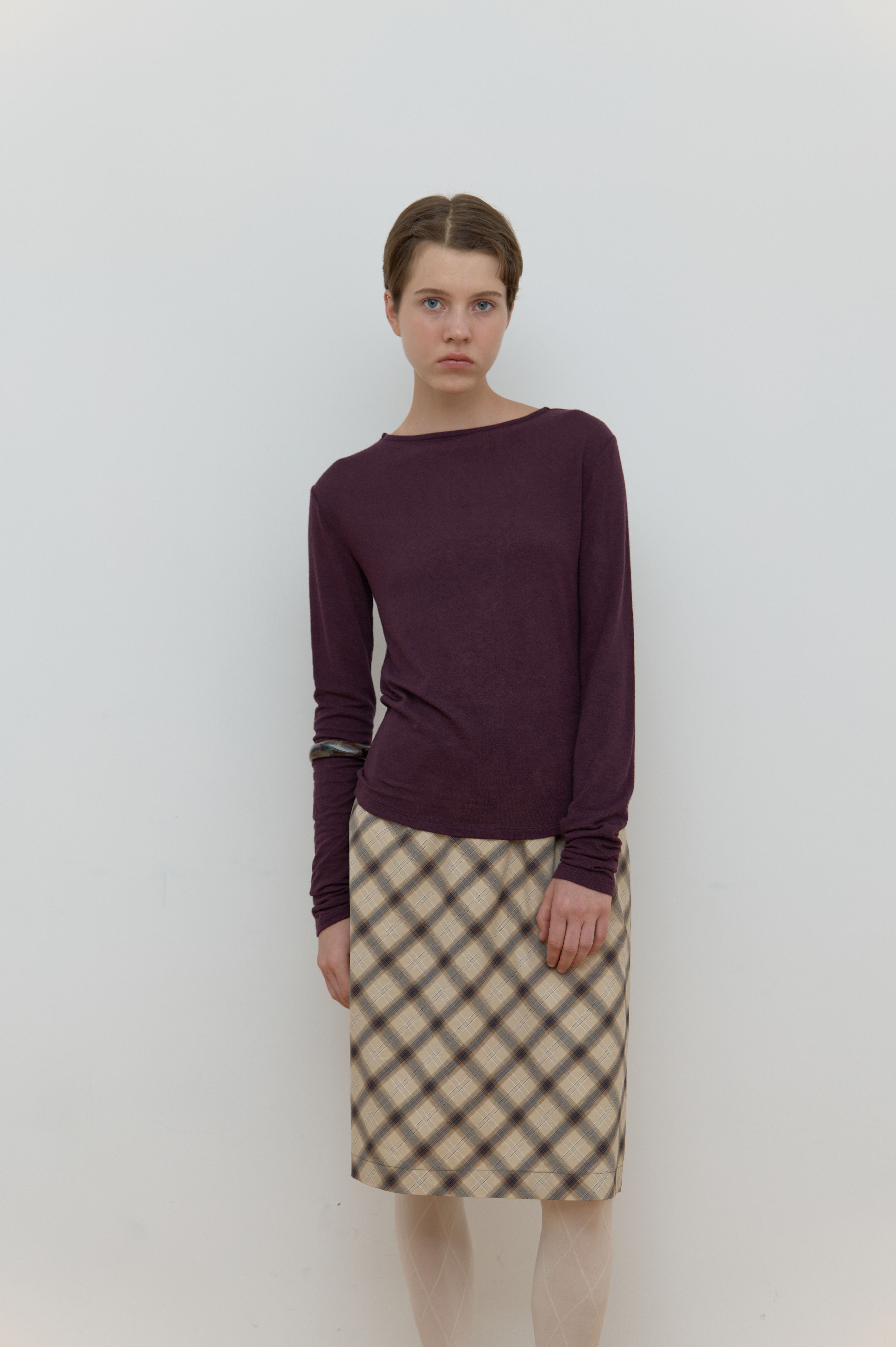 SHEER BOAT NECK TOP_PURPLE