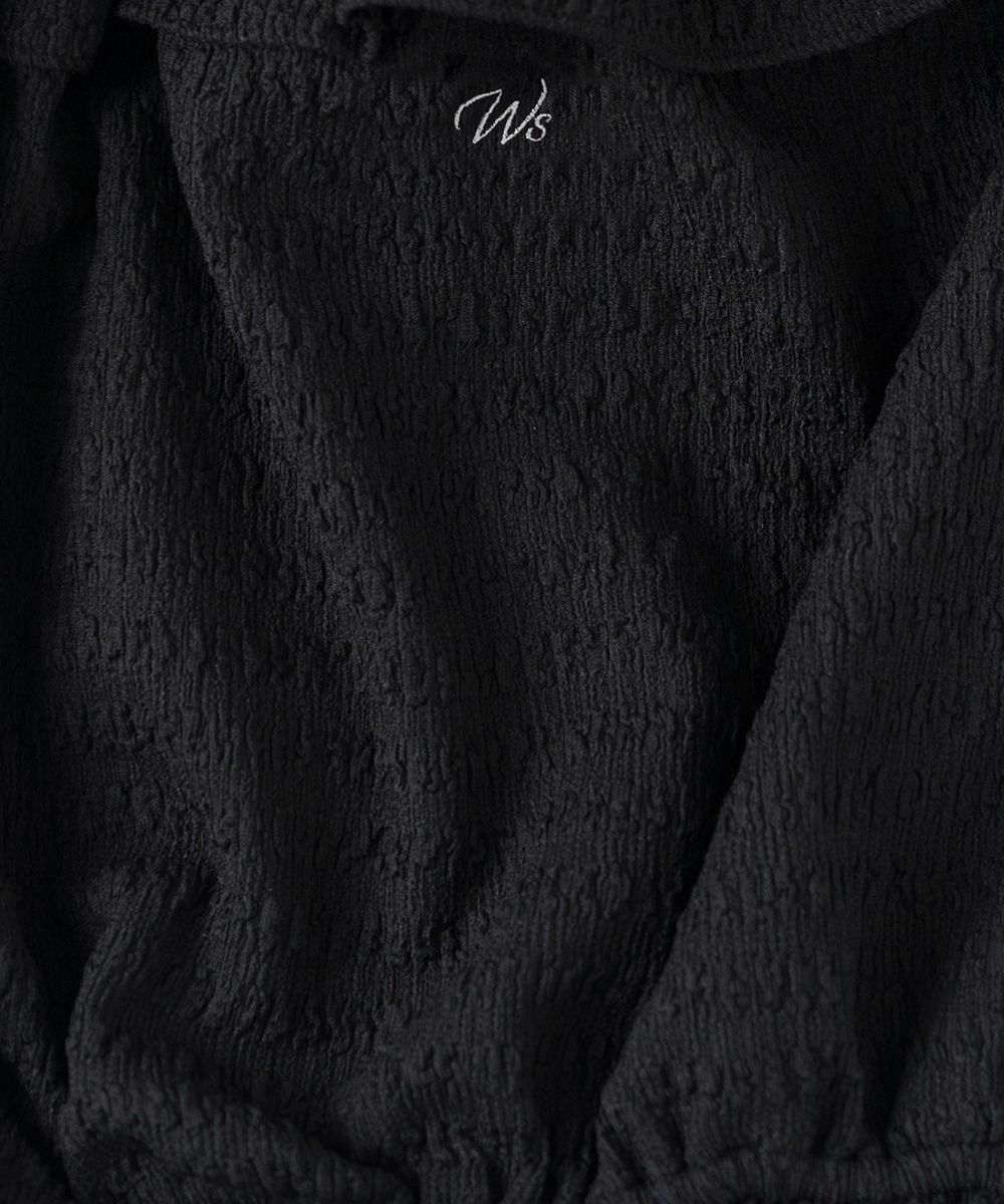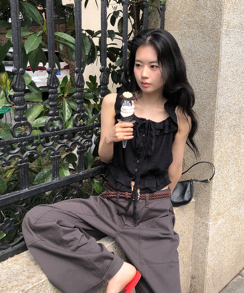 繊細なテクスチャーの生地に、自然なシャーリングとネックラインに沿ったフリルディテールをあしらい、やわらかくフェミニンなムードを演出するスリーブレストップです。