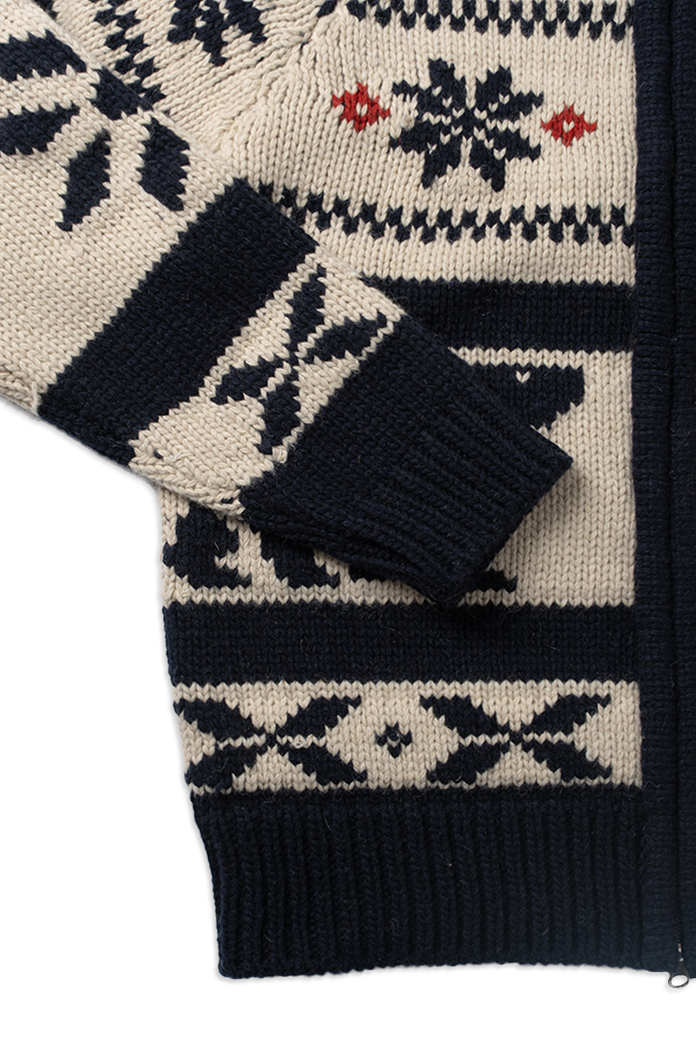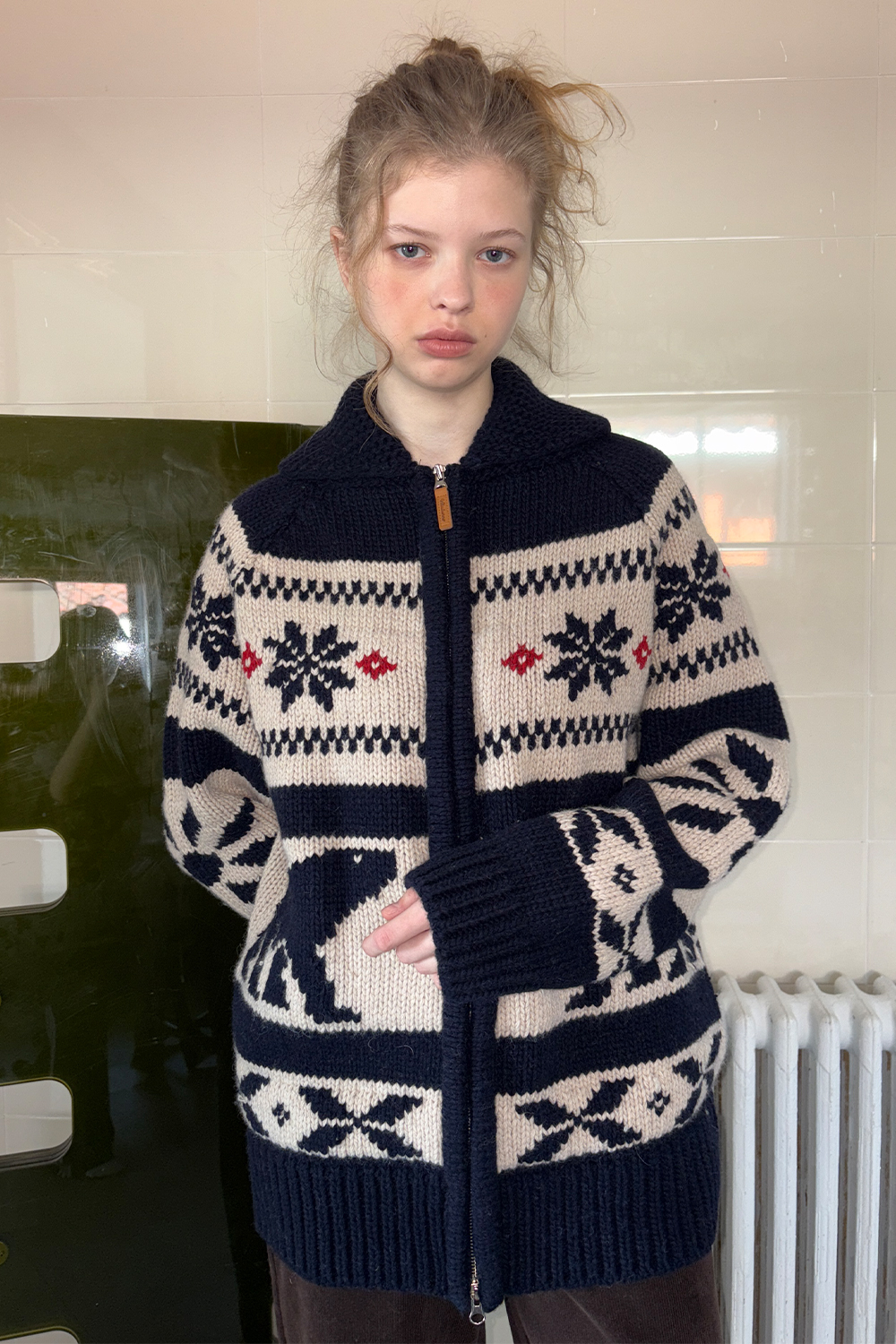 全体的に厚みのある生地で、着用時に自然な形をキープ。ウール混紡素材で編まれており、安定した保温性を保ちます。