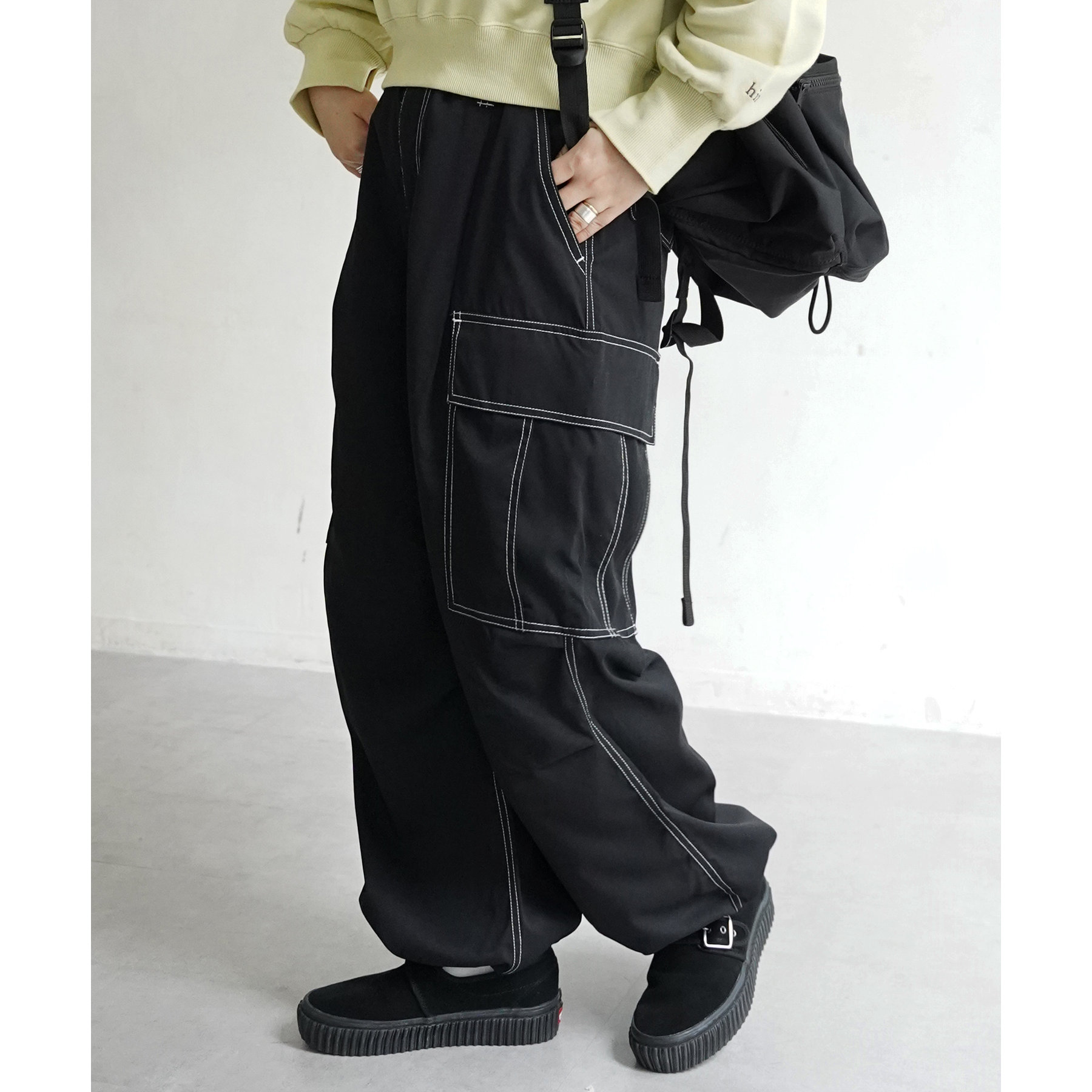 ゆったりした穿き心地のバルーンシルエットでリラクシーな雰囲気を演出してくれるカーゴパンツ。