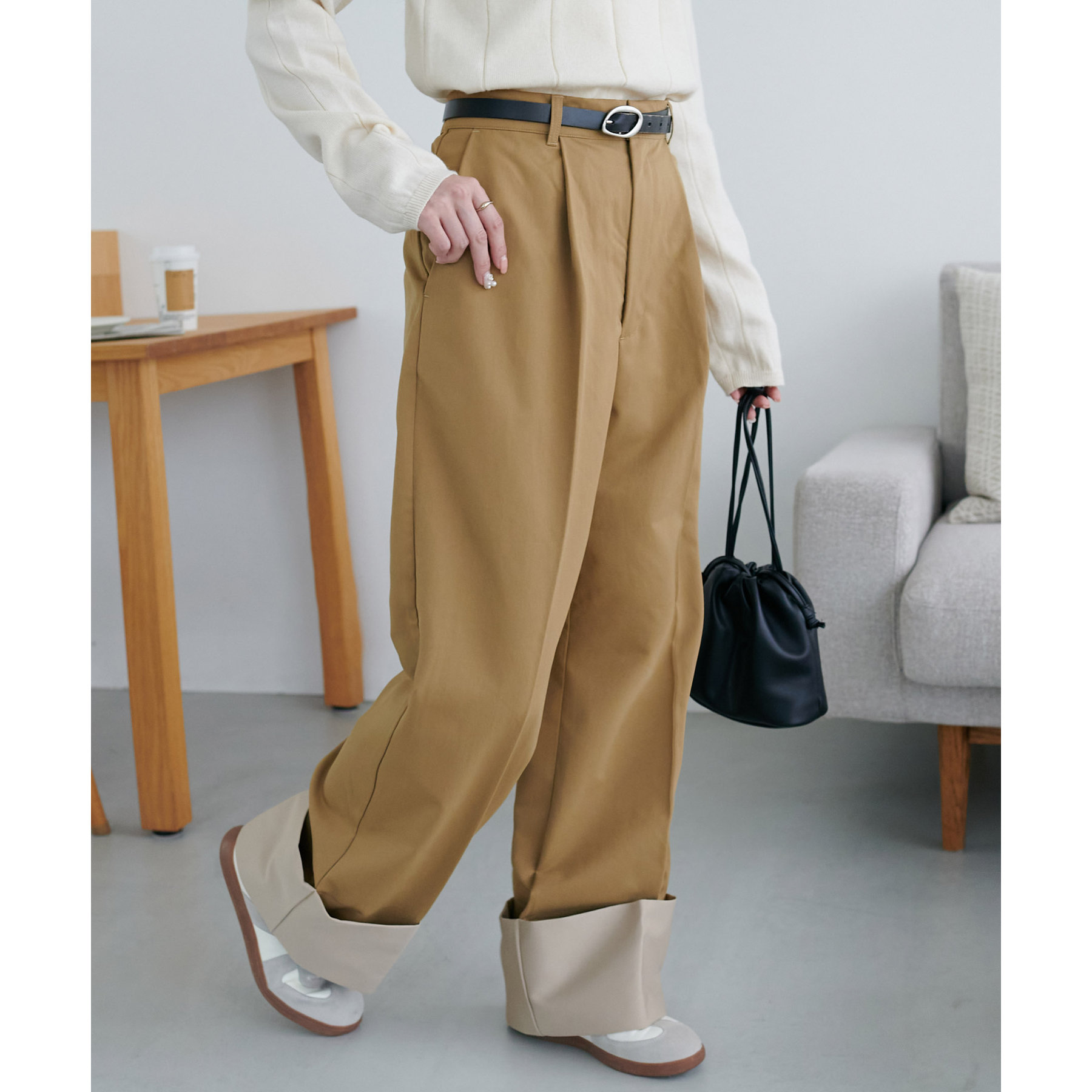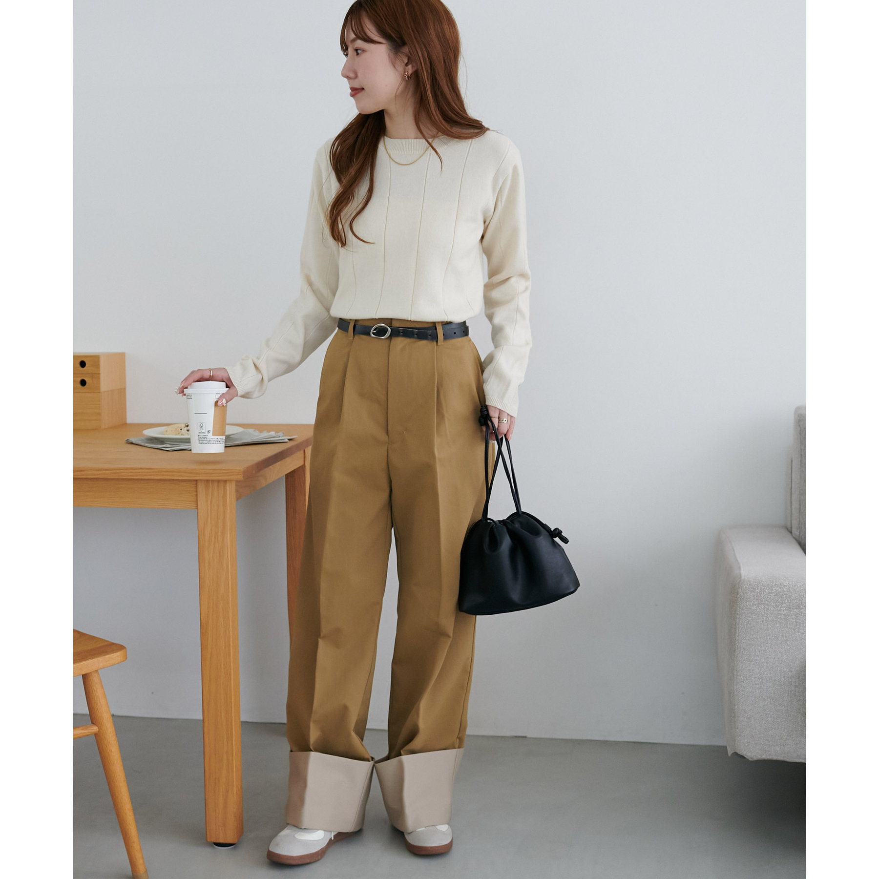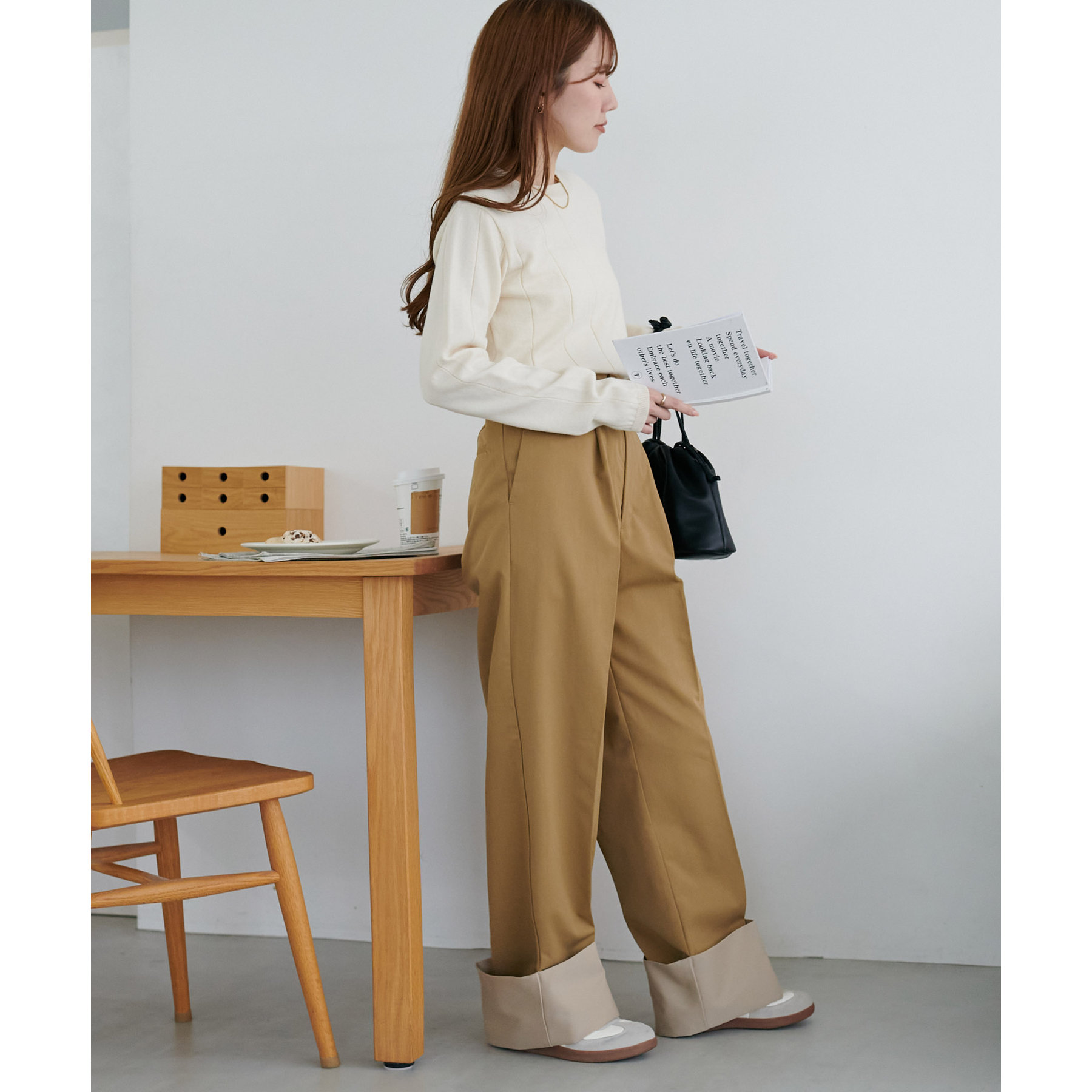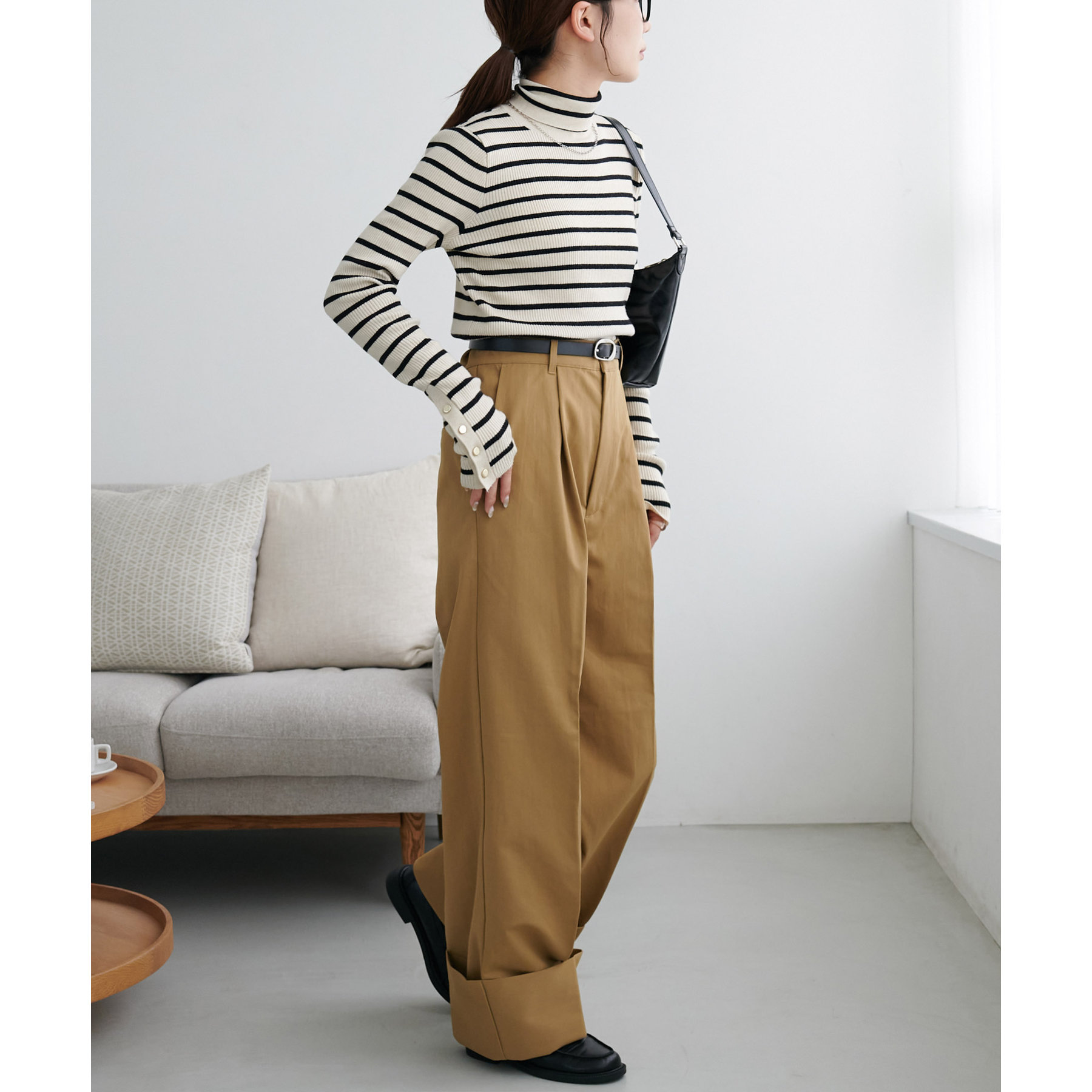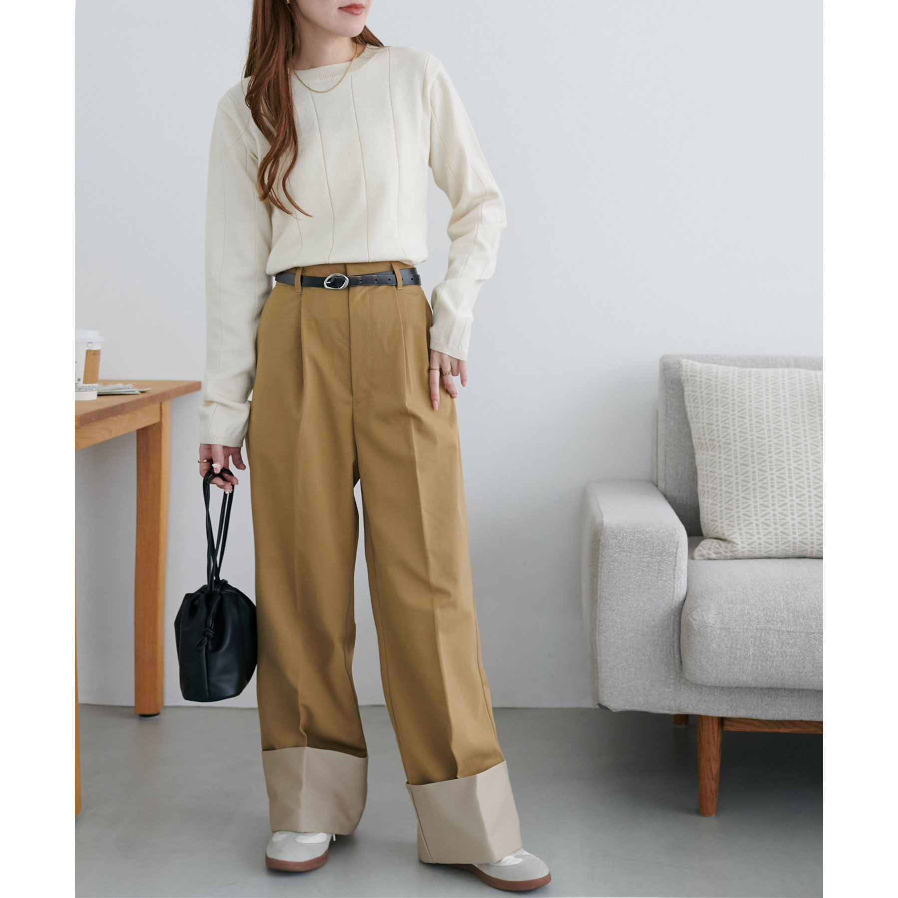 カジュアルになりがちなチノパンツですが、ロールアップデザインにより大人な着こなしがお楽しみいただけます!