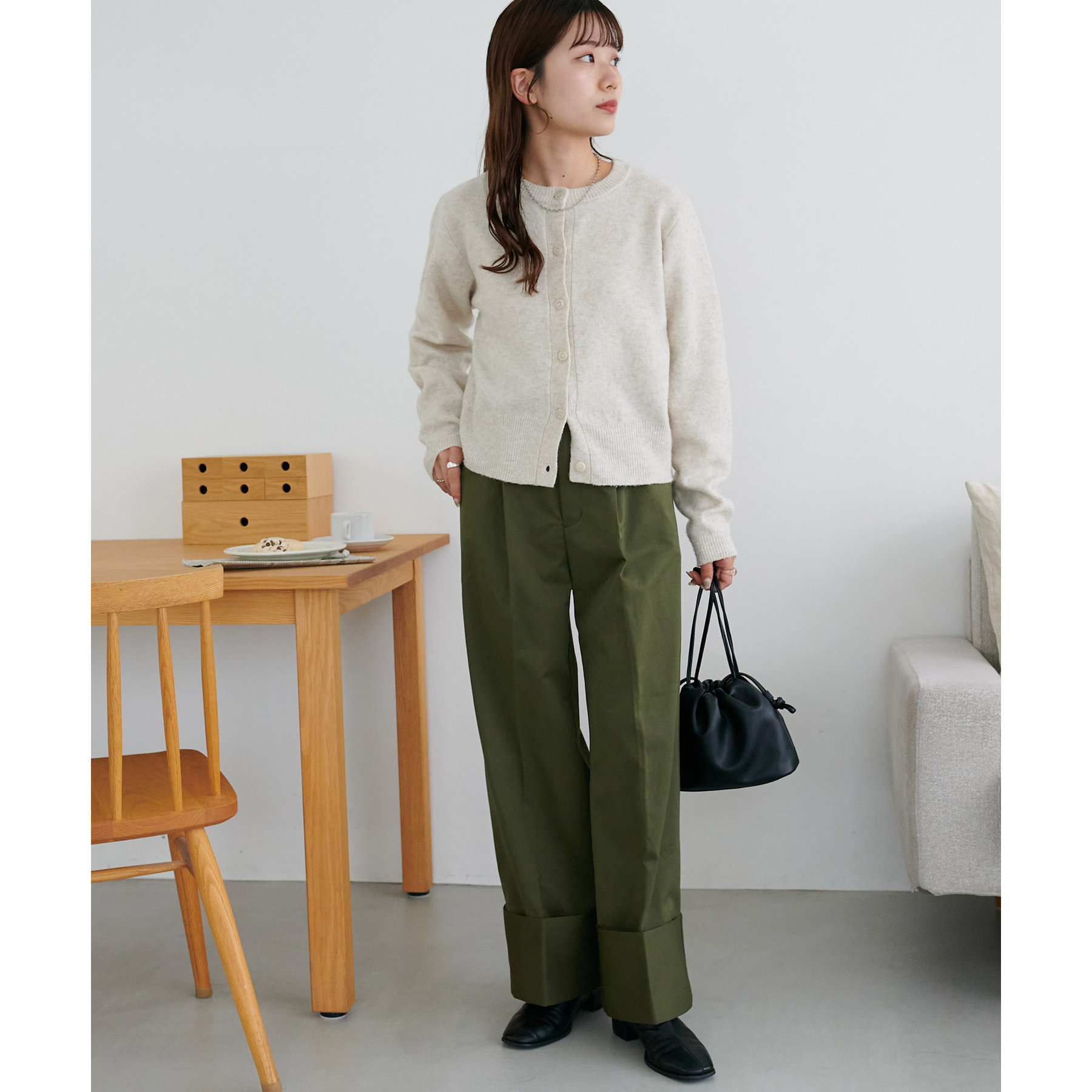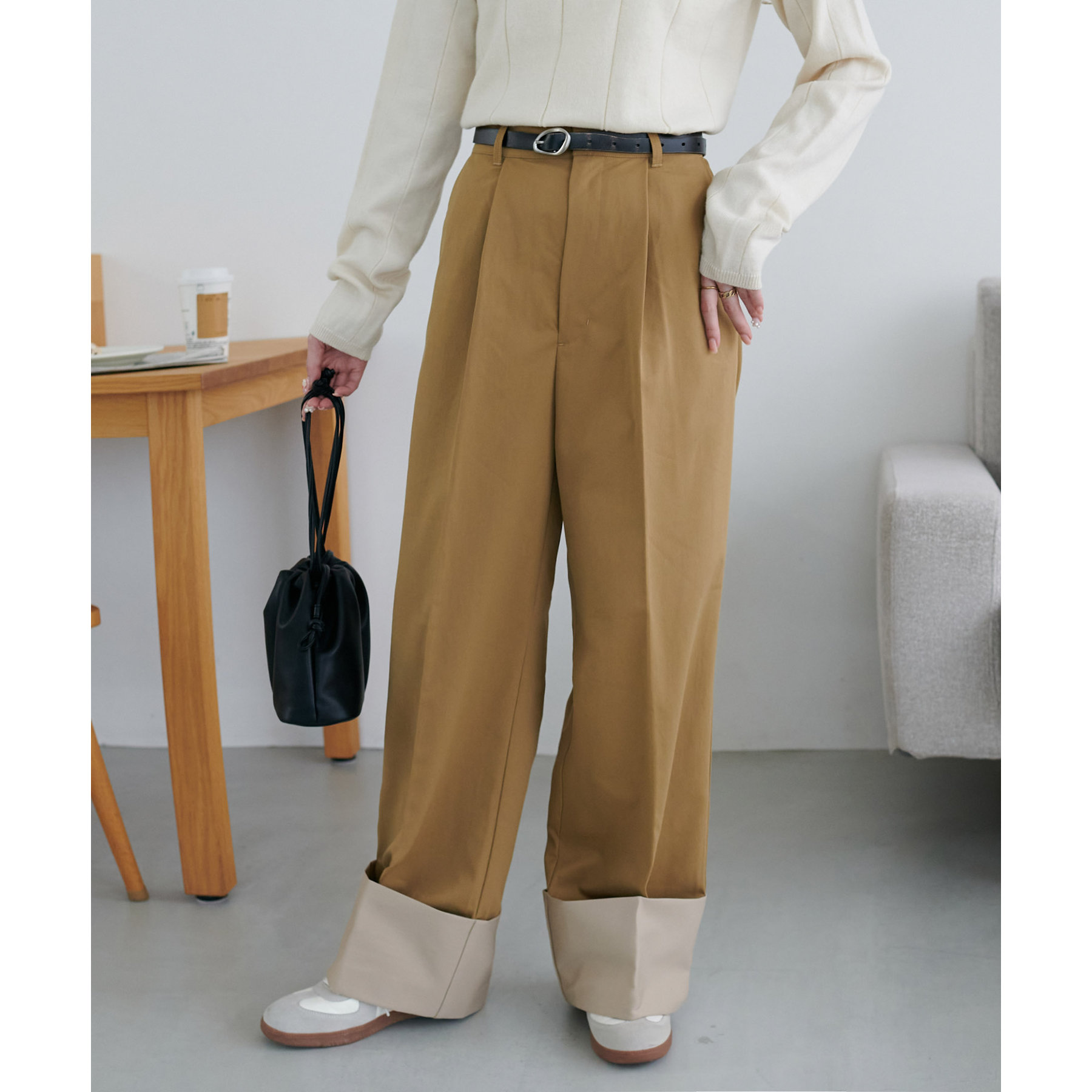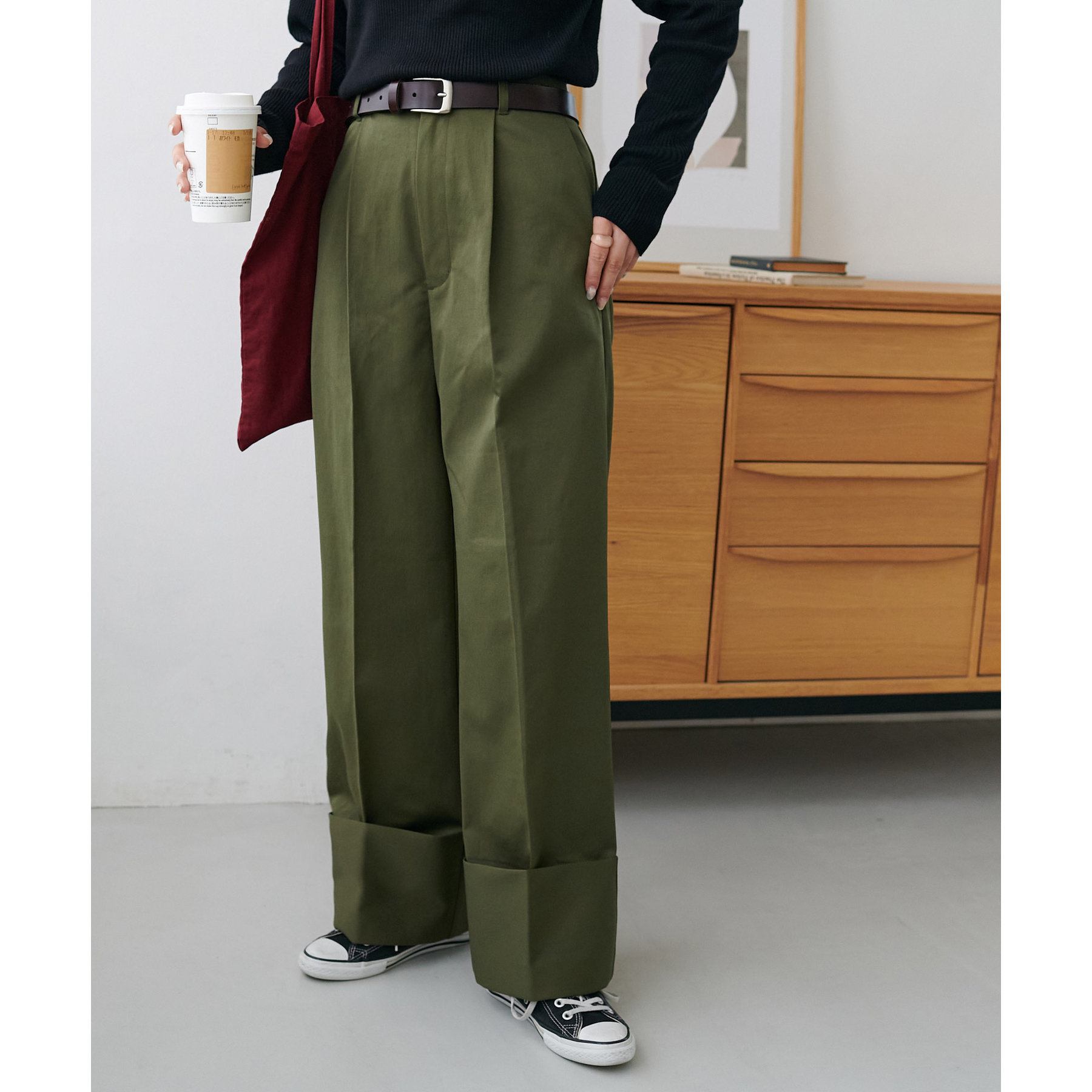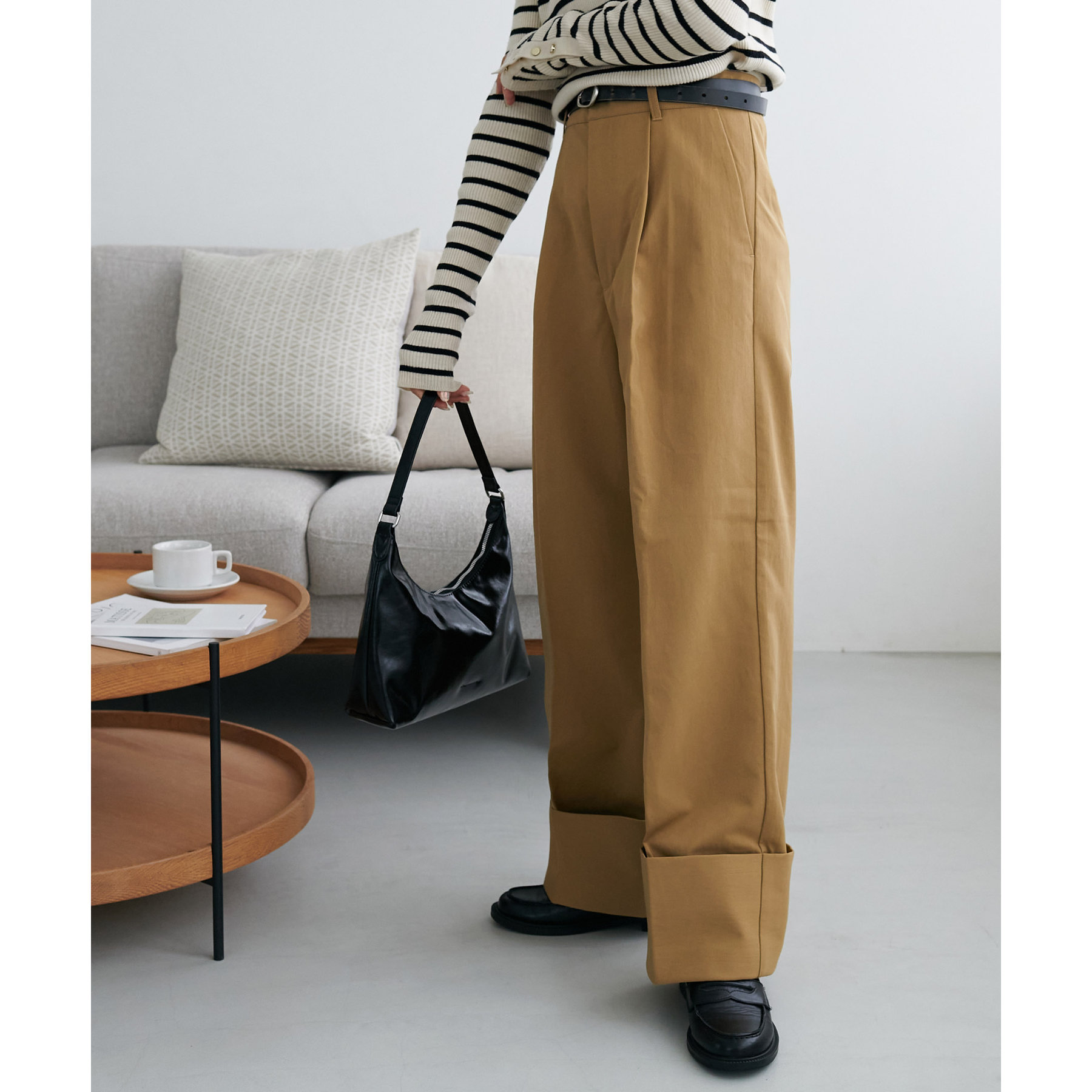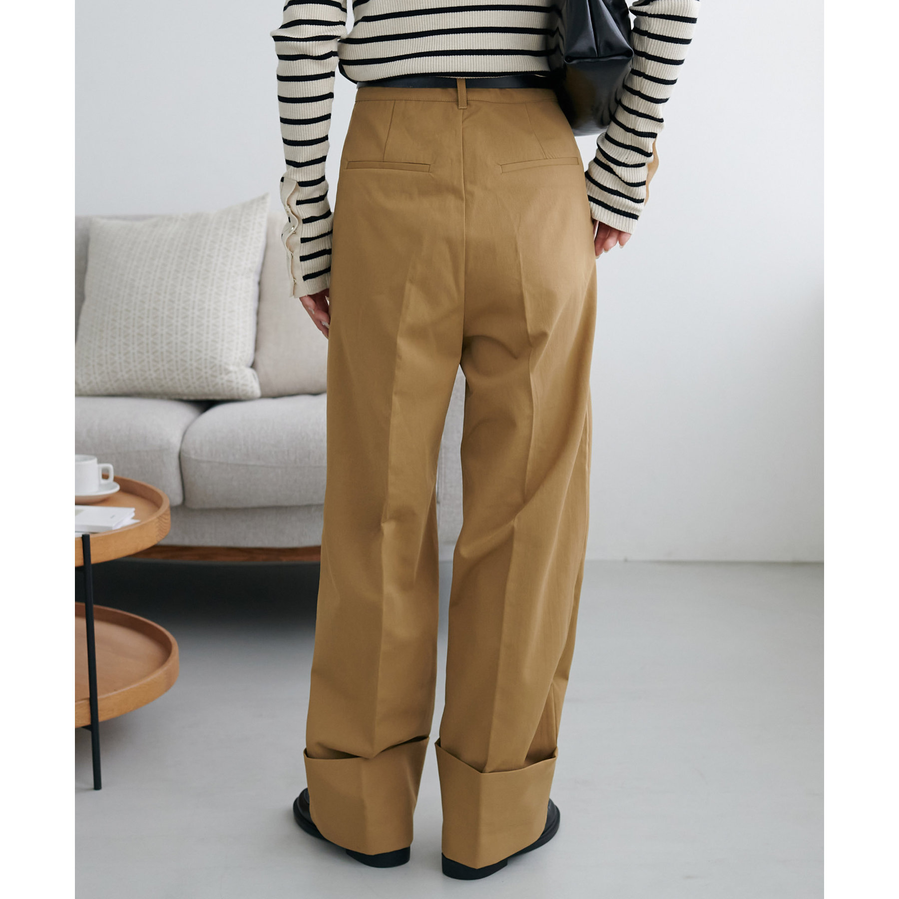 カジュアルになりがちなチノパンツですが、ロールアップデザインにより大人な着こなしがお楽しみいただけます!