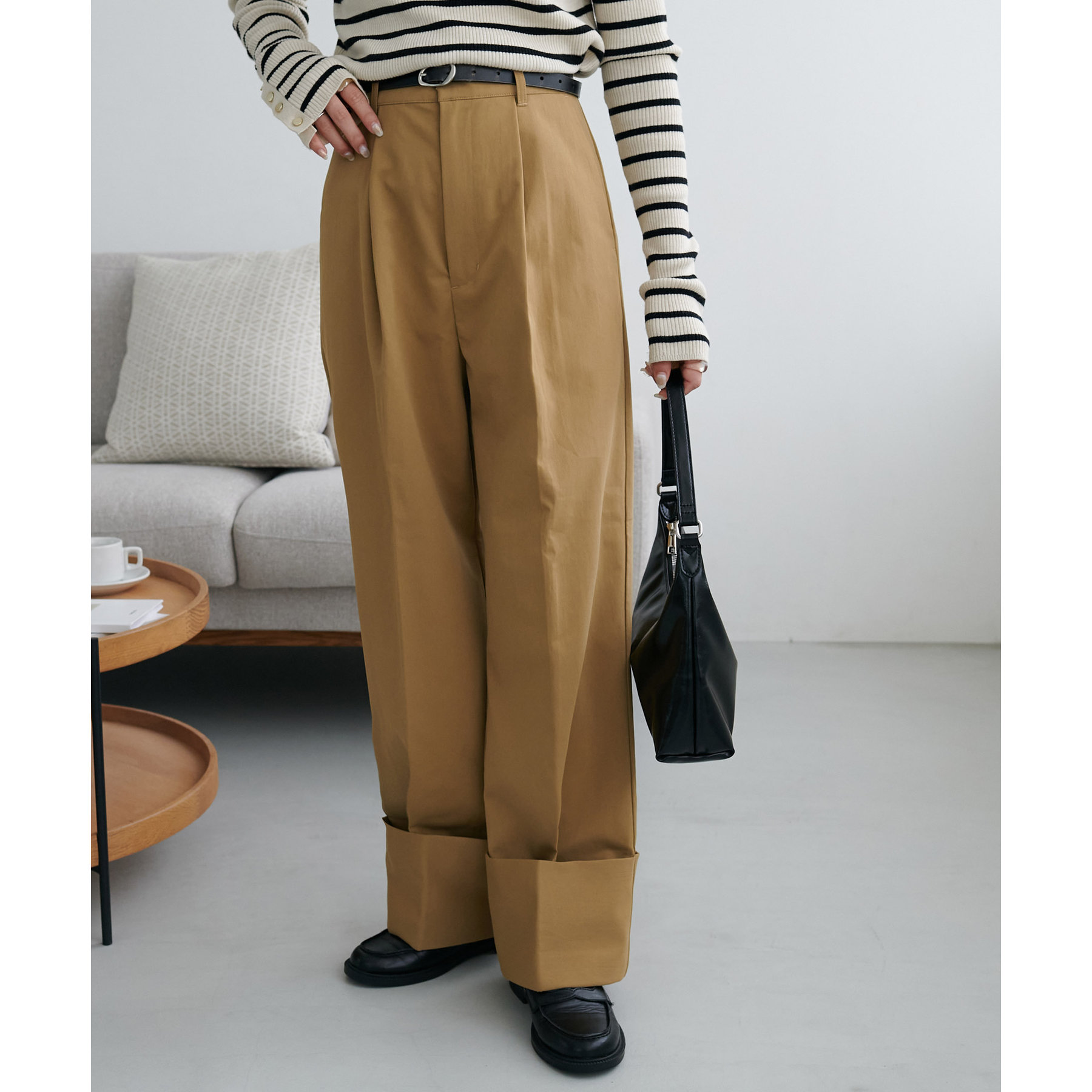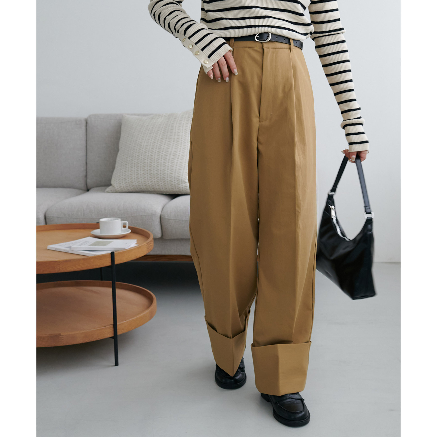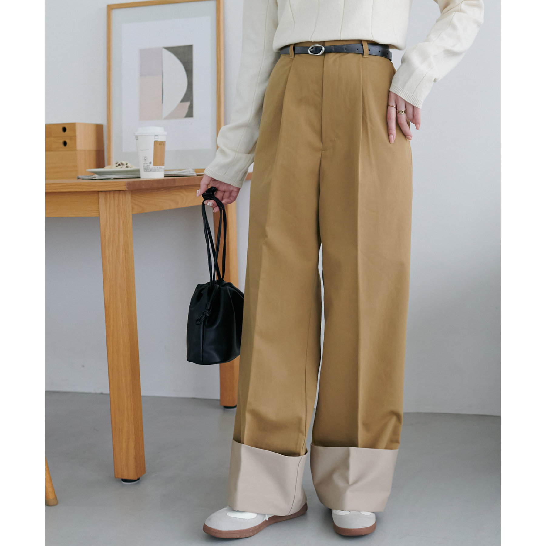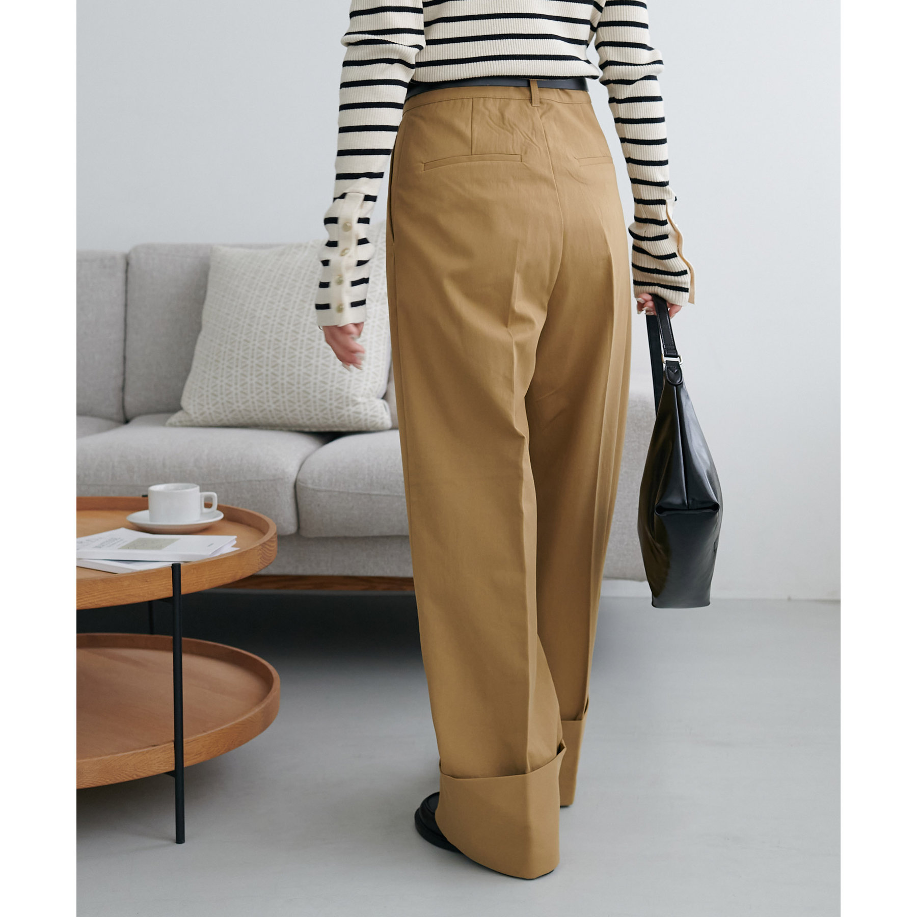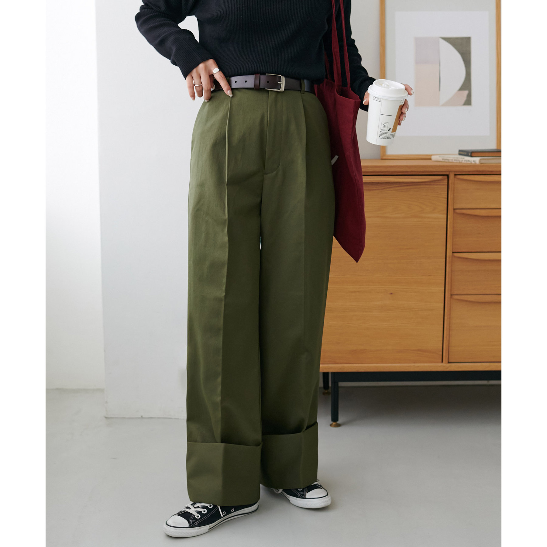 カジュアルになりがちなチノパンツですが、ロールアップデザインにより大人な着こなしがお楽しみいただけます!
