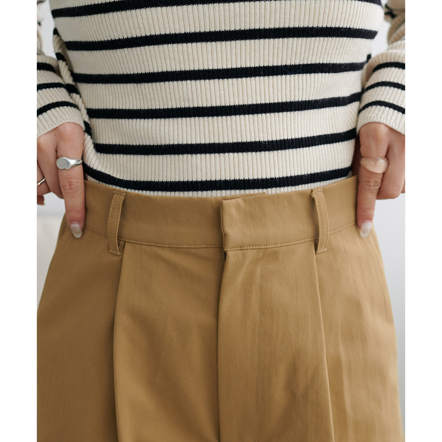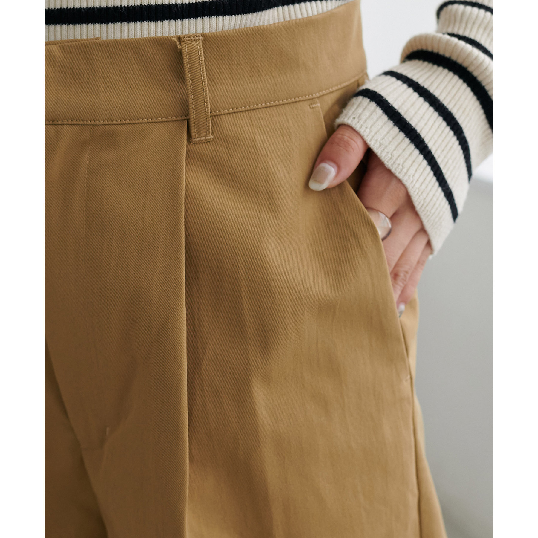程よいゆとりがありつつも、センタープレスが施されており縦ラインが強調されスタイルアップも叶います♪