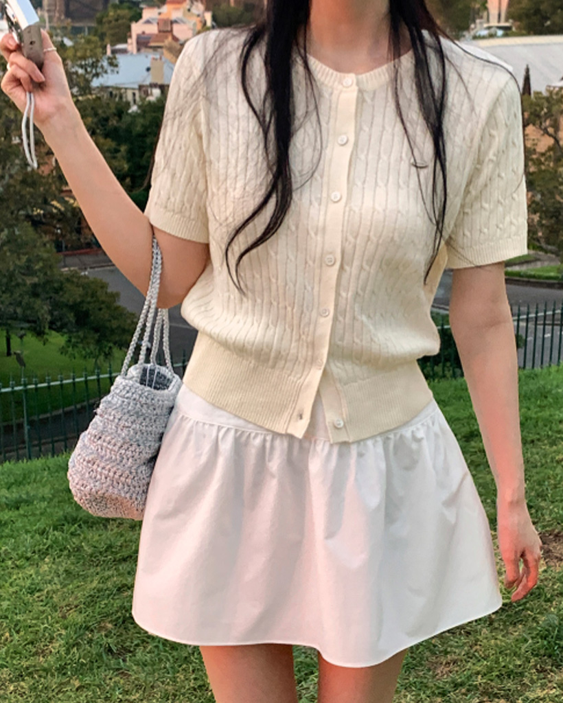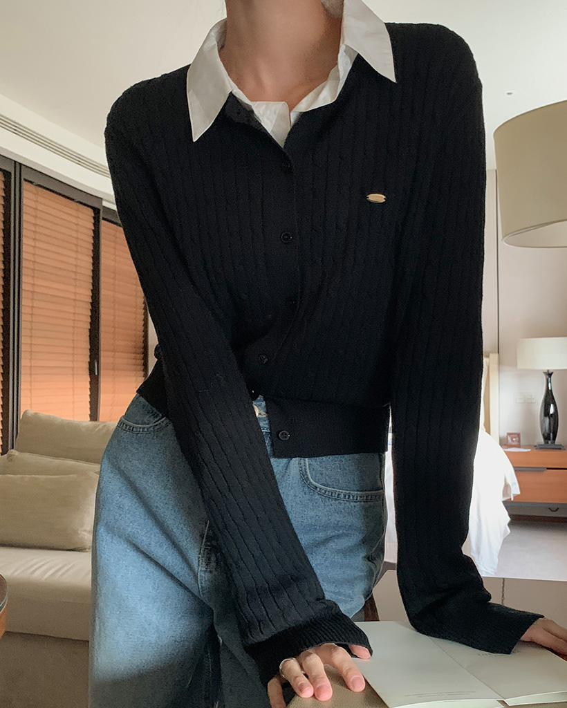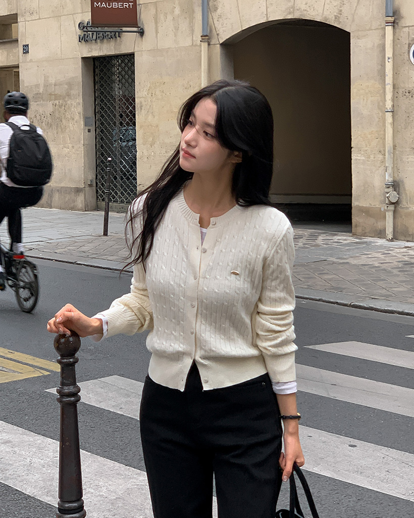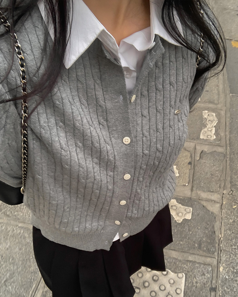 [made] Premium cotton cable round neck cardigan