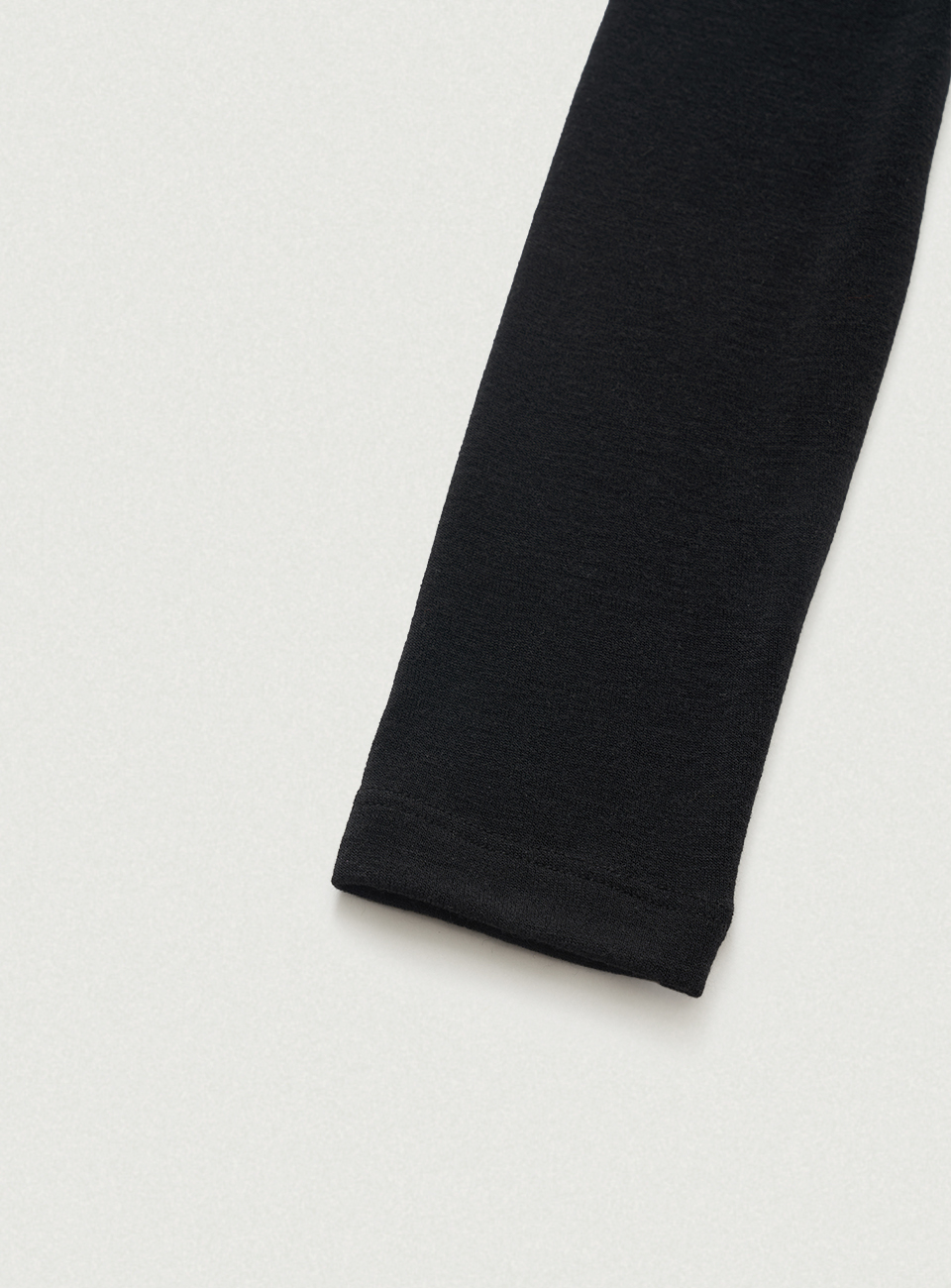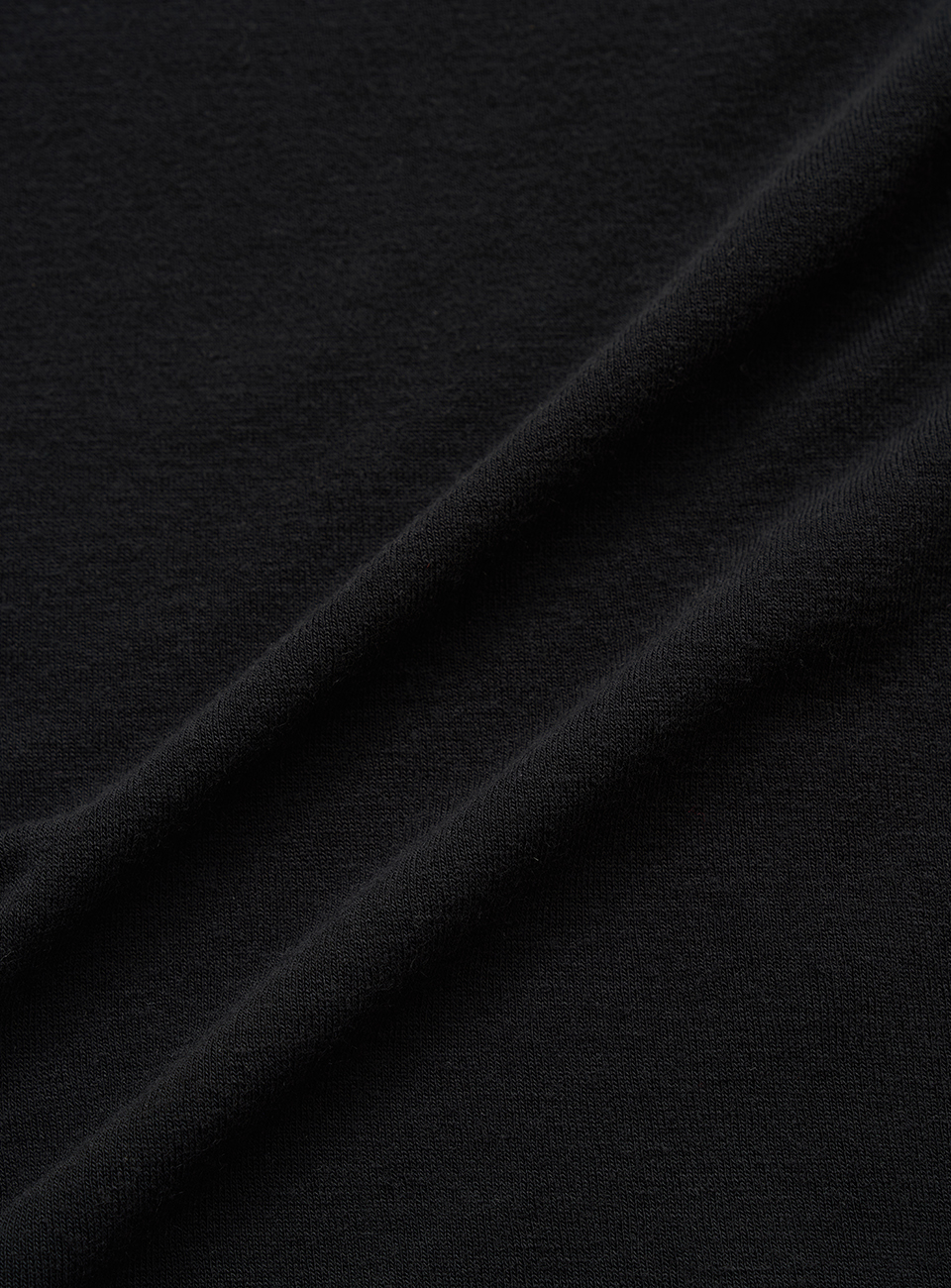 ブラックカラーで、柔らかくぬくもりのあるテクスチャーが特徴のレーヨン混紡ファブリック。