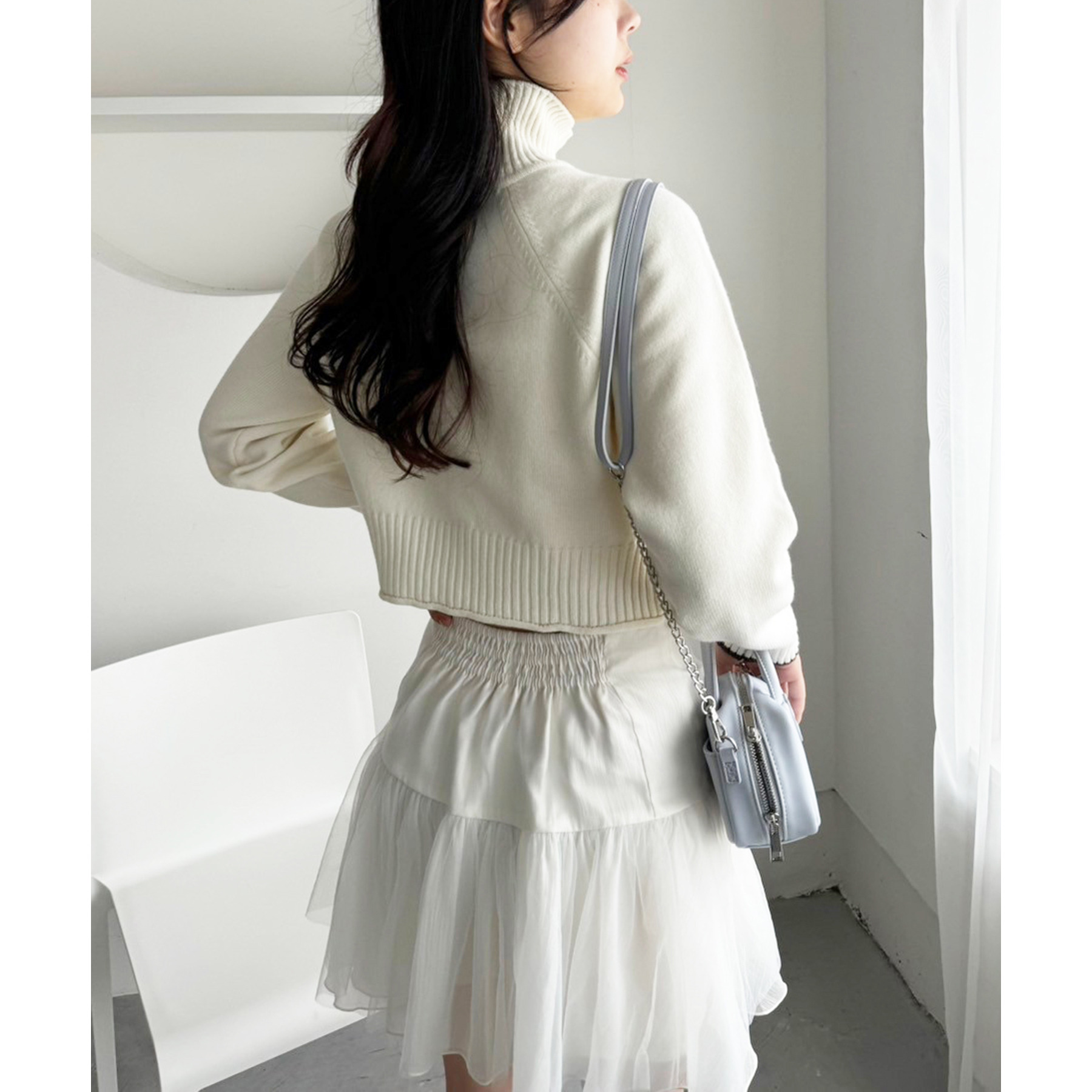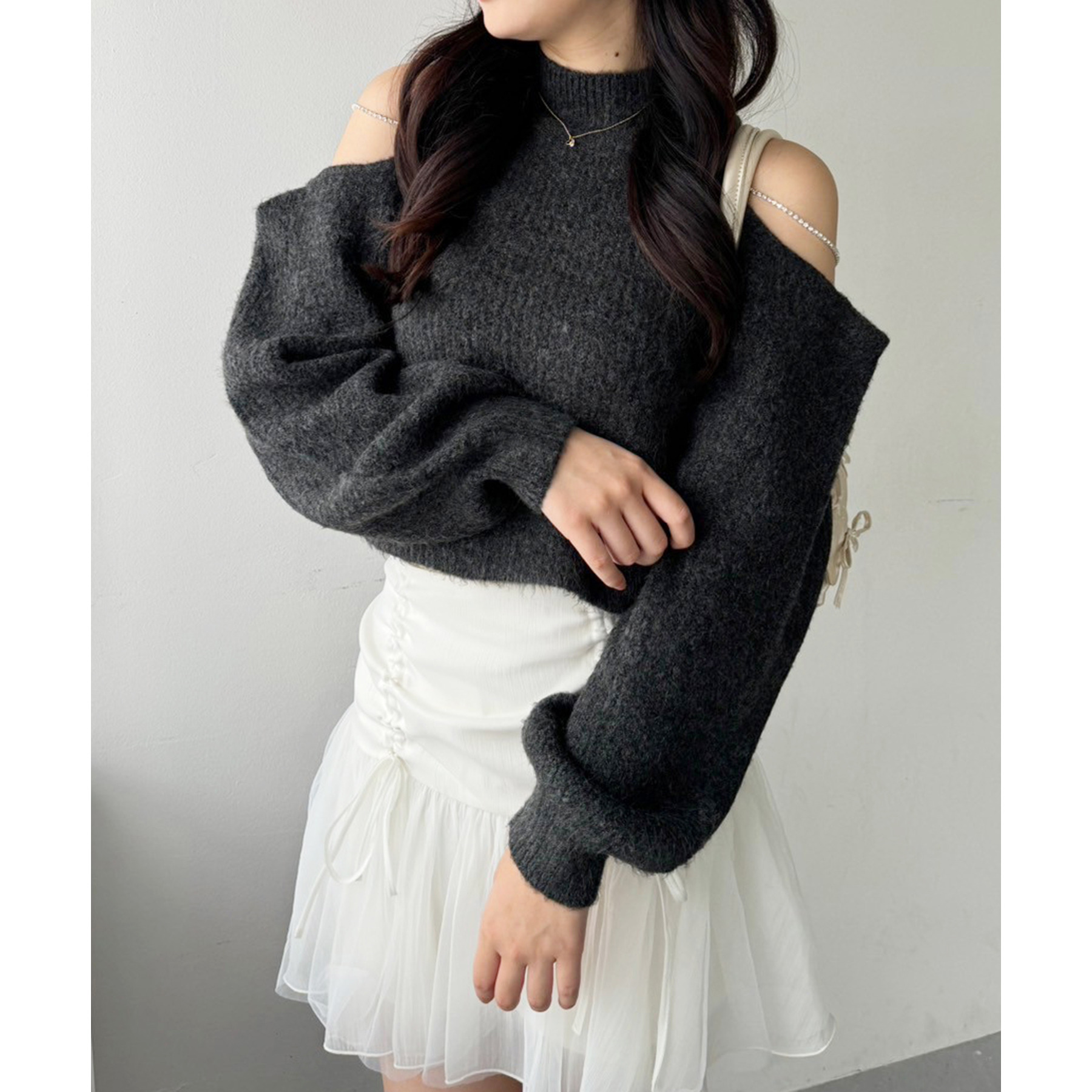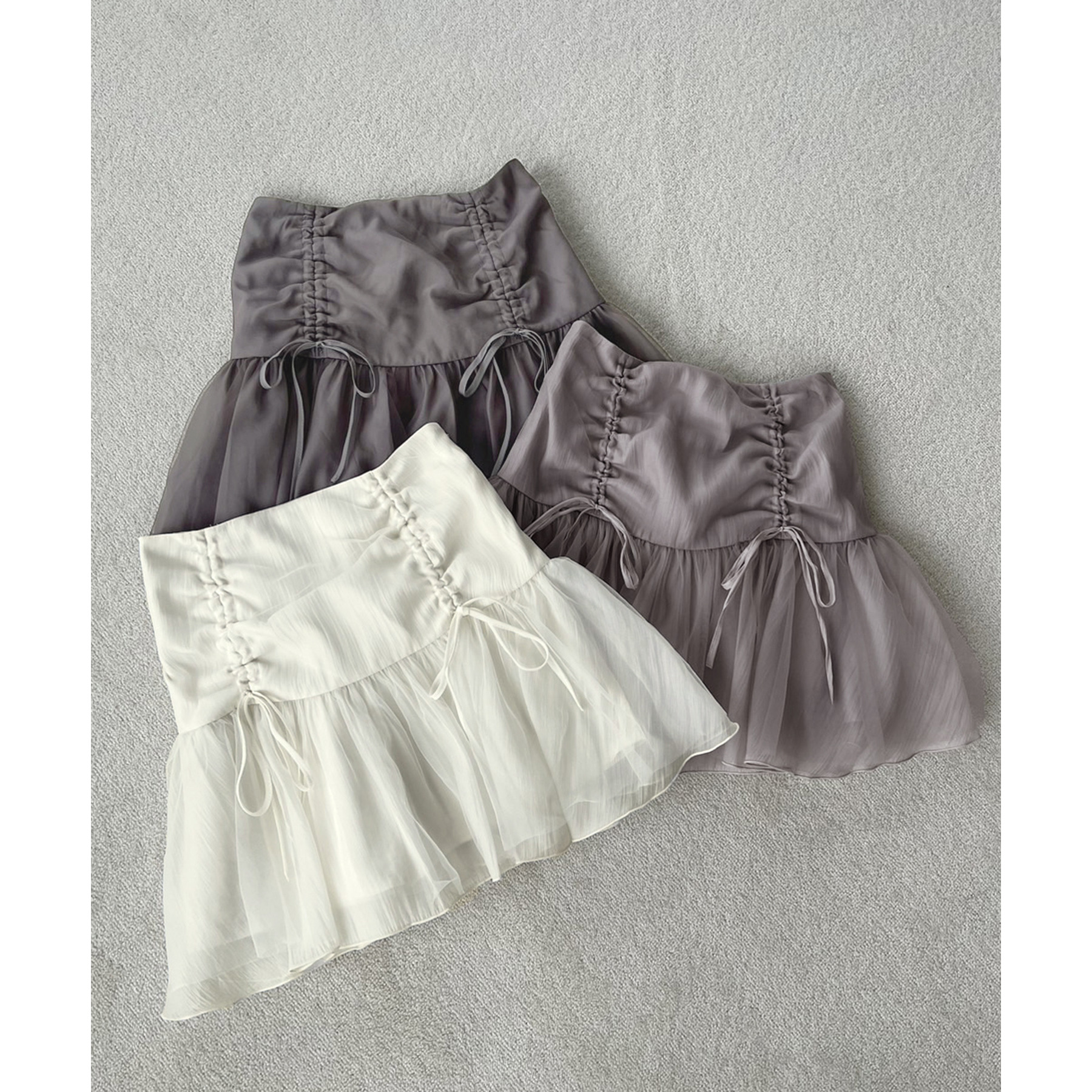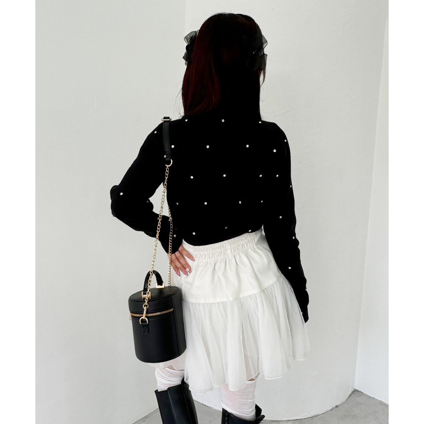 柔らかいチュール素材で動くたびに揺れて女性らしさもプラス。