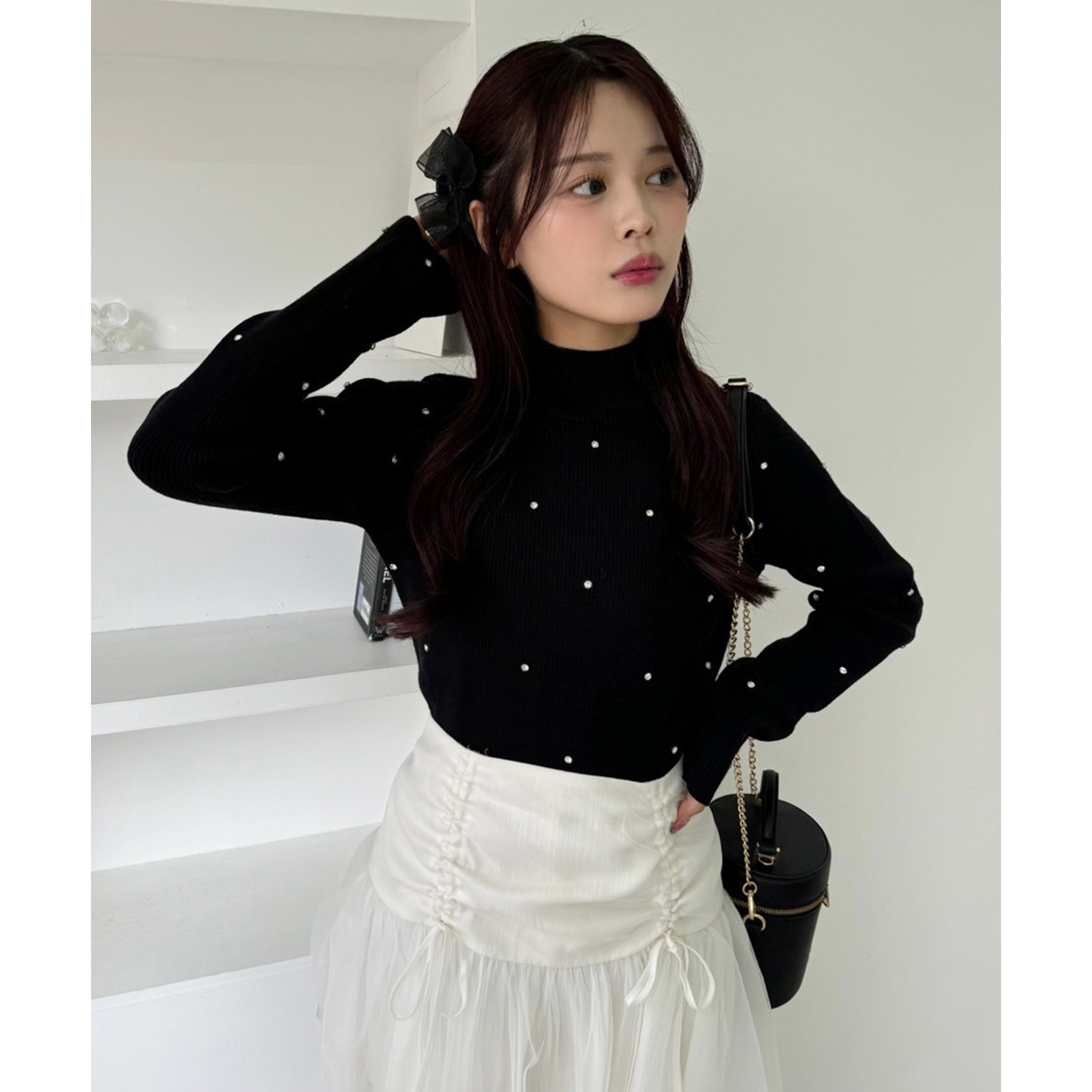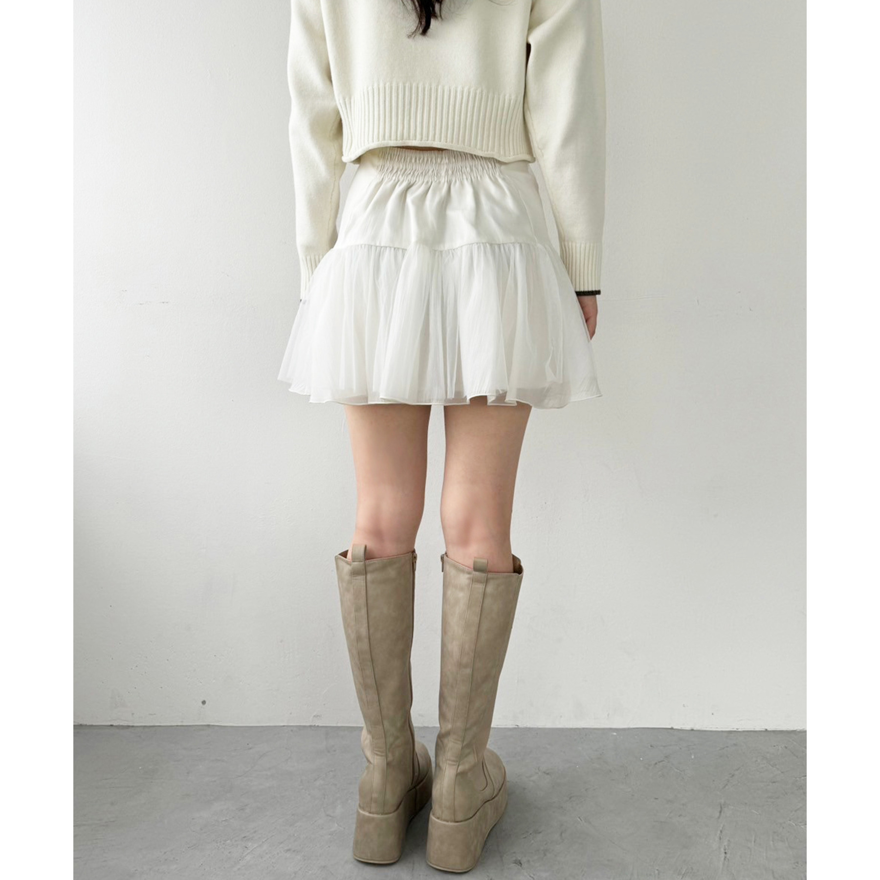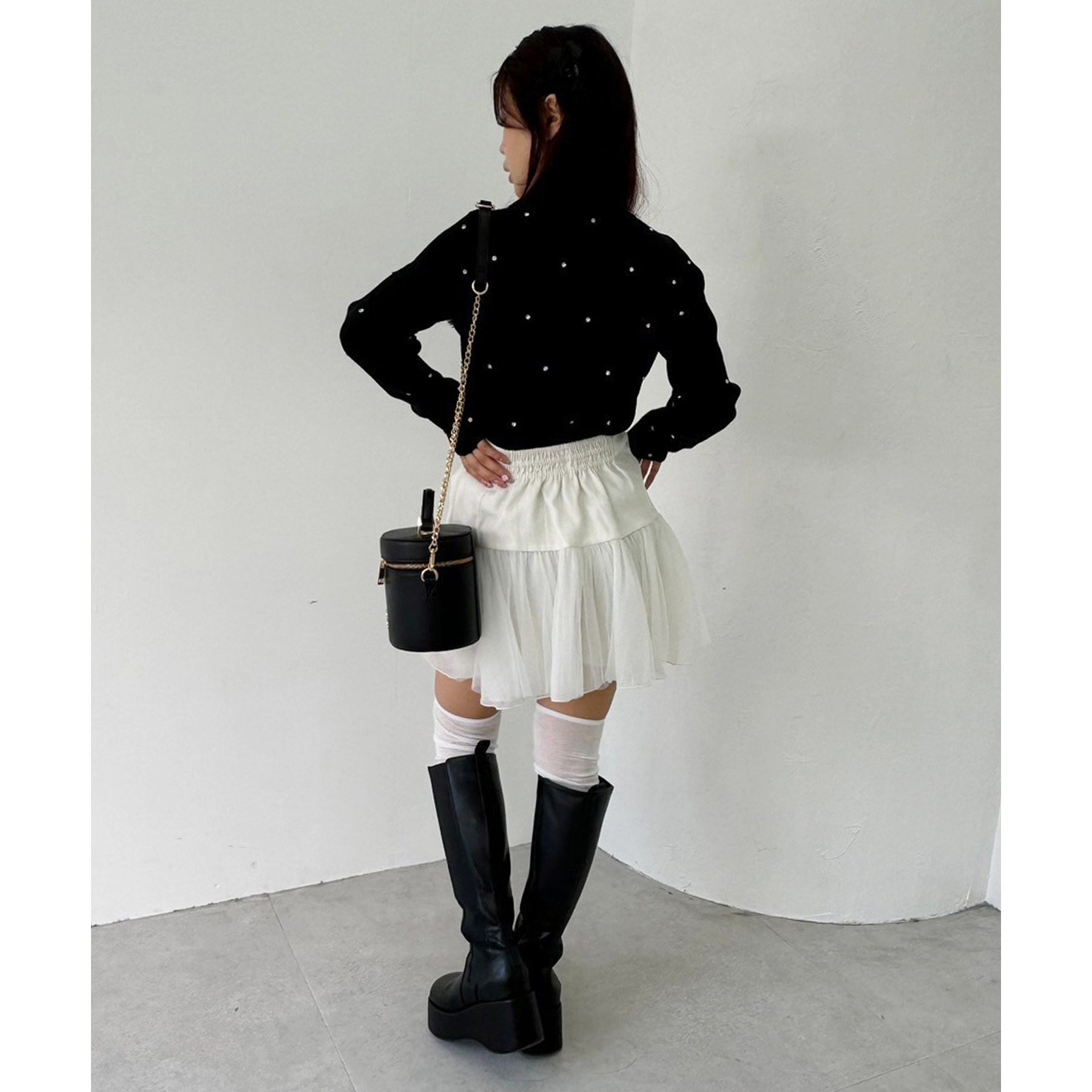 柔らかいチュール素材で動くたびに揺れて女性らしさもプラス。