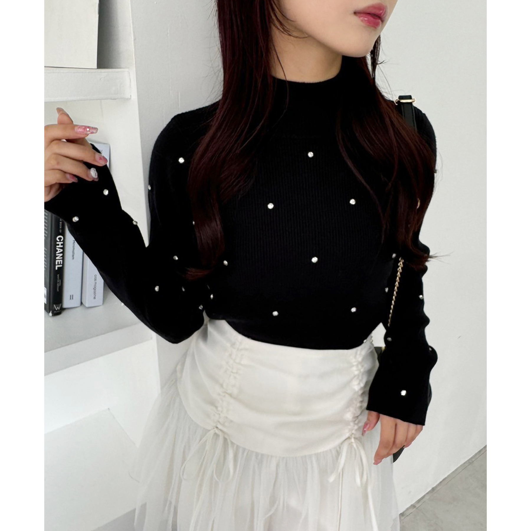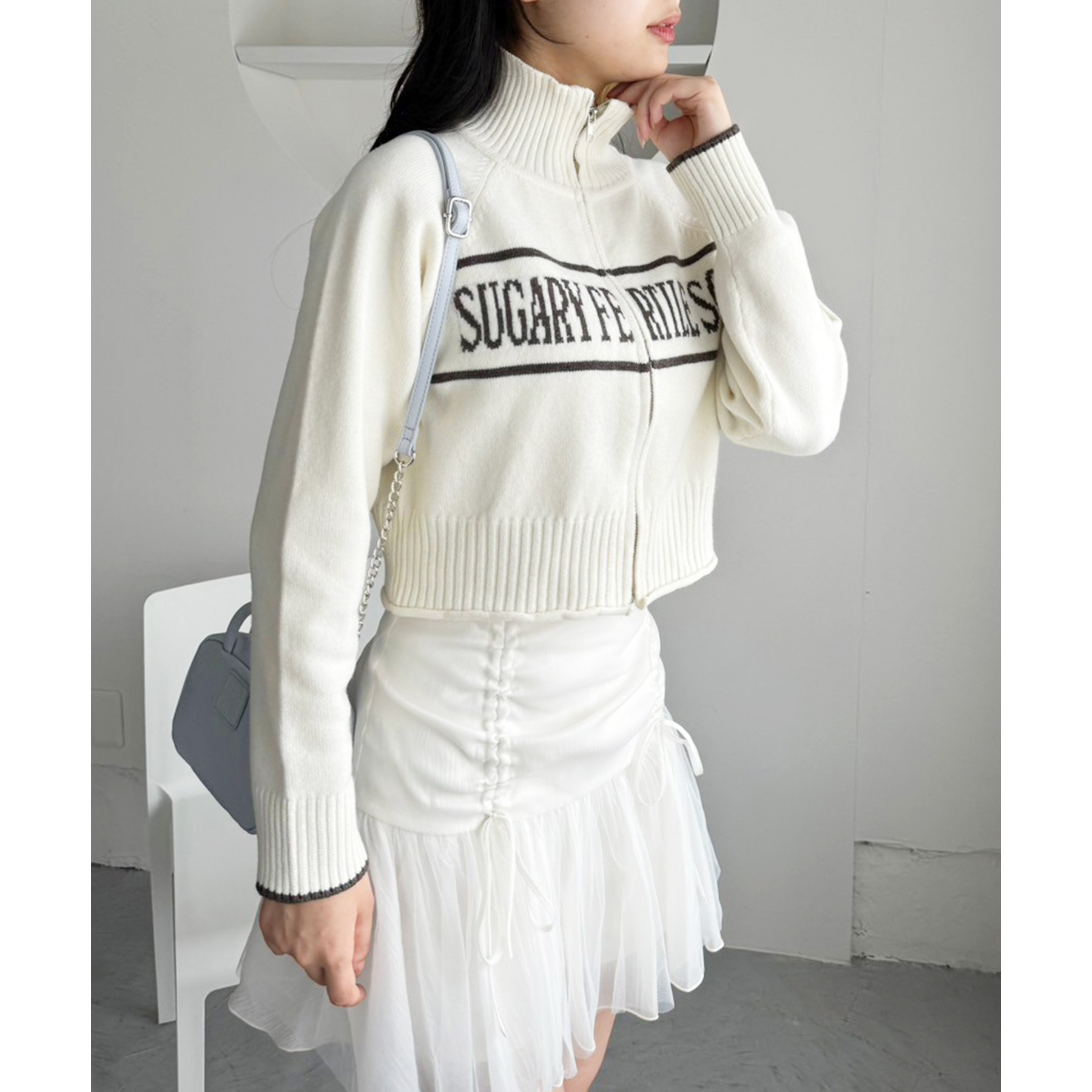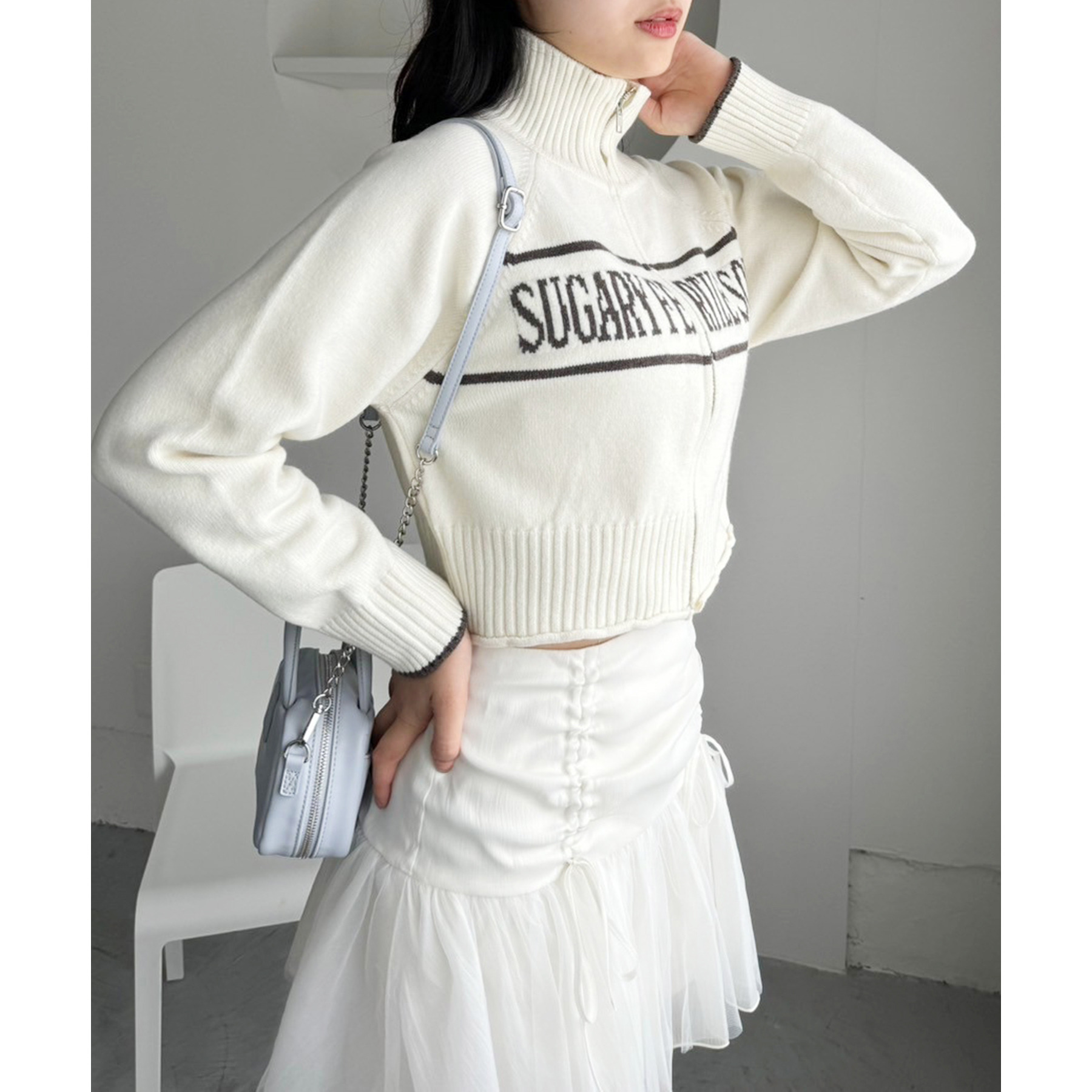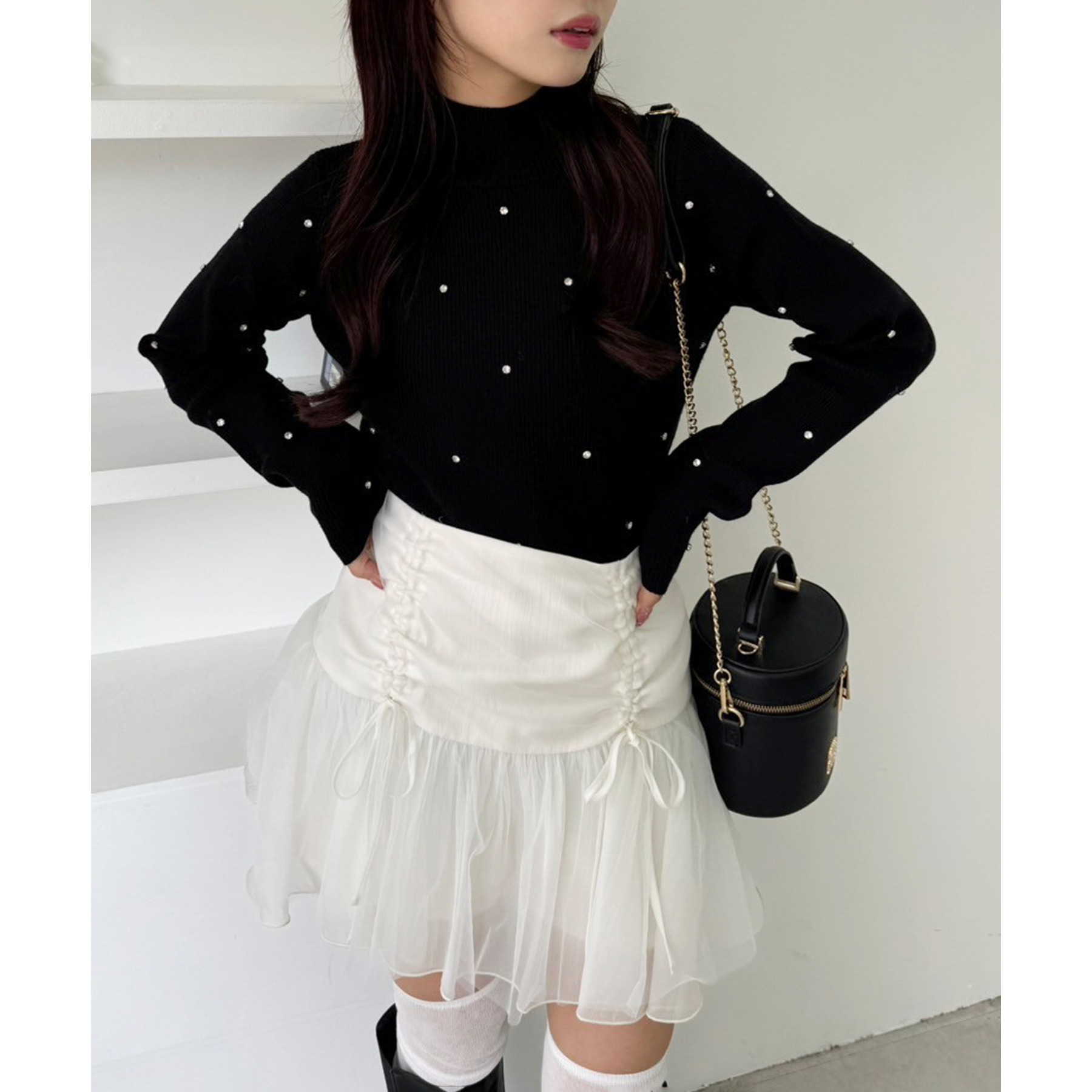 柔らかいチュール素材で動くたびに揺れて女性らしさもプラス。
