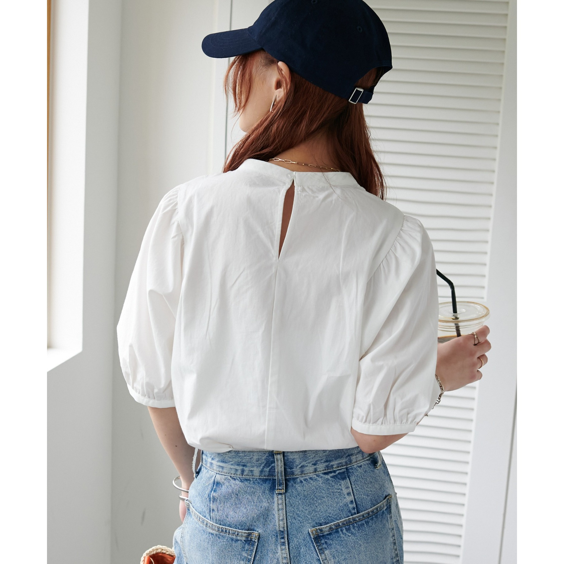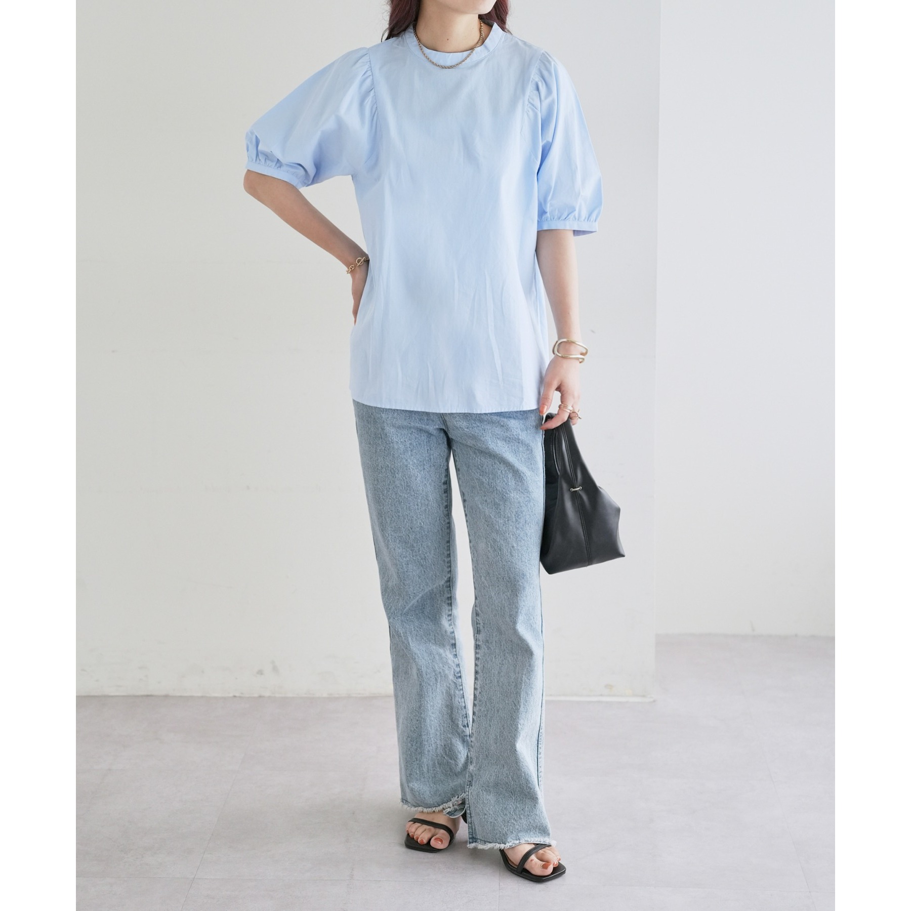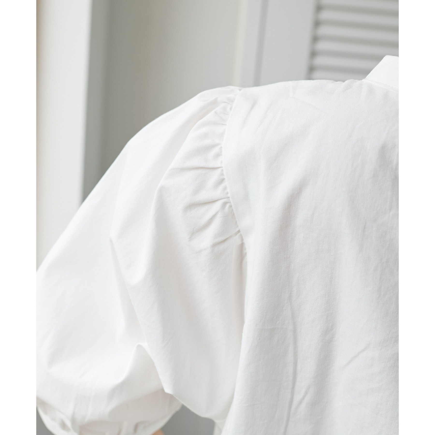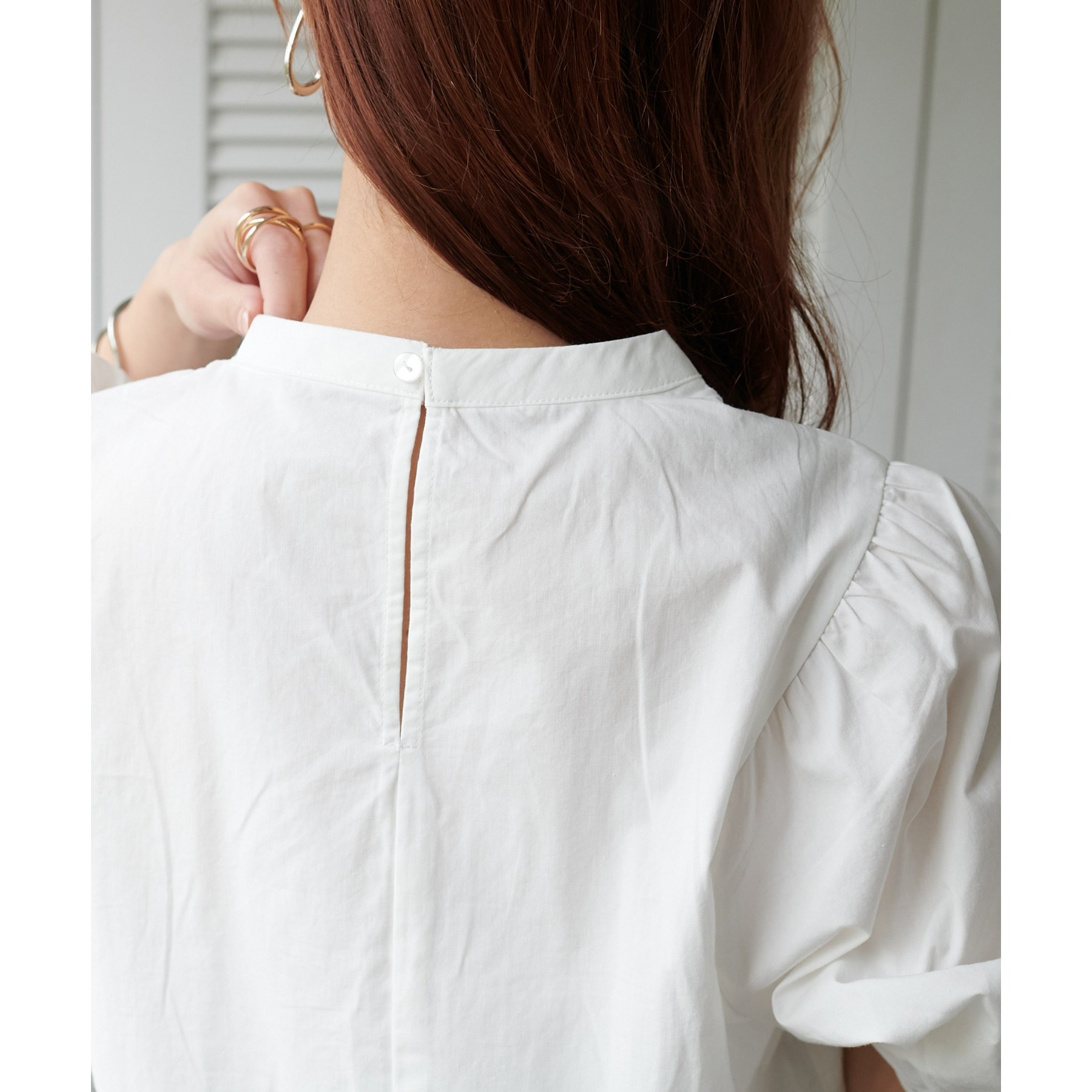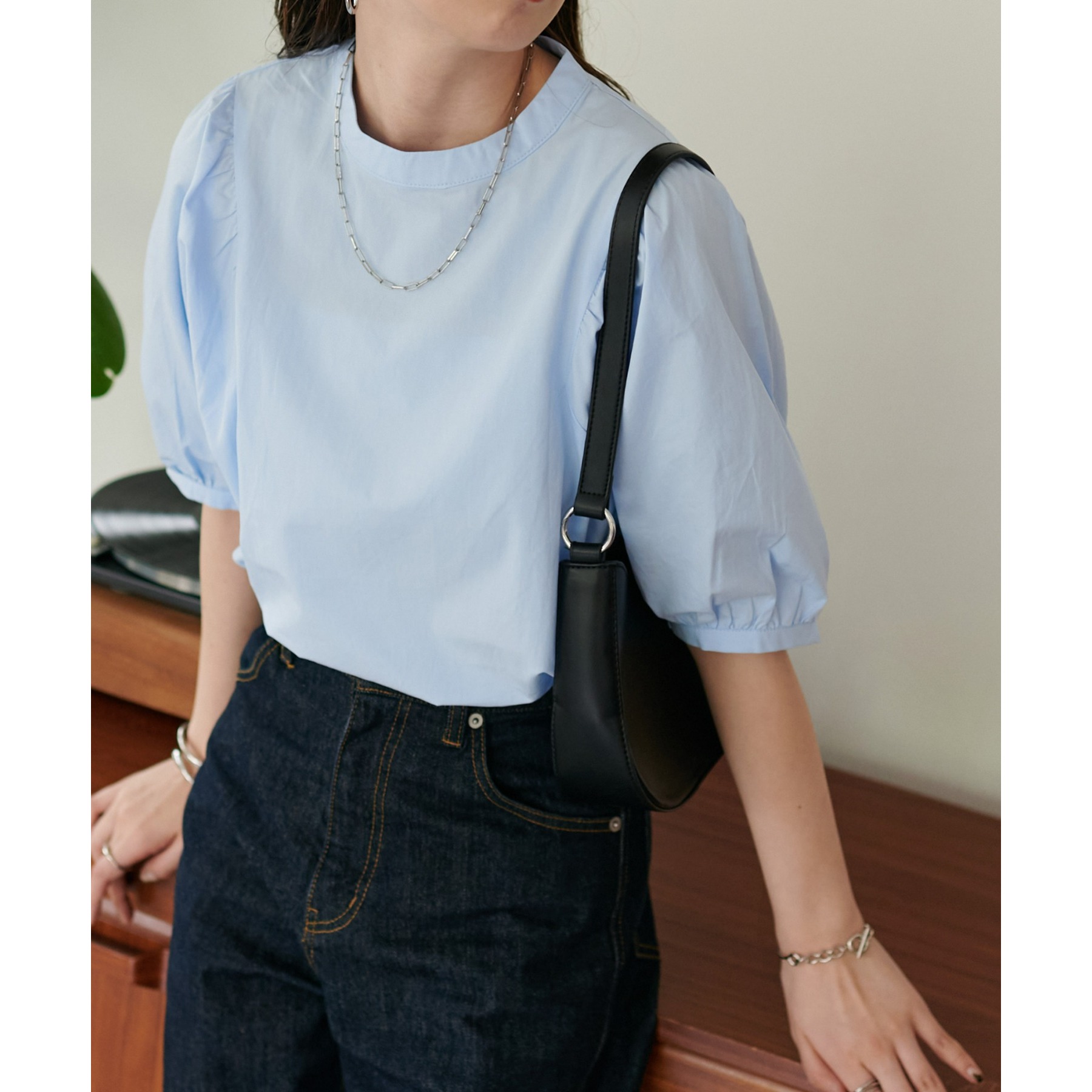 ギャザーの入ったボリュームスリーブが華やかさをプラスするブラウス。女性らしいコンパクトなデザインでボトムス選ばず着用可能◎コーディネートの幅が広いアイテムです。シンプルデザインのブラウスはSSシーズンも重宝すること間違いなしです。コーディネートに取り入れやすいベーシックなカラーから、アクセントになるブルーのカラーを加えた3色展開でご用意しております♪