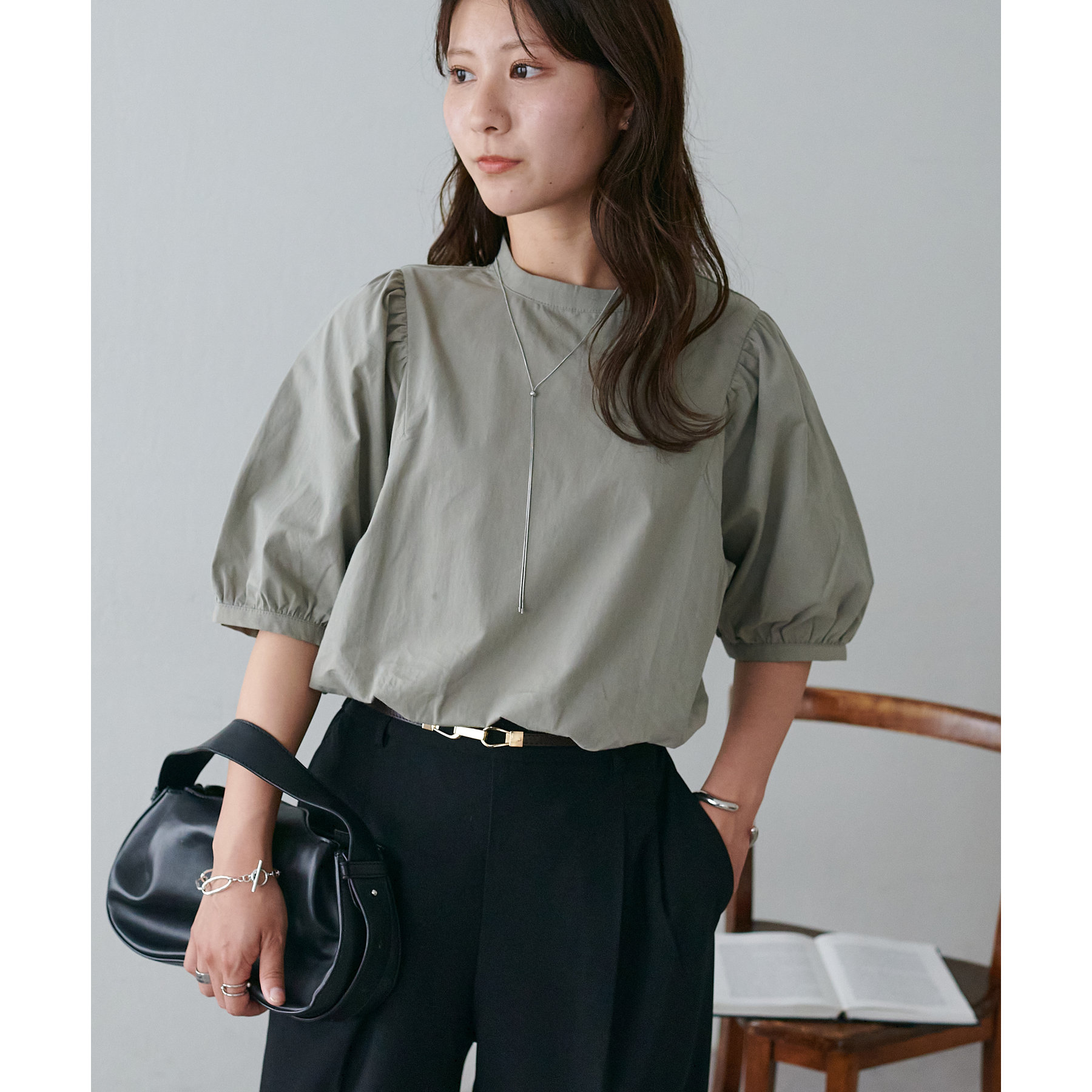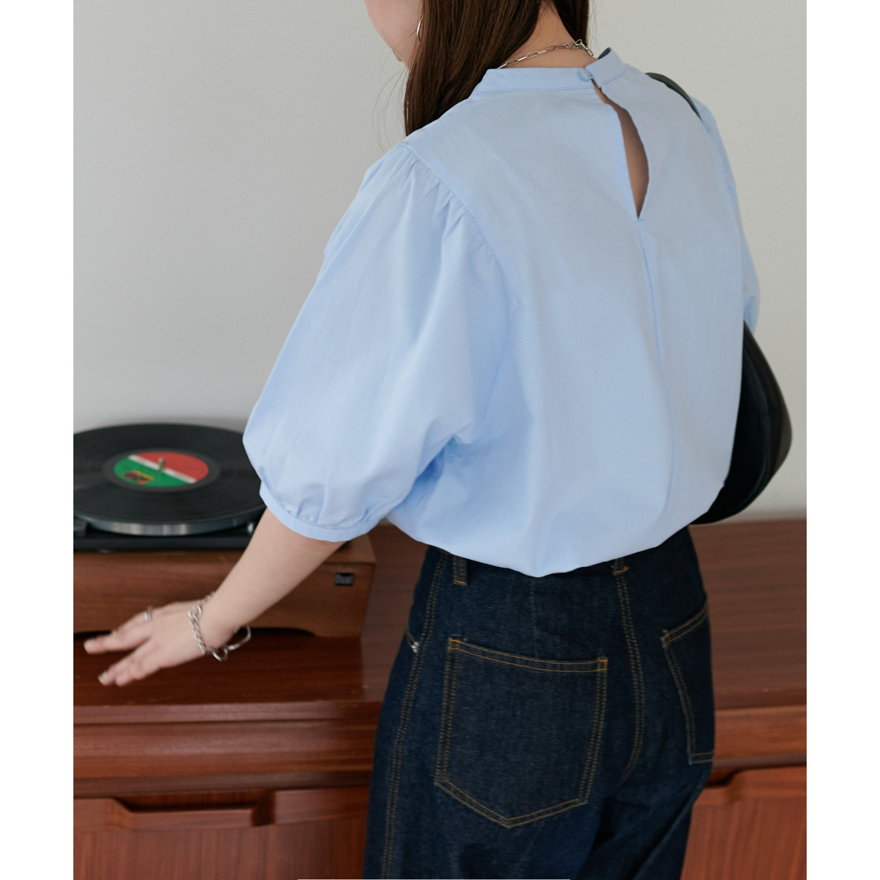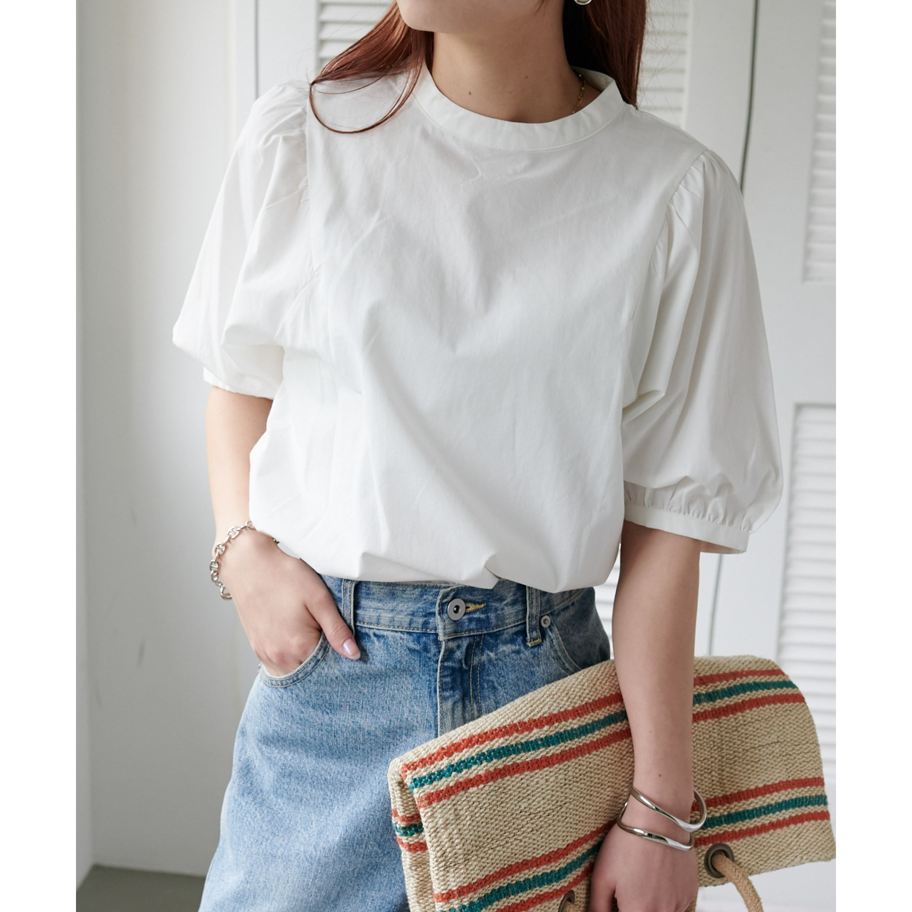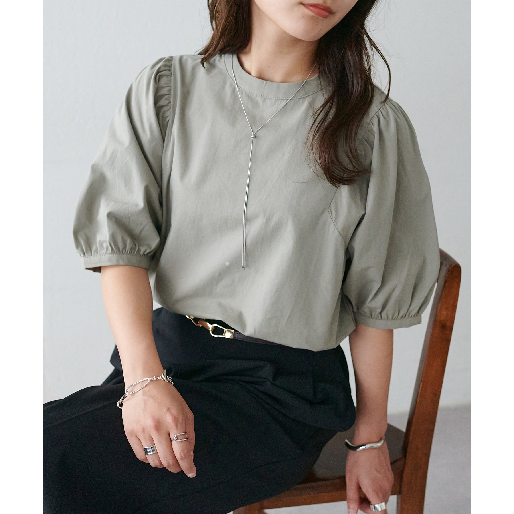 ギャザーの入ったボリュームスリーブが華やかさをプラスするブラウス。女性らしいコンパクトなデザインでボトムス選ばず着用可能◎コーディネートの幅が広いアイテムです。シンプルデザインのブラウスはSSシーズンも重宝すること間違いなしです。コーディネートに取り入れやすいベーシックなカラーから、アクセントになるブルーのカラーを加えた3色展開でご用意しております♪