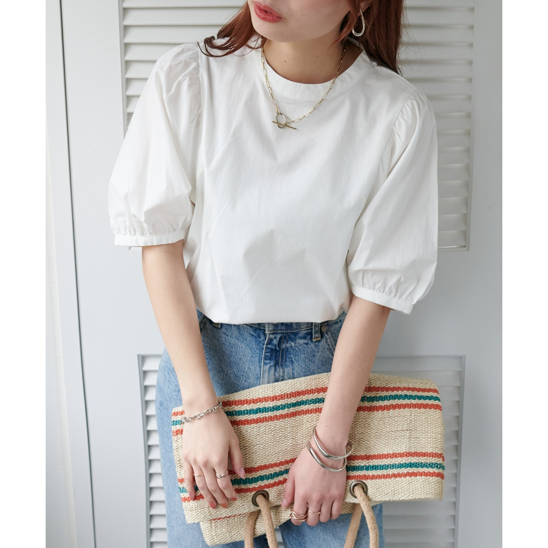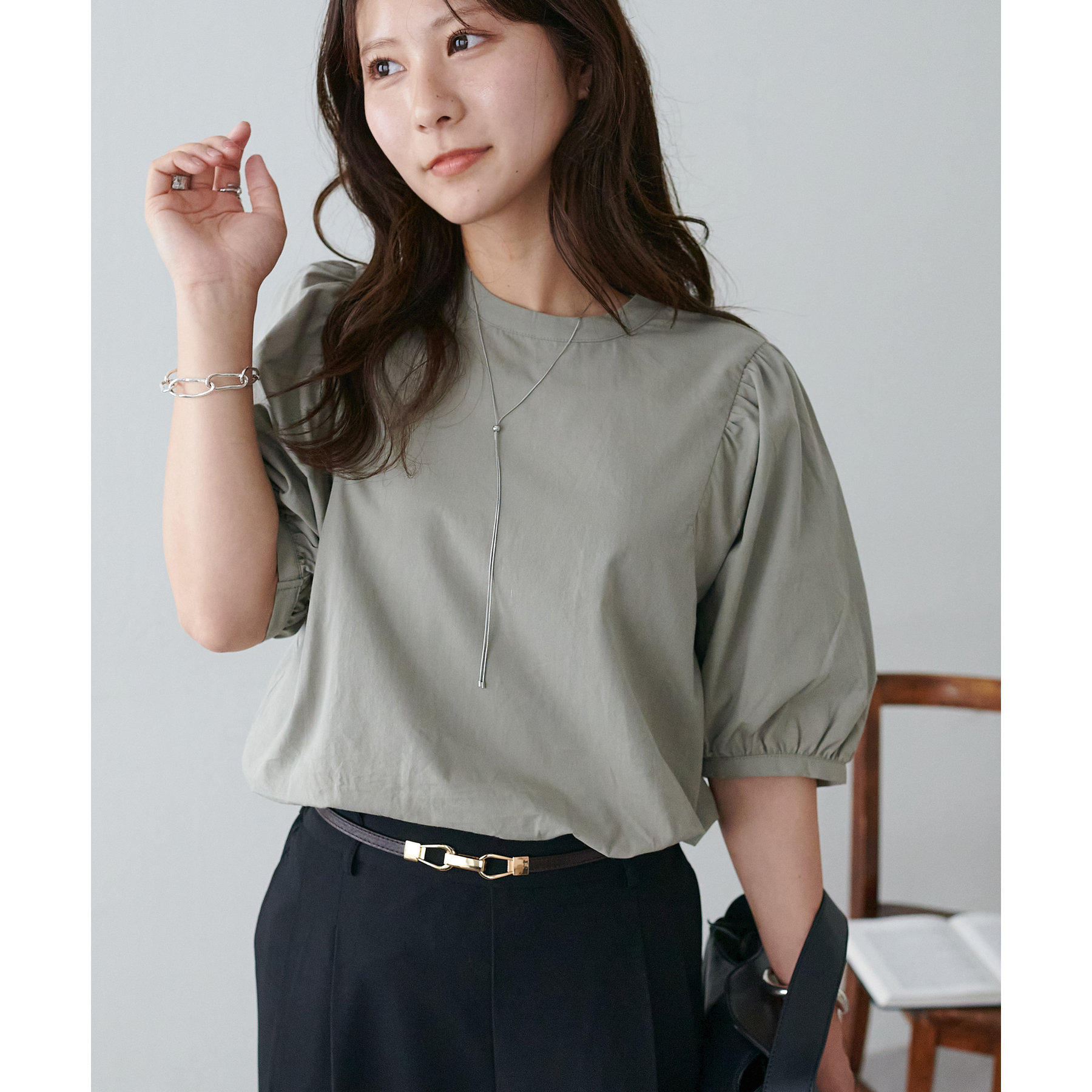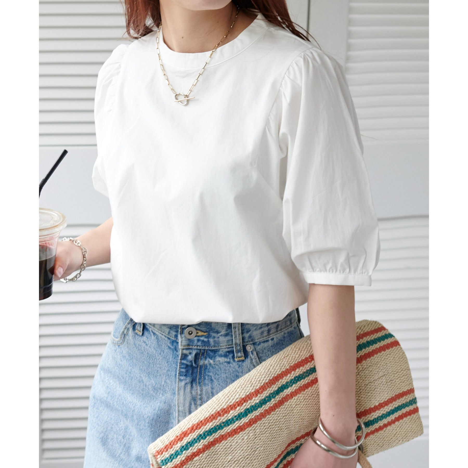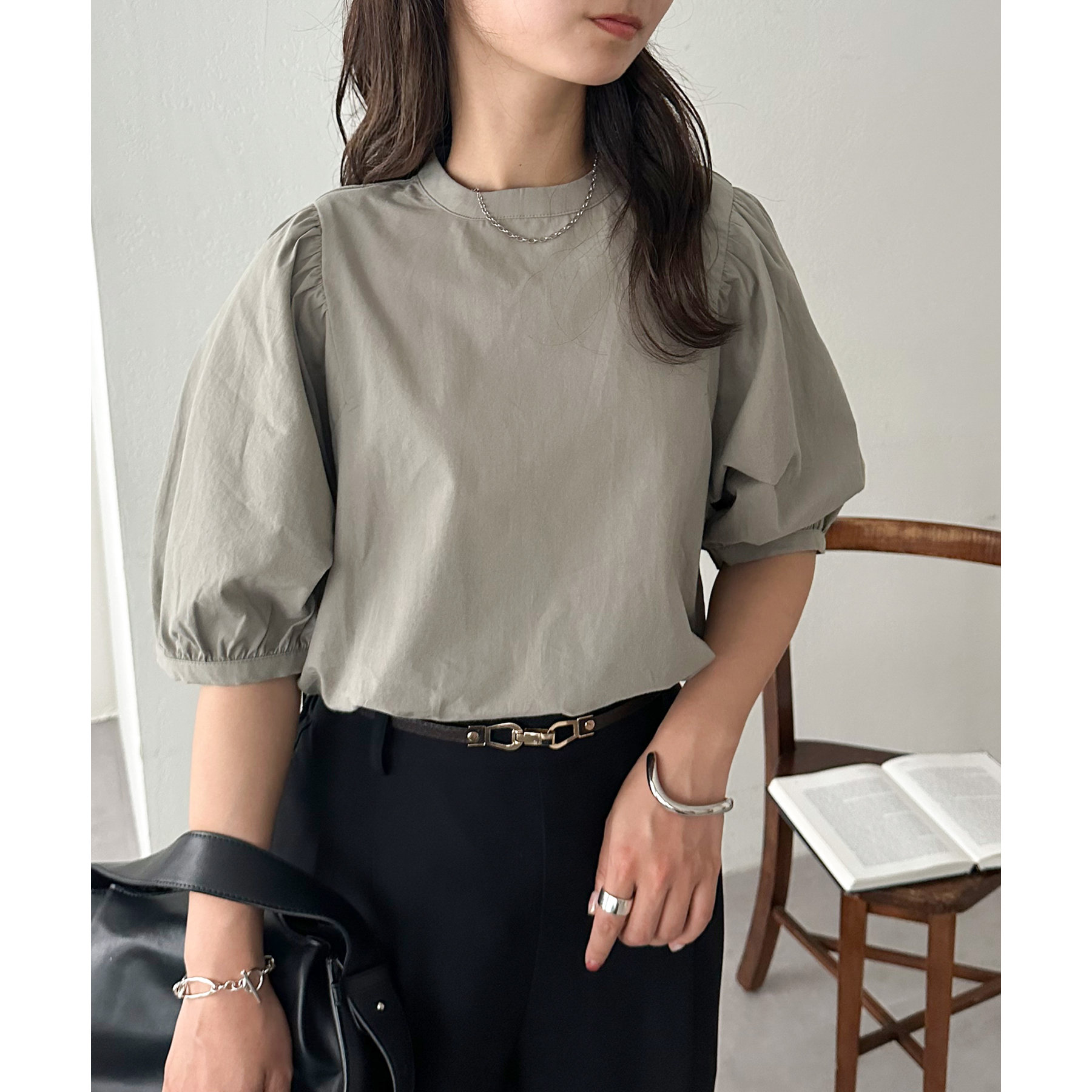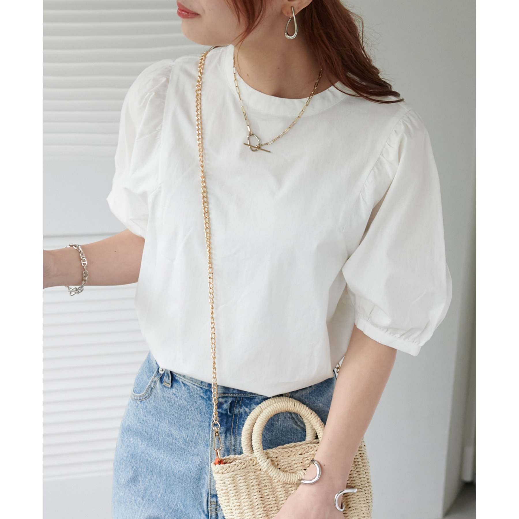 ギャザーの入ったボリュームスリーブが華やかさをプラスするブラウス。女性らしいコンパクトなデザインでボトムス選ばず着用可能◎コーディネートの幅が広いアイテムです。シンプルデザインのブラウスはSSシーズンも重宝すること間違いなしです。コーディネートに取り入れやすいベーシックなカラーから、アクセントになるブルーのカラーを加えた3色展開でご用意しております♪