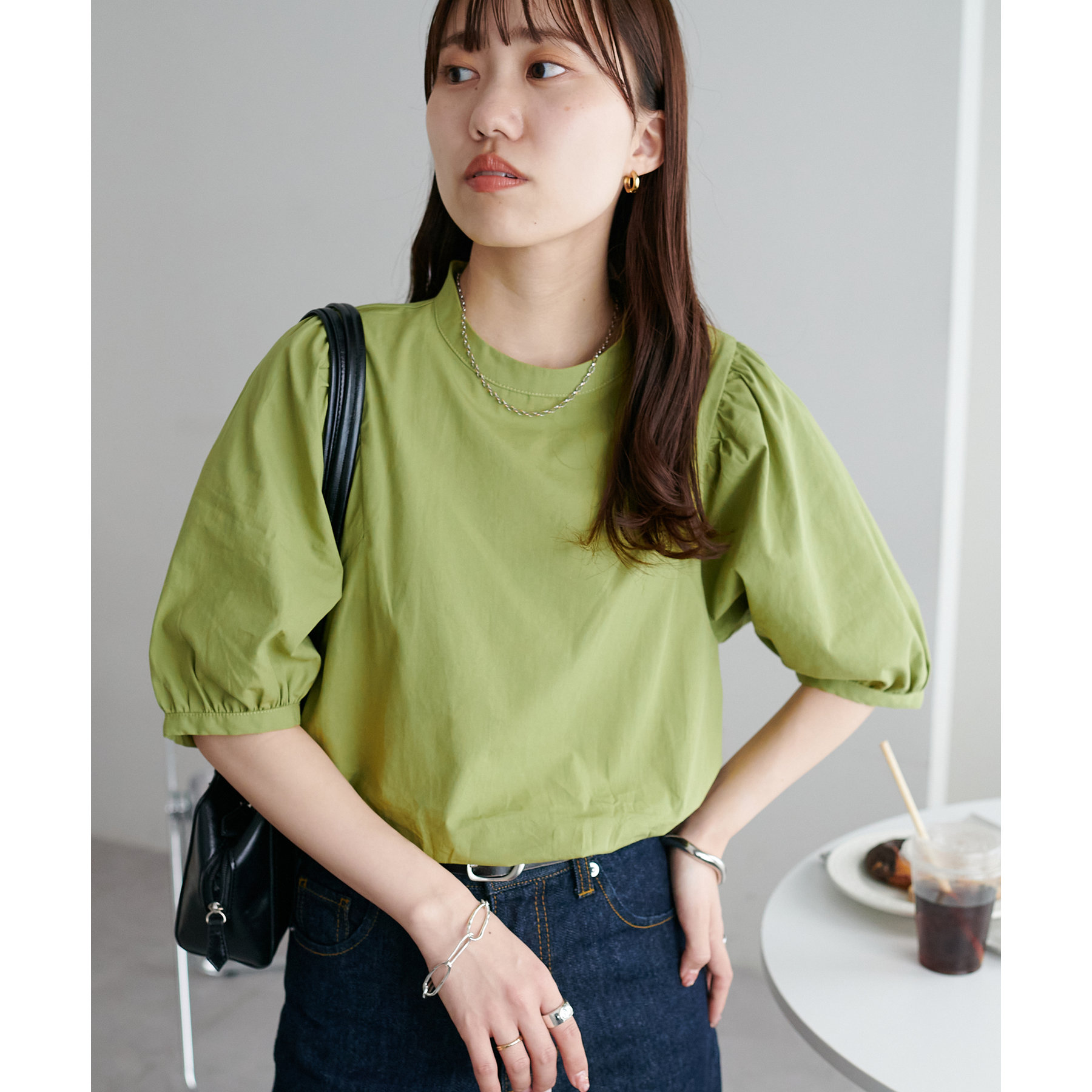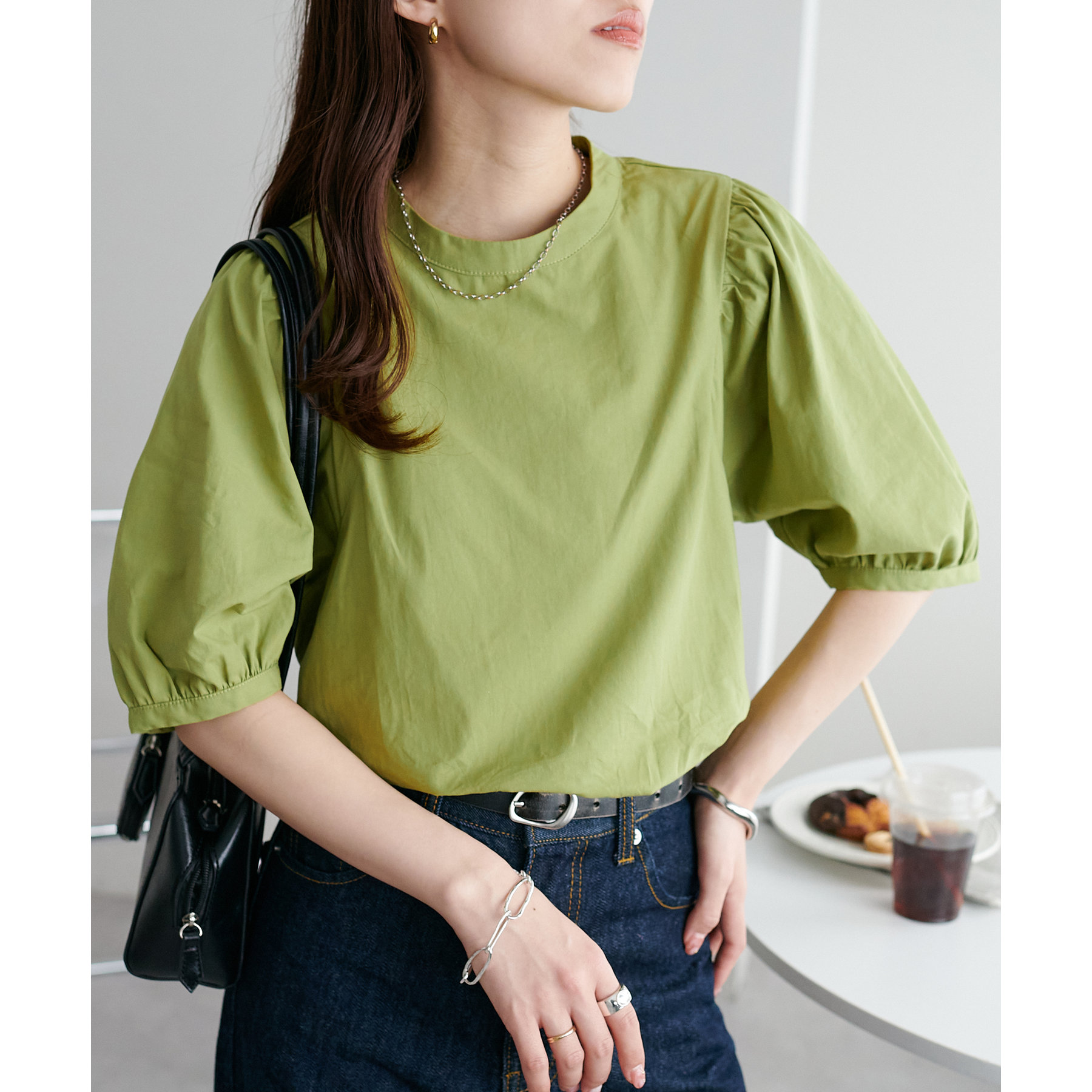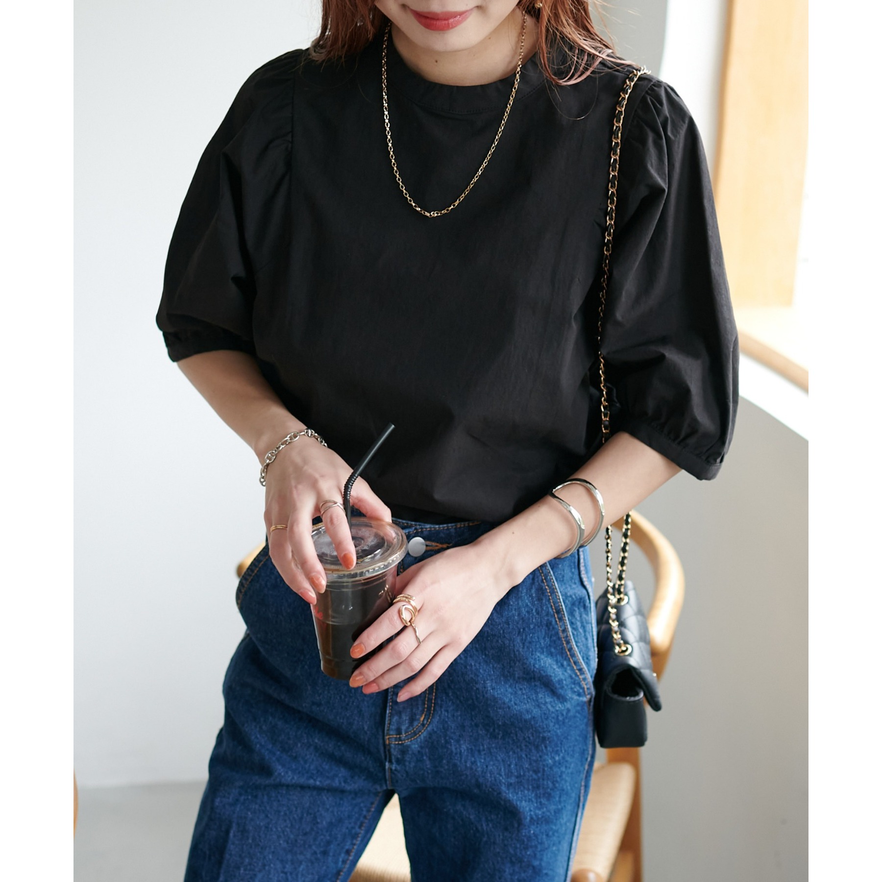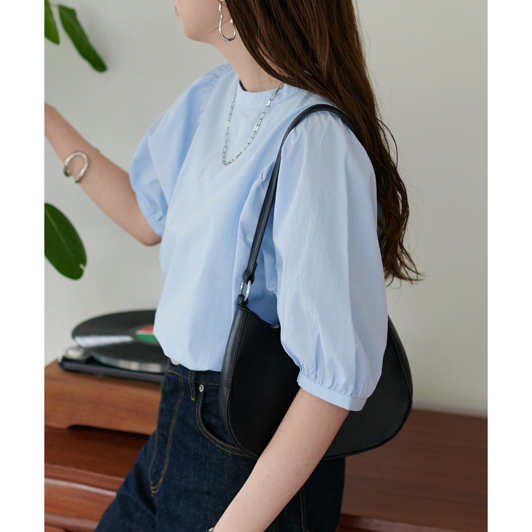 ギャザーの入ったボリュームスリーブが華やかさをプラスするブラウス。女性らしいコンパクトなデザインでボトムス選ばず着用可能◎コーディネートの幅が広いアイテムです。シンプルデザインのブラウスはSSシーズンも重宝すること間違いなしです。コーディネートに取り入れやすいベーシックなカラーから、アクセントになるブルーのカラーを加えた3色展開でご用意しております♪