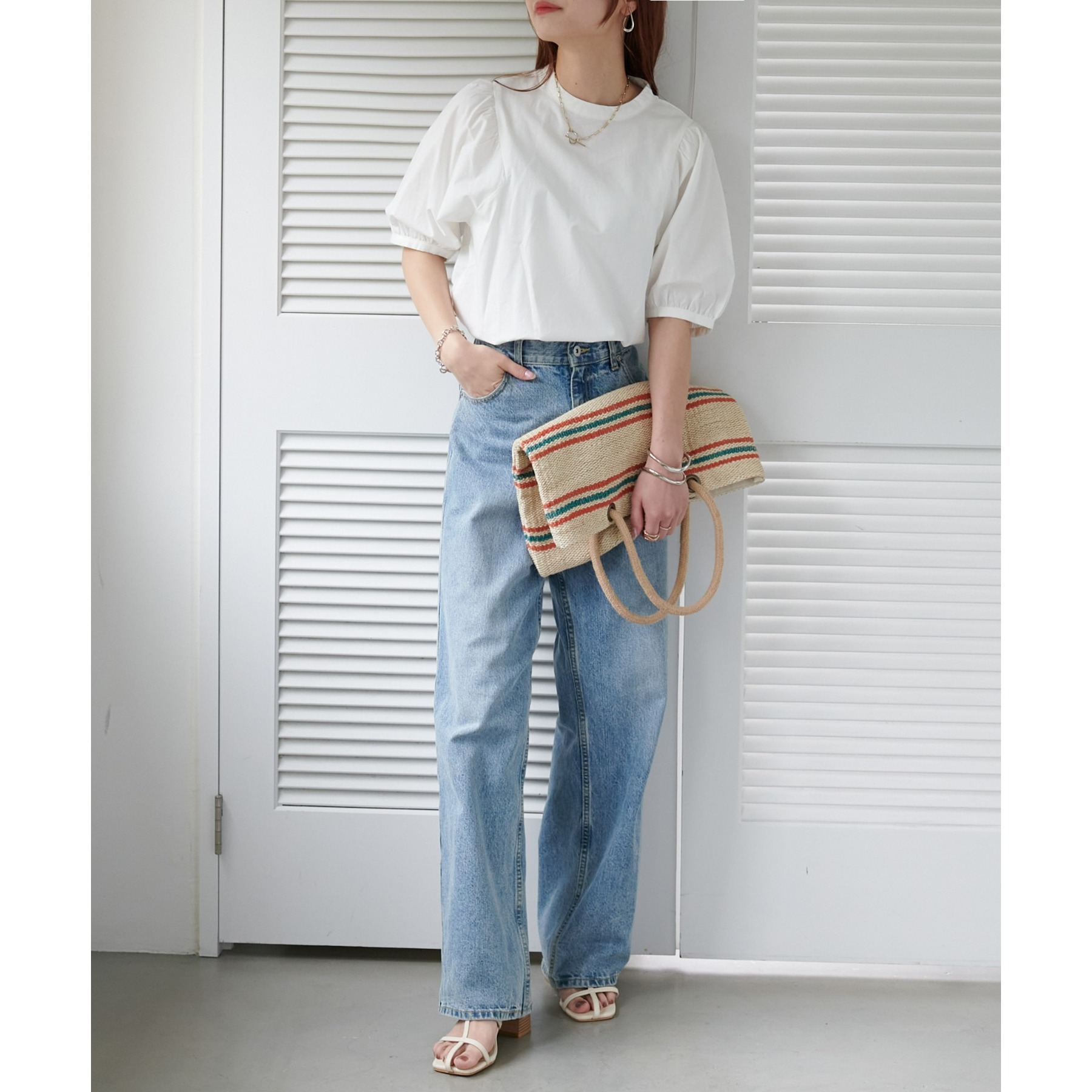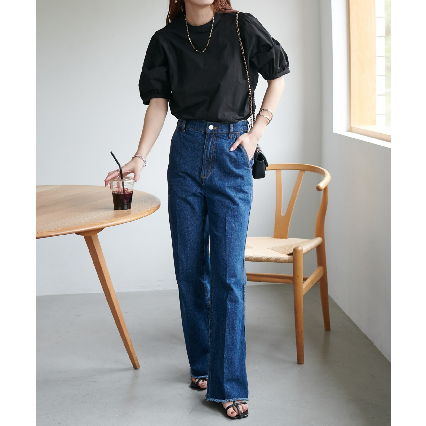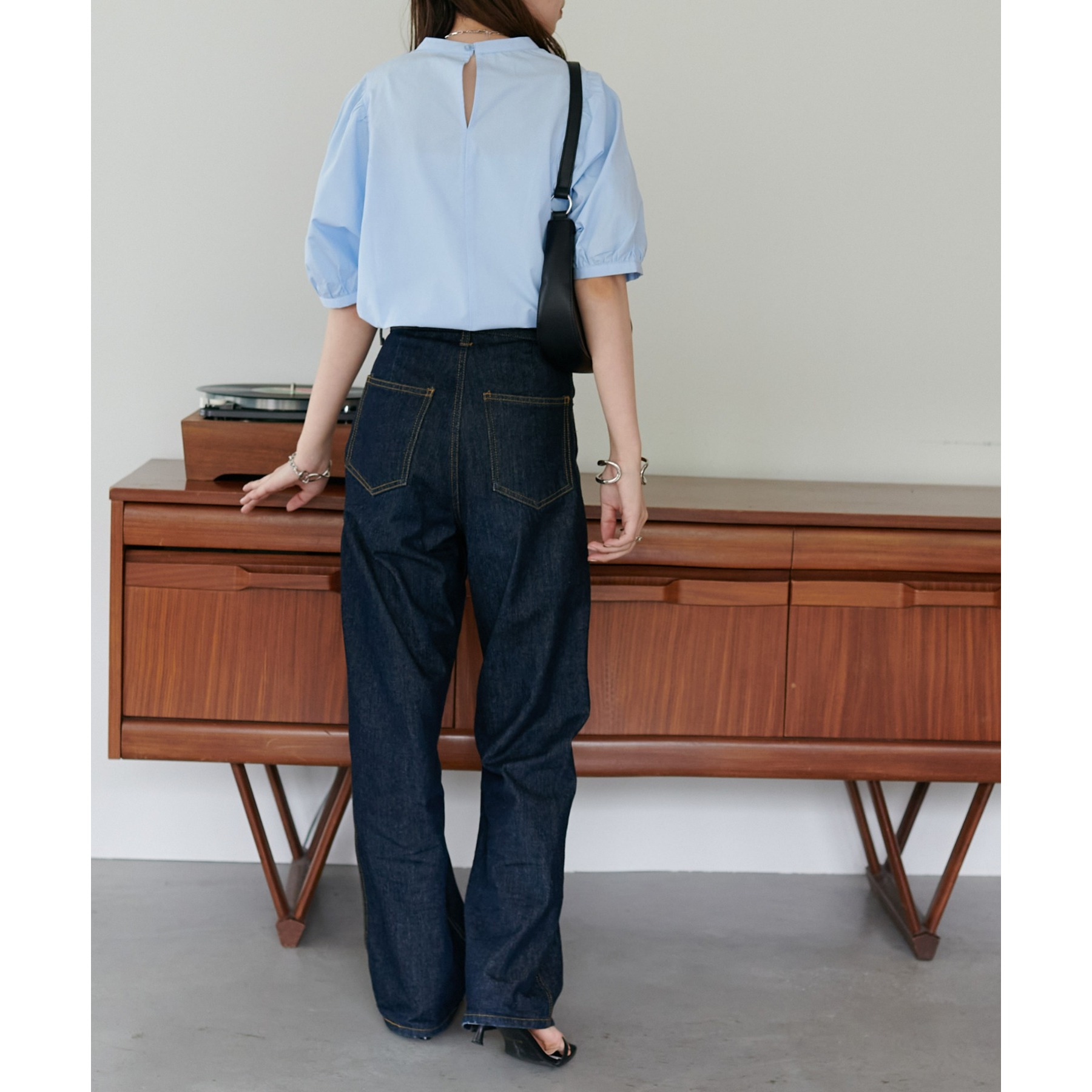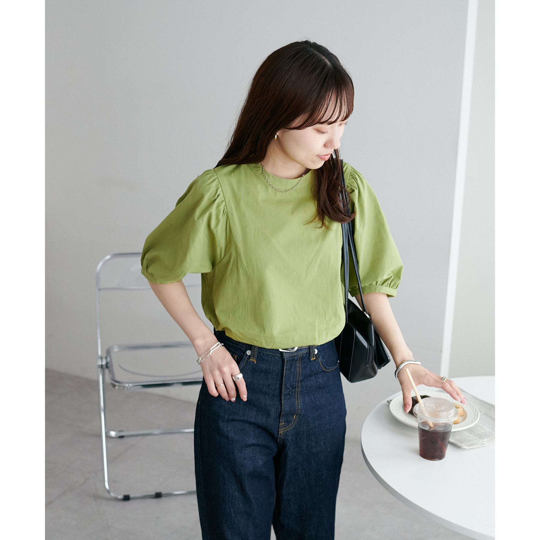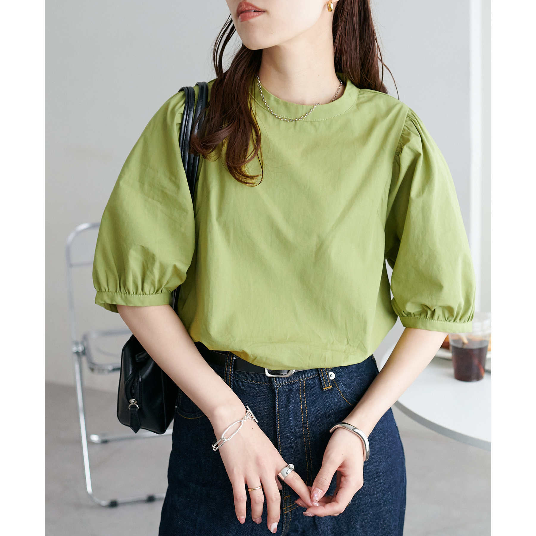 フェミニン感の強すぎないブラウスなので、カジュアルなデニムはもちろん、フレアスカートやキャミワンピースなど幅広いアイテムと相性抜群。タウンでもオフィスでも重宝するアイテムです♪