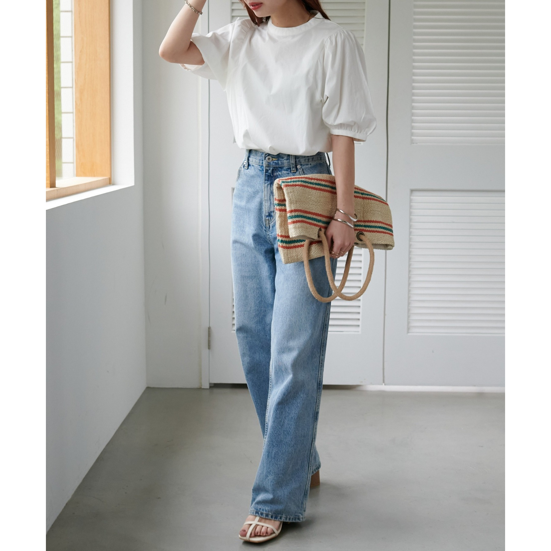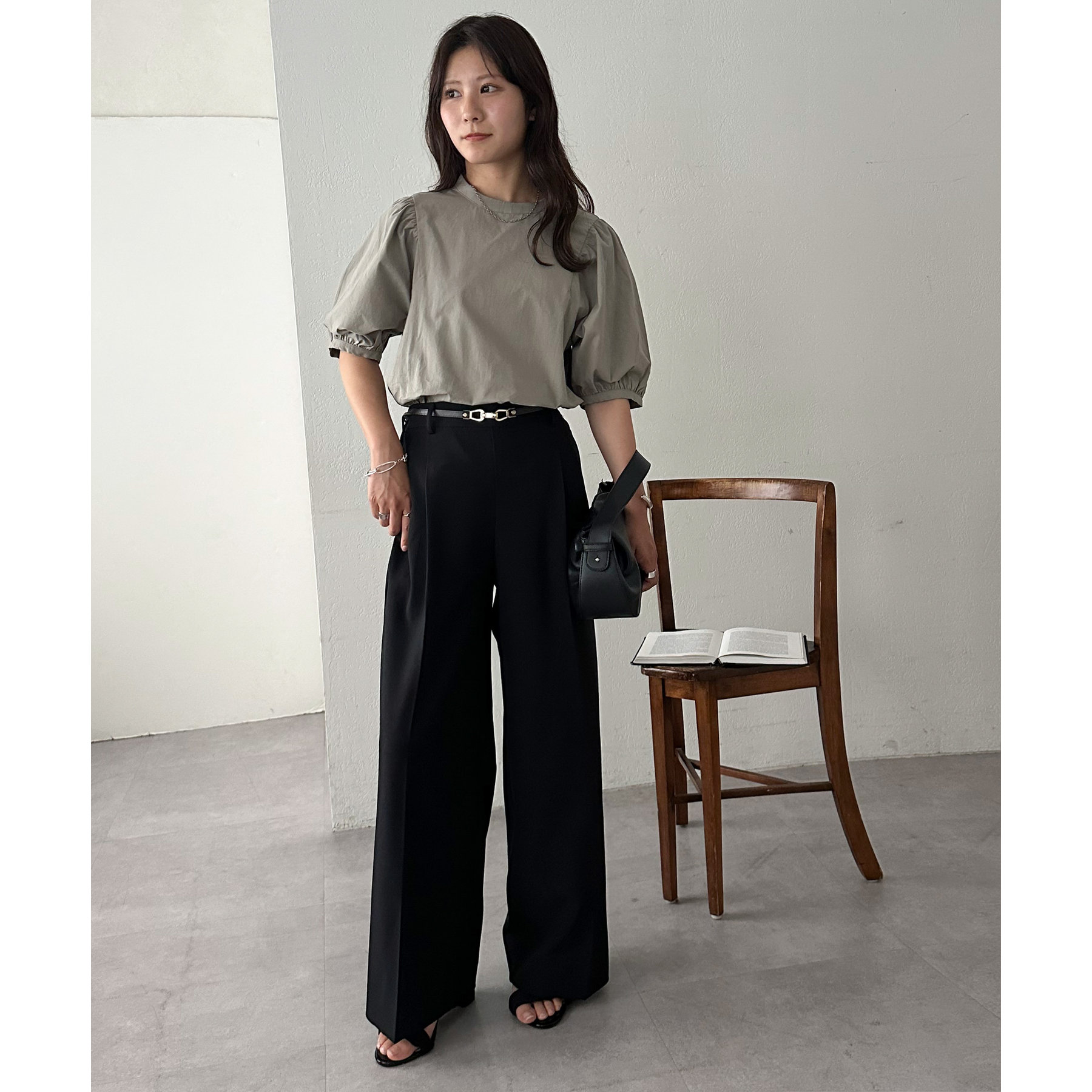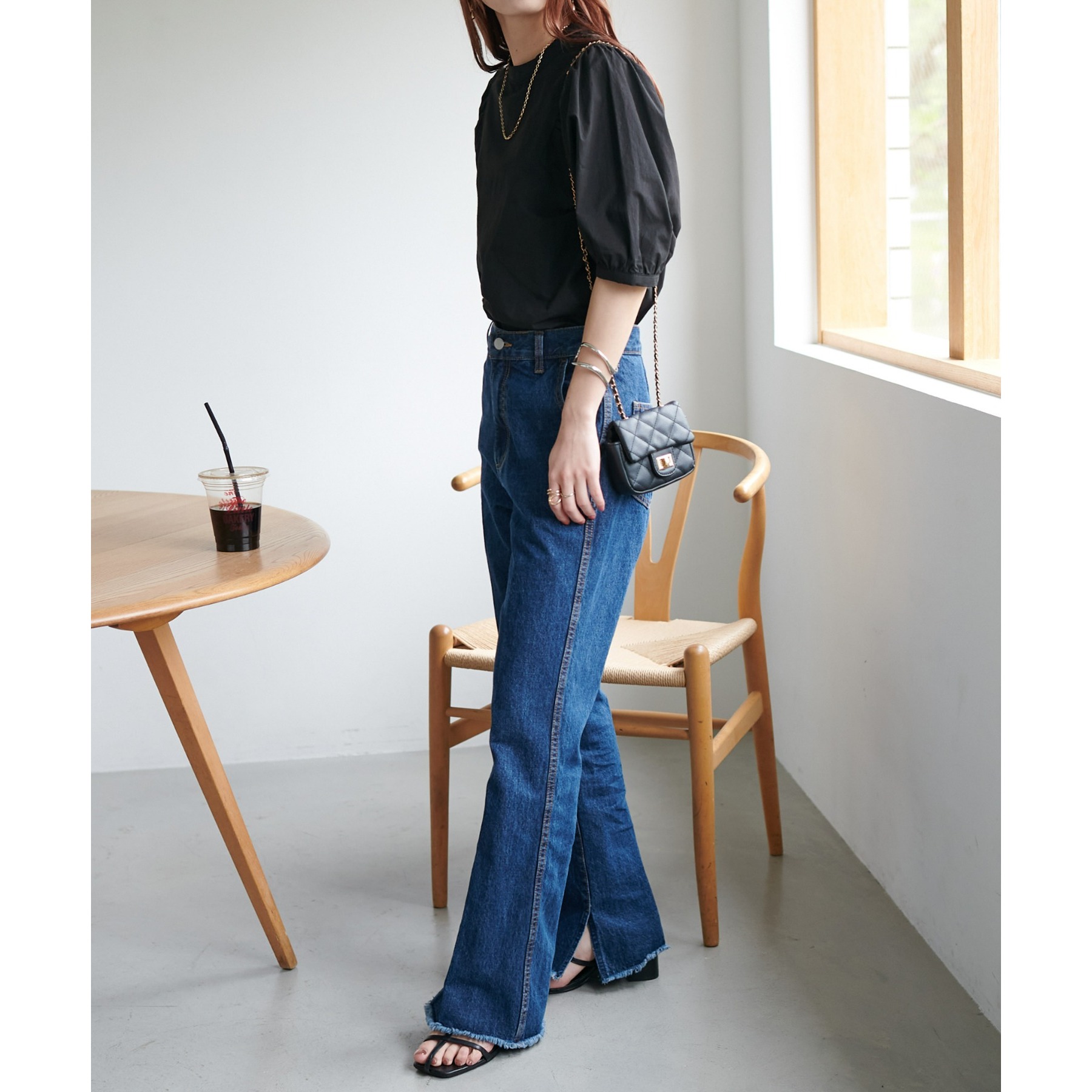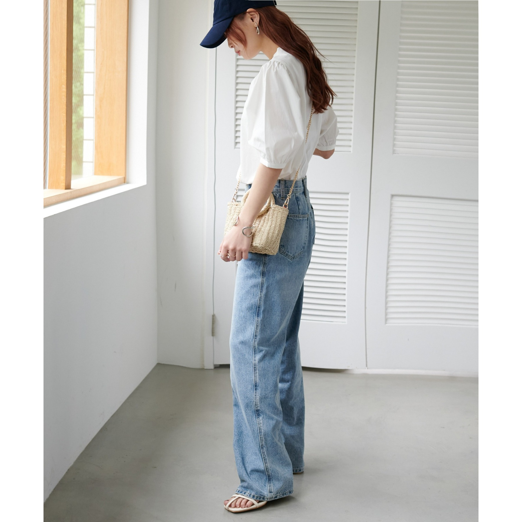 フェミニン感の強すぎないブラウスなので、カジュアルなデニムはもちろん、フレアスカートやキャミワンピースなど幅広いアイテムと相性抜群。タウンでもオフィスでも重宝するアイテムです♪