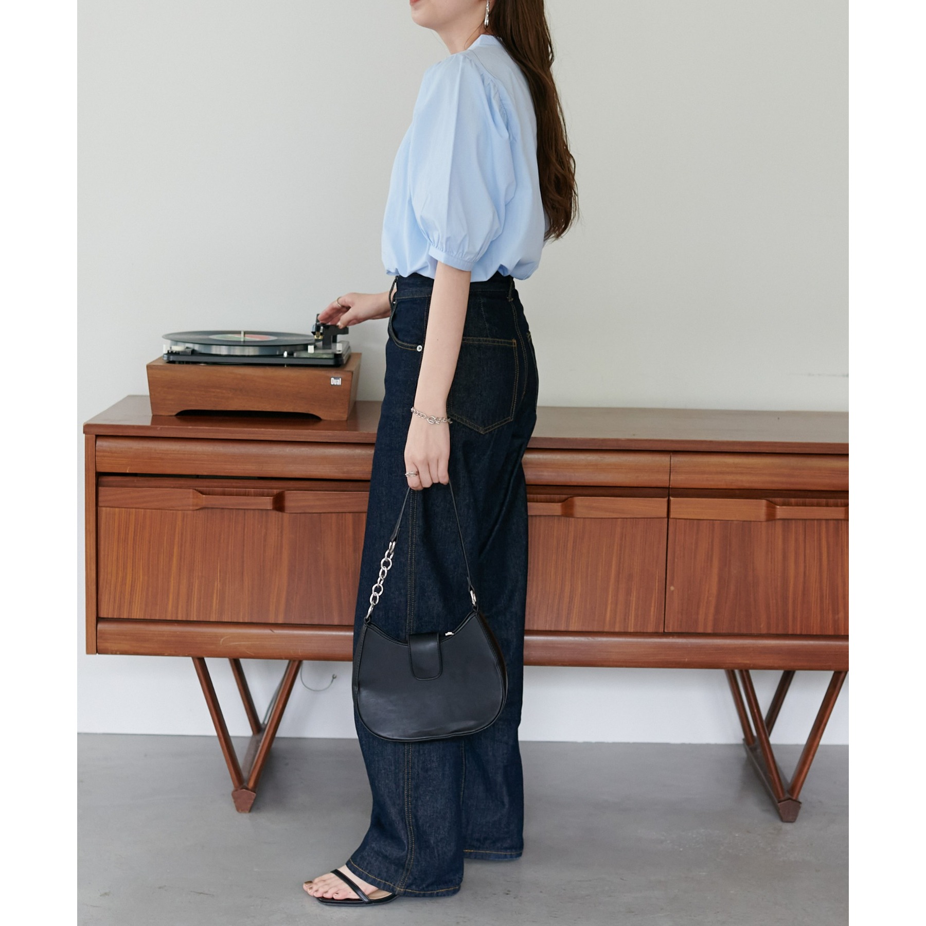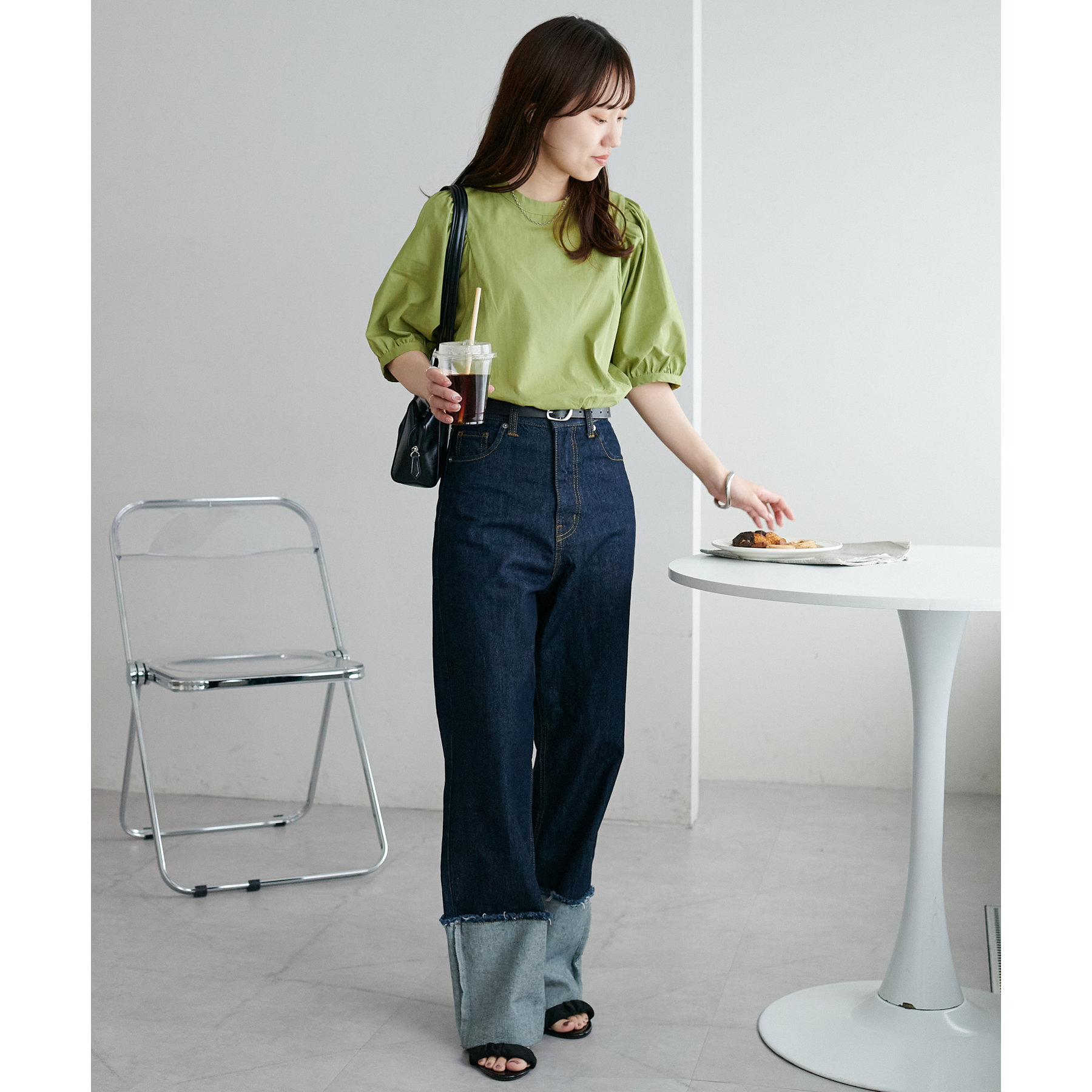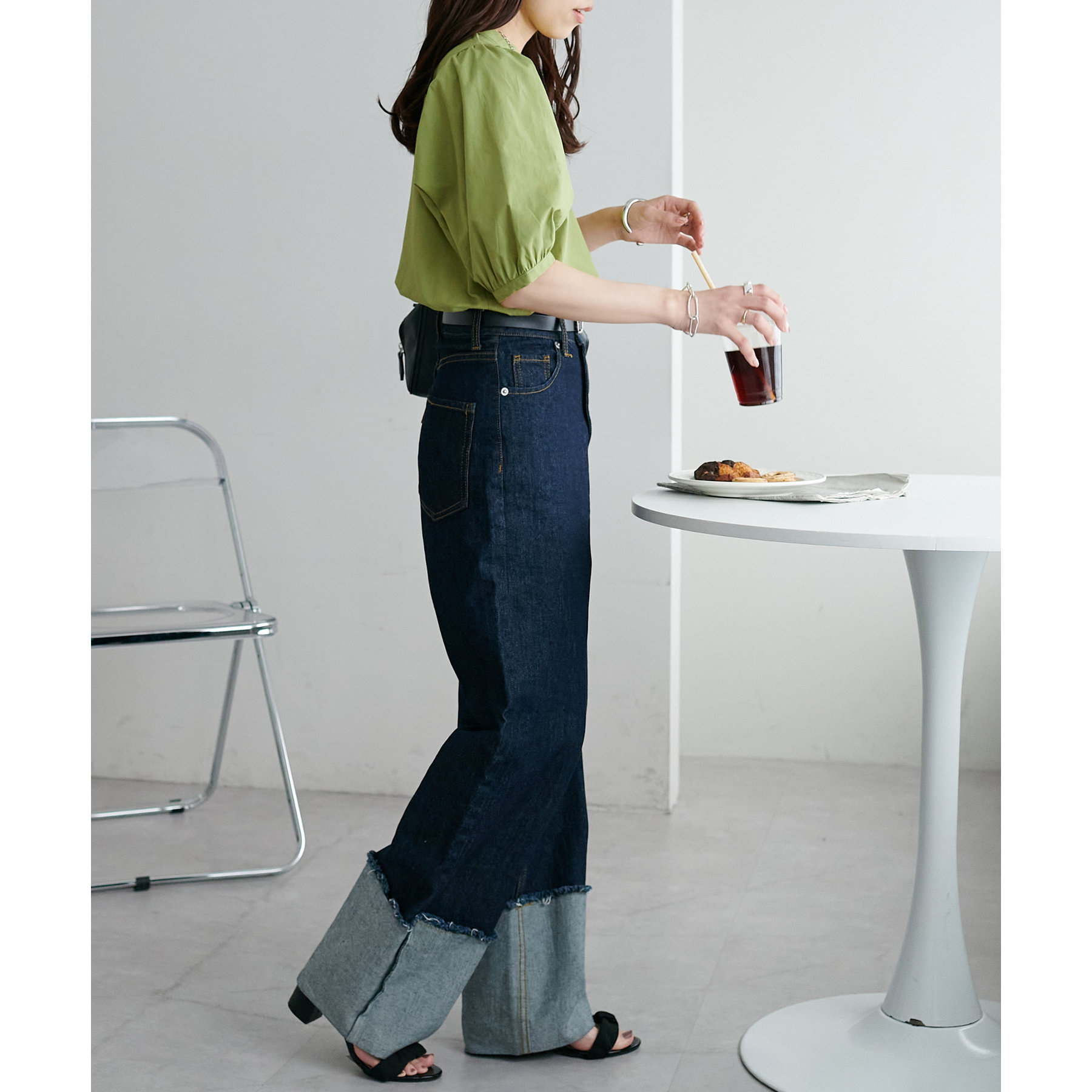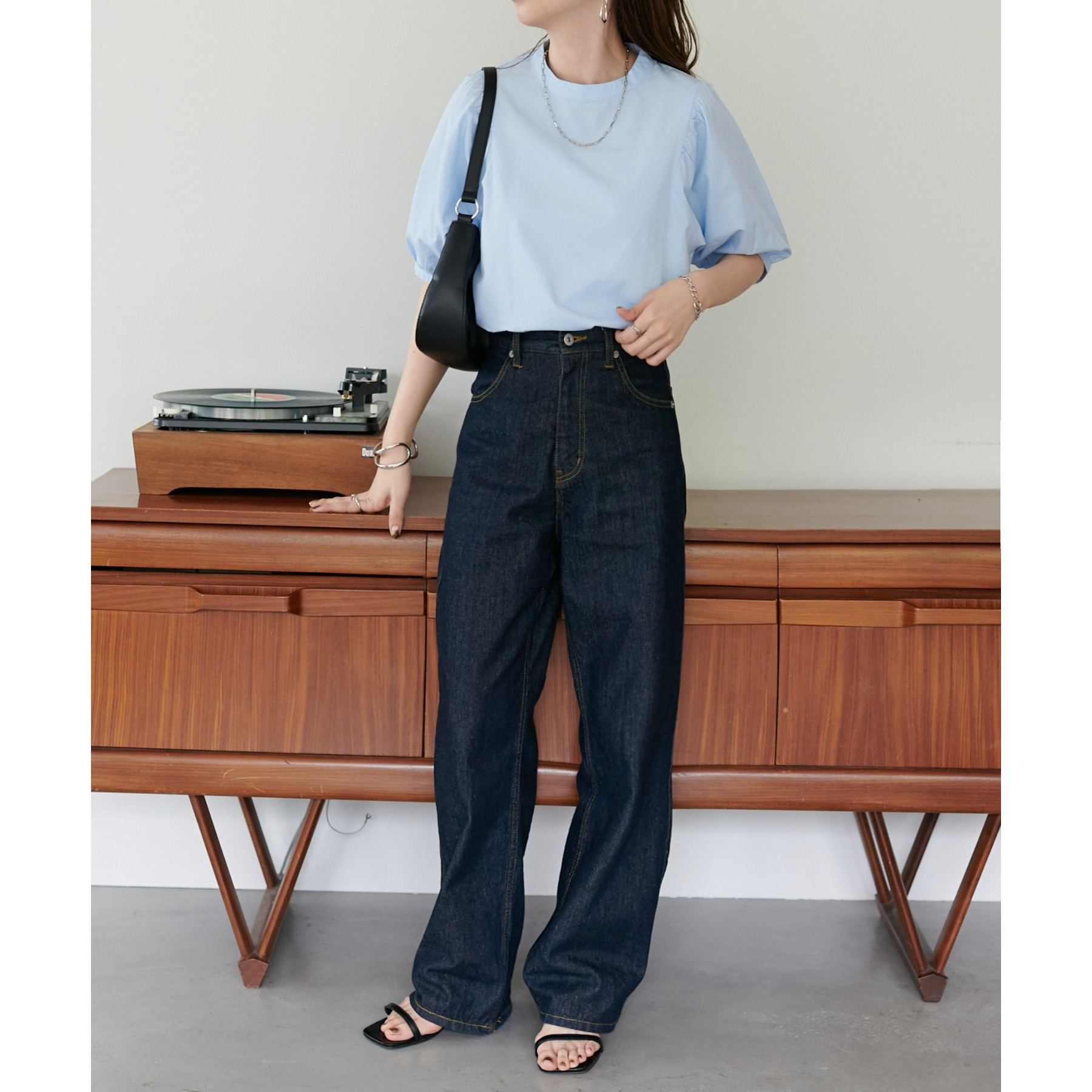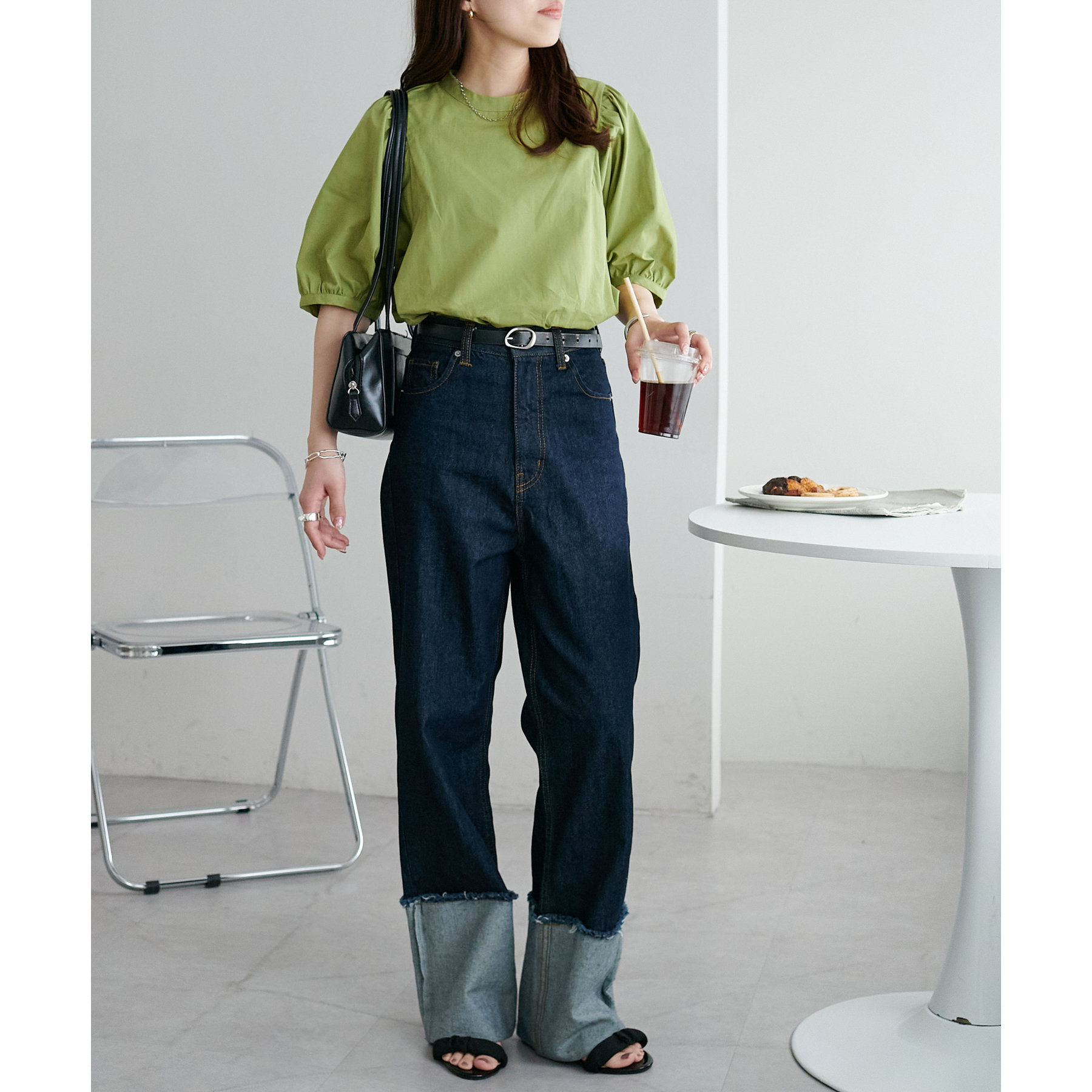 フェミニン感の強すぎないブラウスなので、カジュアルなデニムはもちろん、フレアスカートやキャミワンピースなど幅広いアイテムと相性抜群。タウンでもオフィスでも重宝するアイテムです♪
