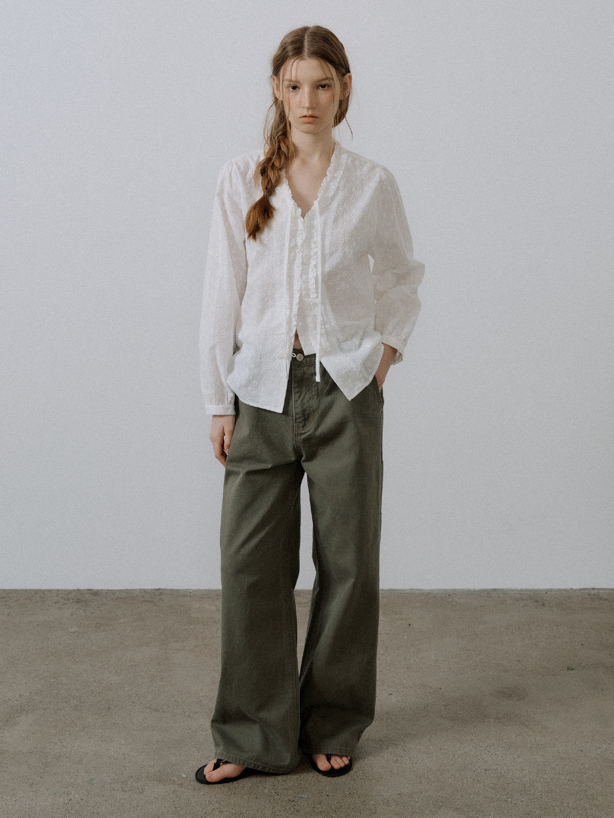 [Pre-order] V-neck punching lace blouse [FRSP05BL03]_White-DYVFMZ6605